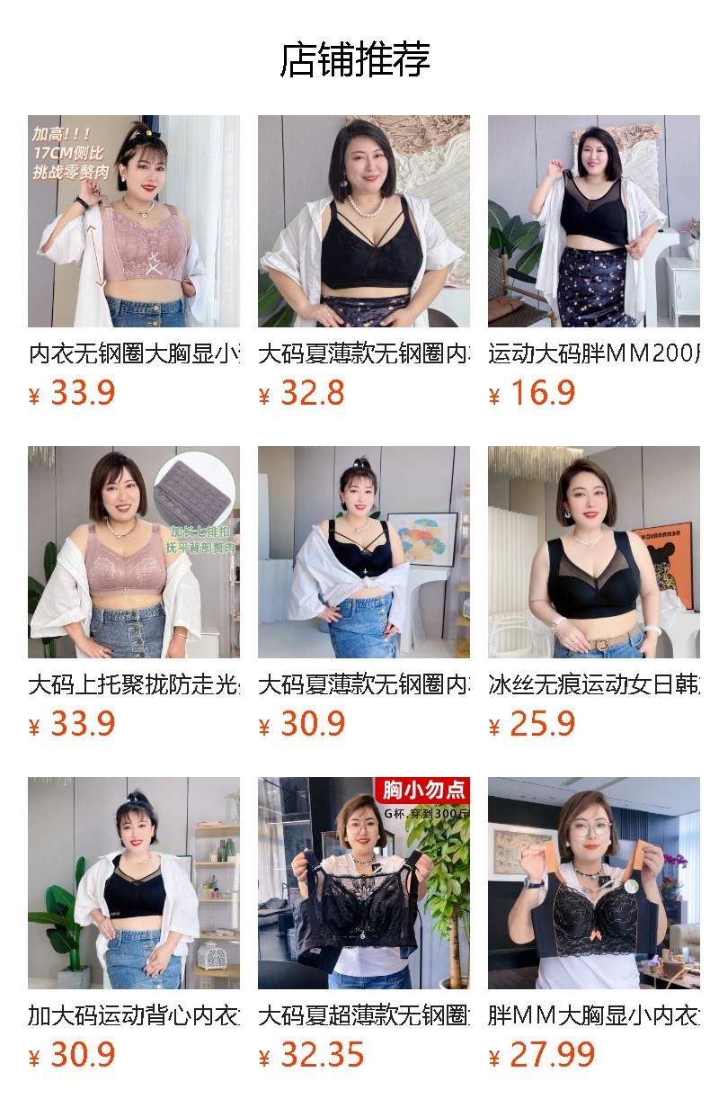통통녀 플러스 사이즈 속옷 여성 200kg 브래지어 여름 얇은 대형 가슴 작은 처짐 안심 편안한 무림 브라스토어 가기