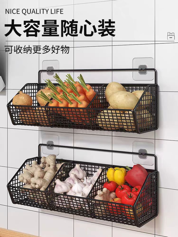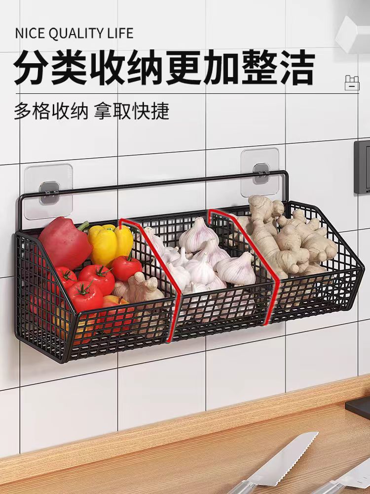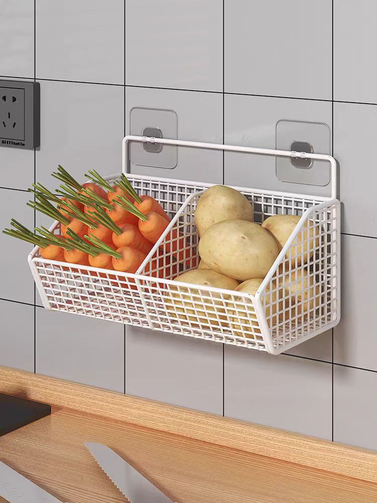 종말, 생강 및 마늘 저장 바구니 주방 벽걸이 보관 랙 조미료 보관 랙 저장 상자 마늘 비 천공 이중 층