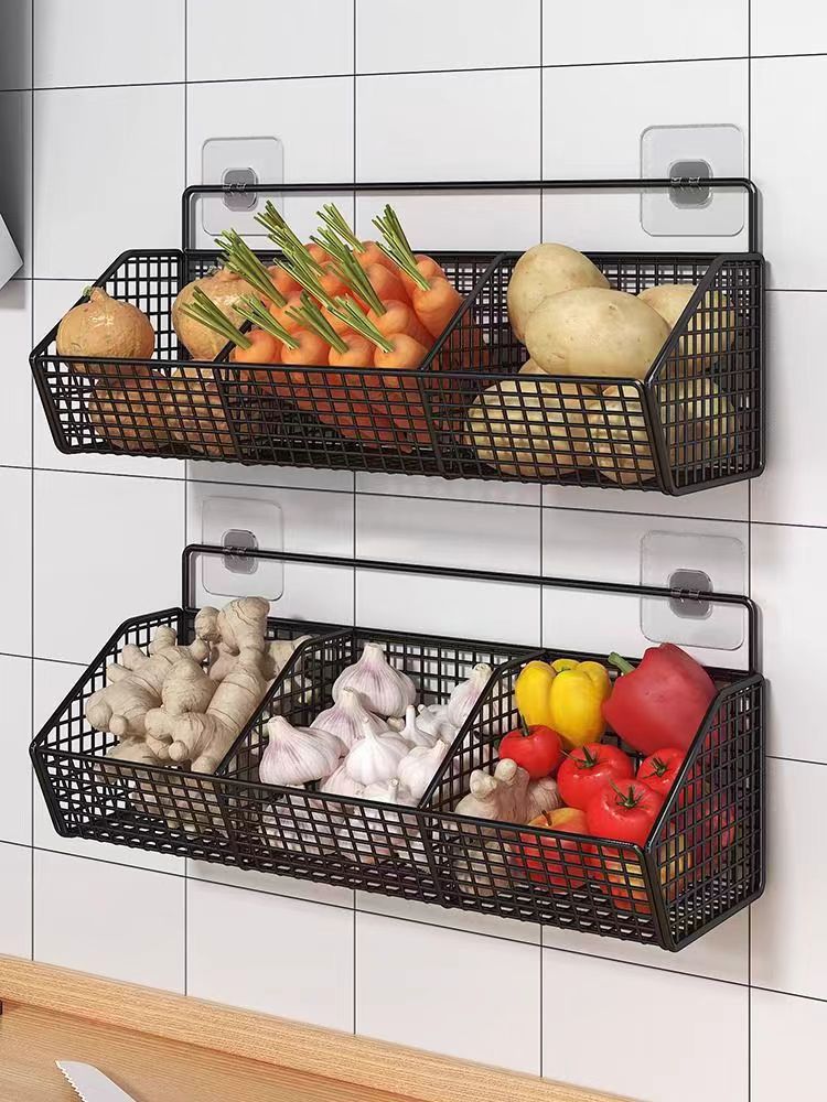 종말, 생강 및 마늘 저장 바구니 주방 벽걸이 보관 랙 조미료 보관 랙 저장 상자 마늘 비 천공 이중 층스토어 가기