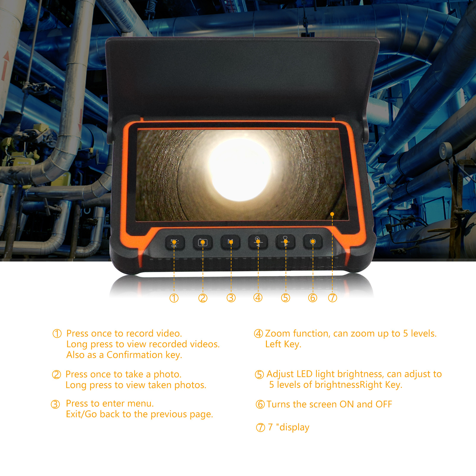 23mm industrial video borescope 7'' HD ultra large IPS screen pipeline inspection camera with DVR video sewer camera Non-excavation Inspection direct factory manufacturer door to door