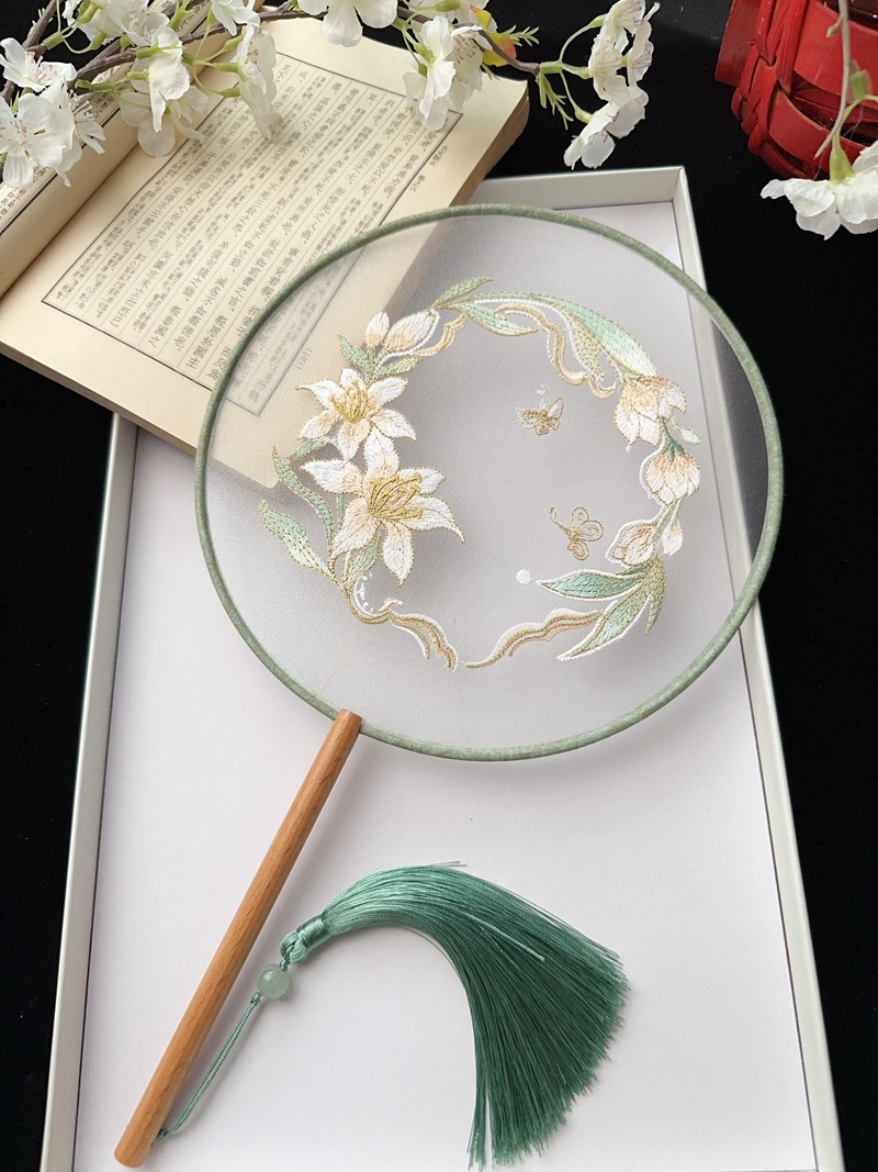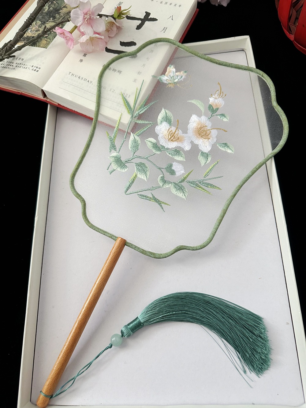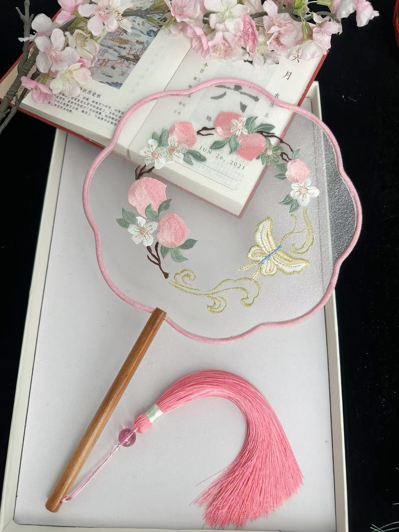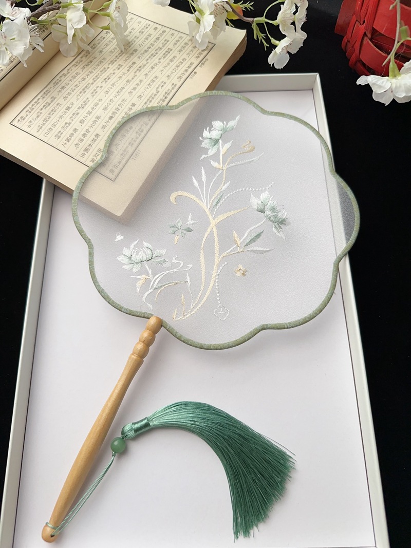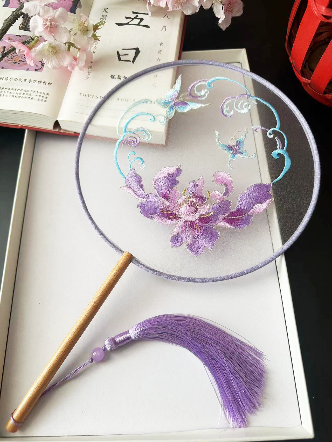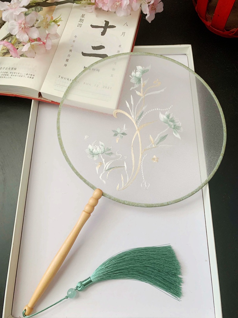 고대 스타일 팬 중국 고대 스타일 자수 라운드 팬 여름 복원 고대 한푸 치파오 캣워크 댄스 수 자수 라운드 호닝 비문스토어 가기