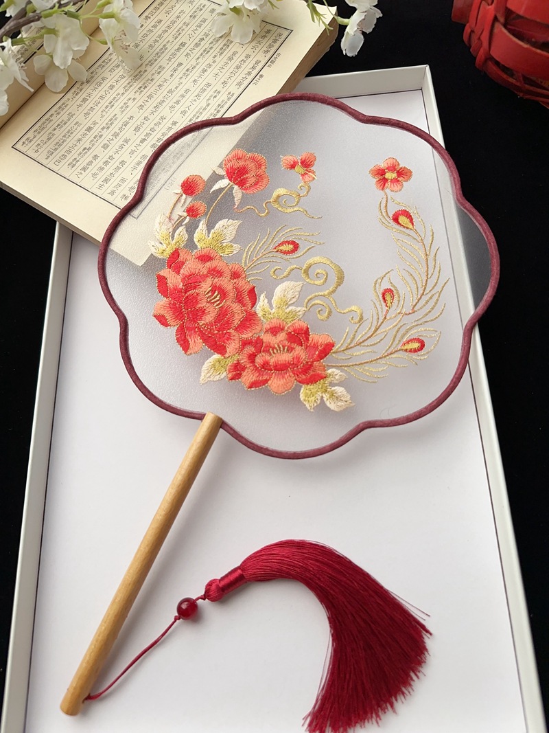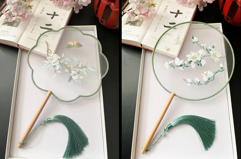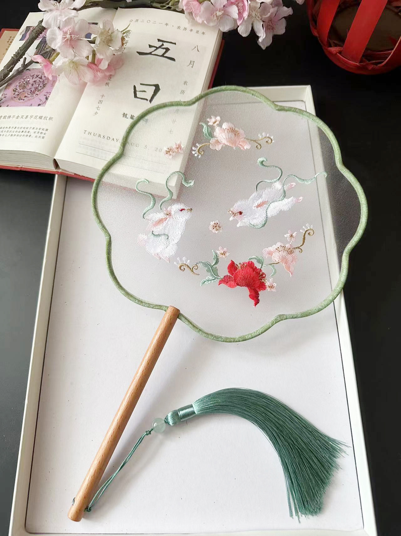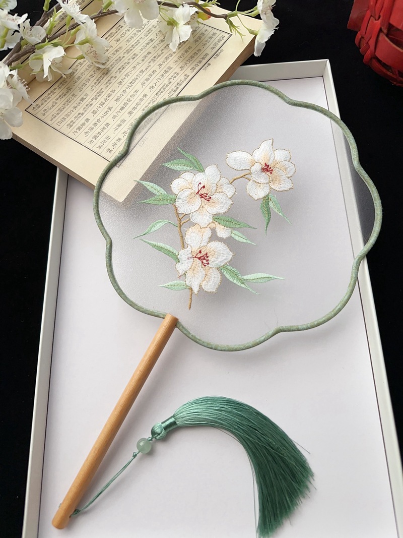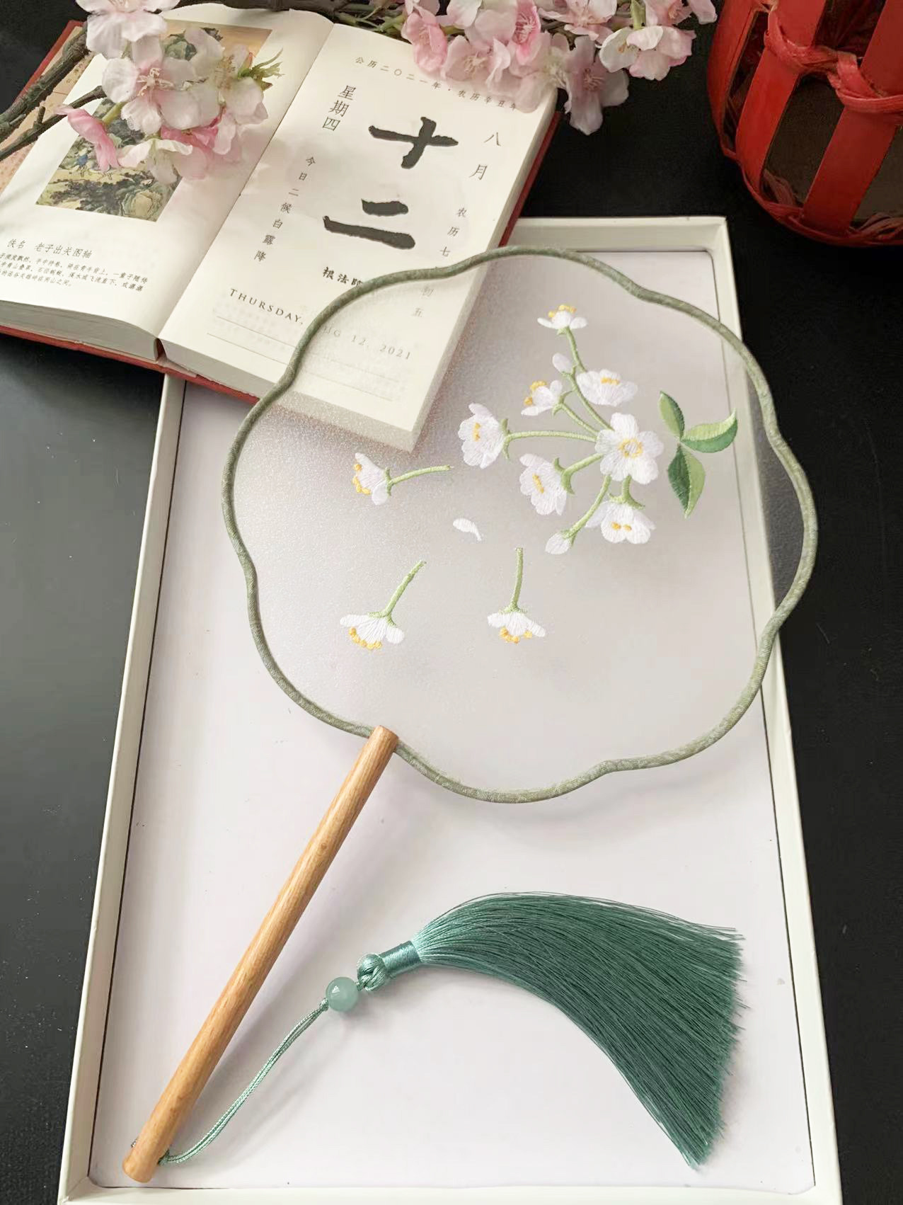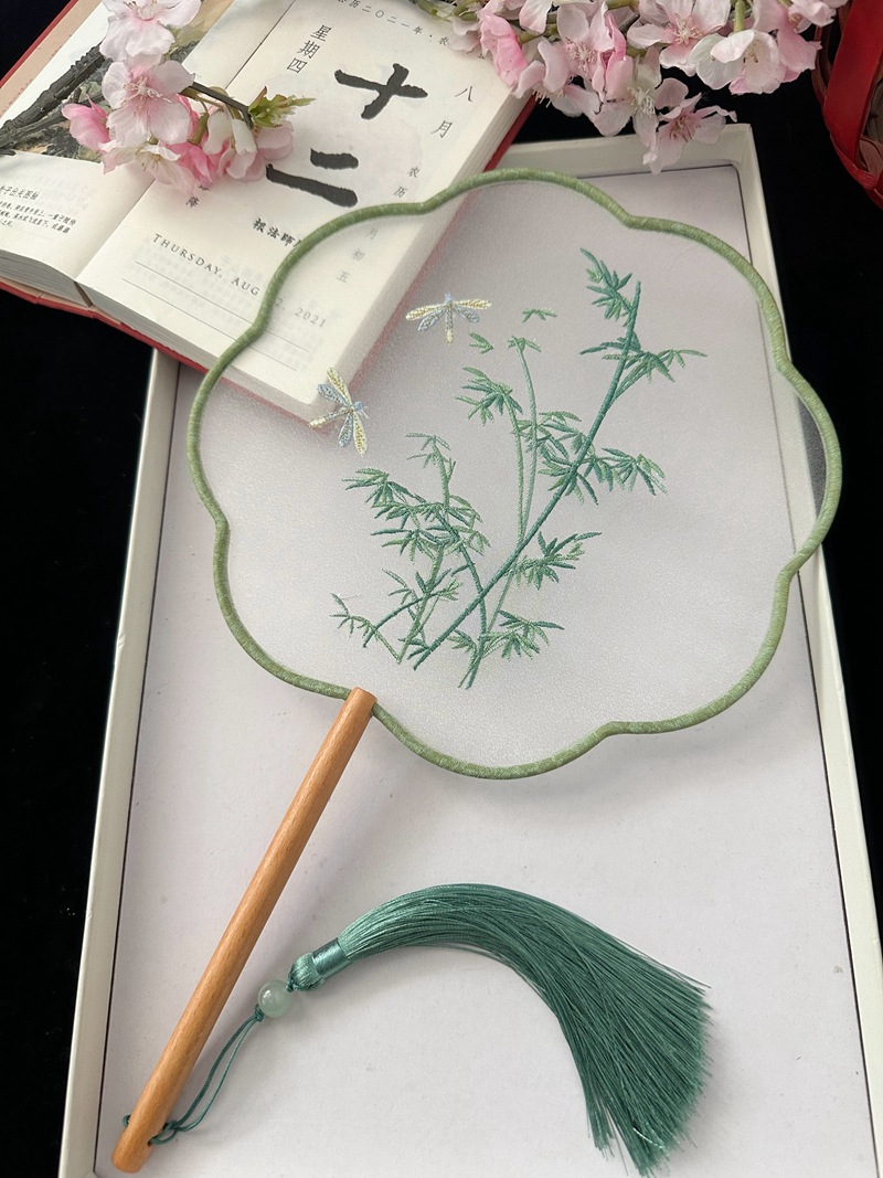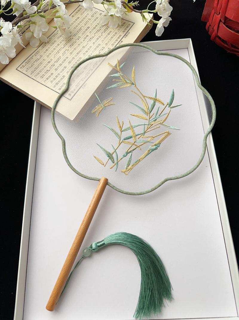 고대 스타일 팬 중국 고대 스타일 자수 라운드 팬 여름 복원 고대 한푸 치파오 캣워크 댄스 수 자수 라운드 호닝 비문스토어 가기