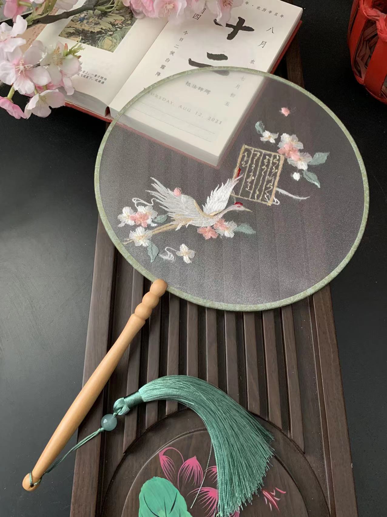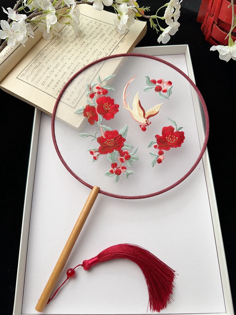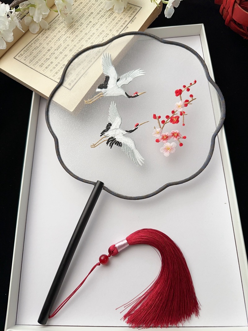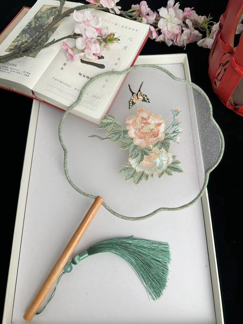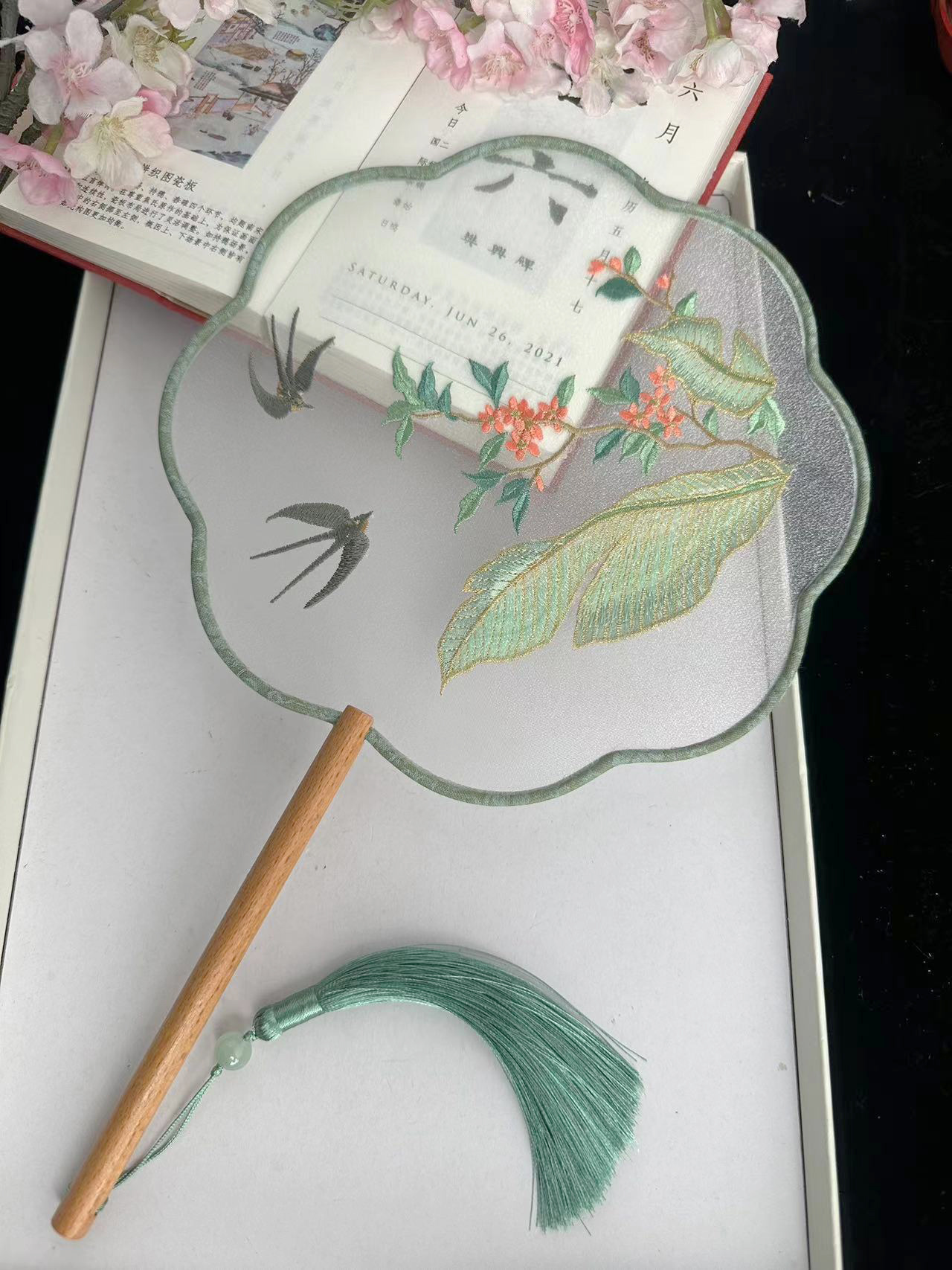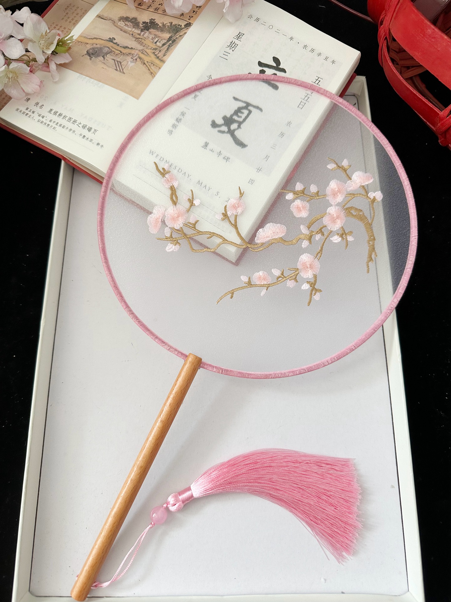 고대 스타일 팬 중국 고대 스타일 자수 라운드 팬 여름 복원 고대 한푸 치파오 캣워크 댄스 수 자수 라운드 호닝 비문스토어 가기