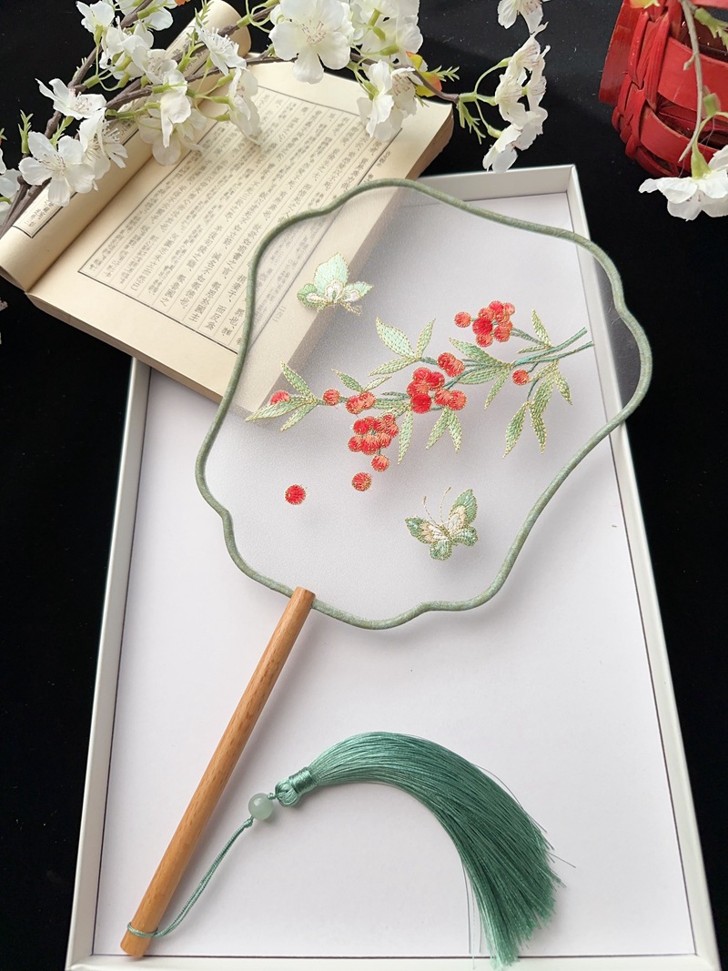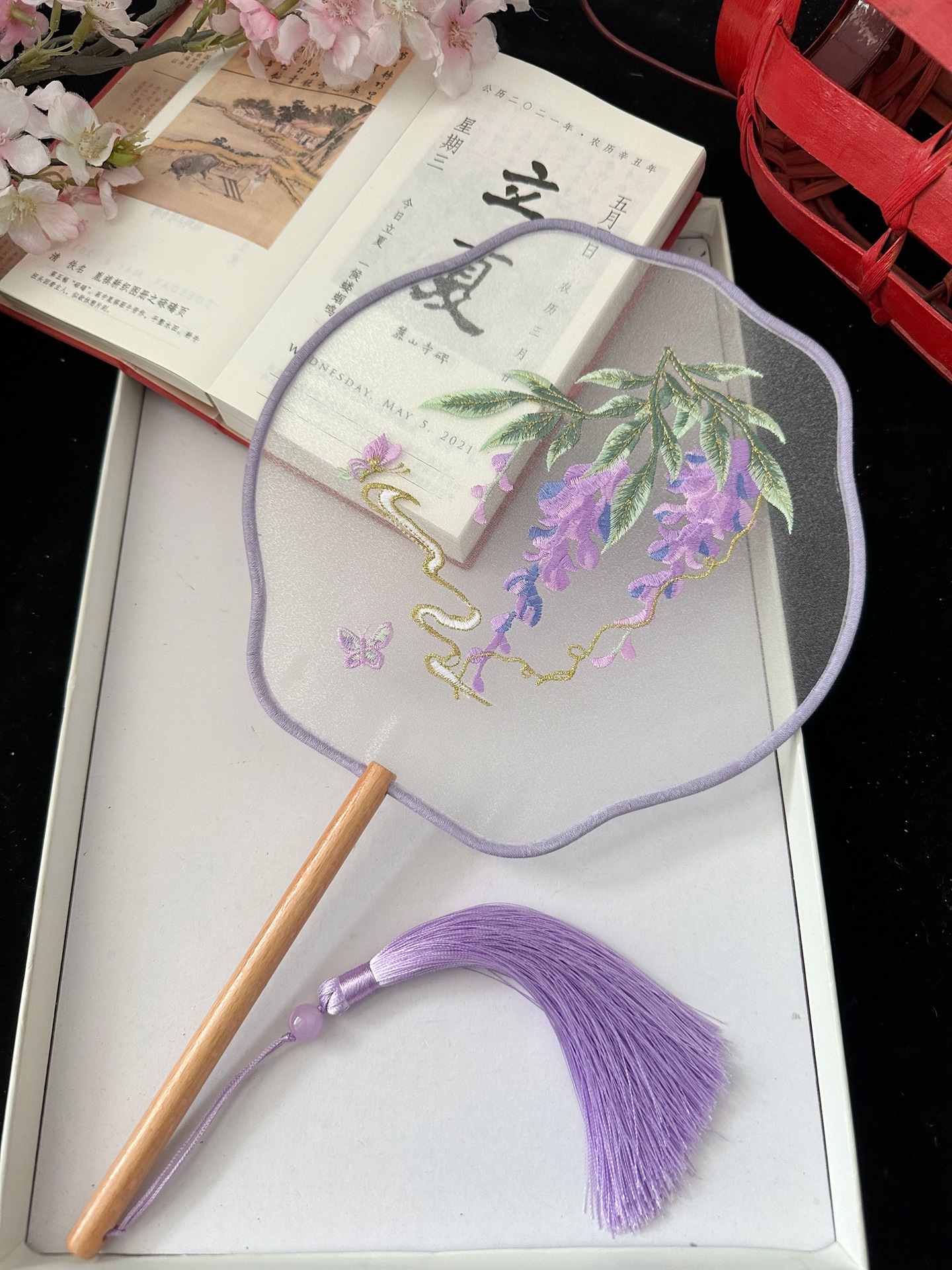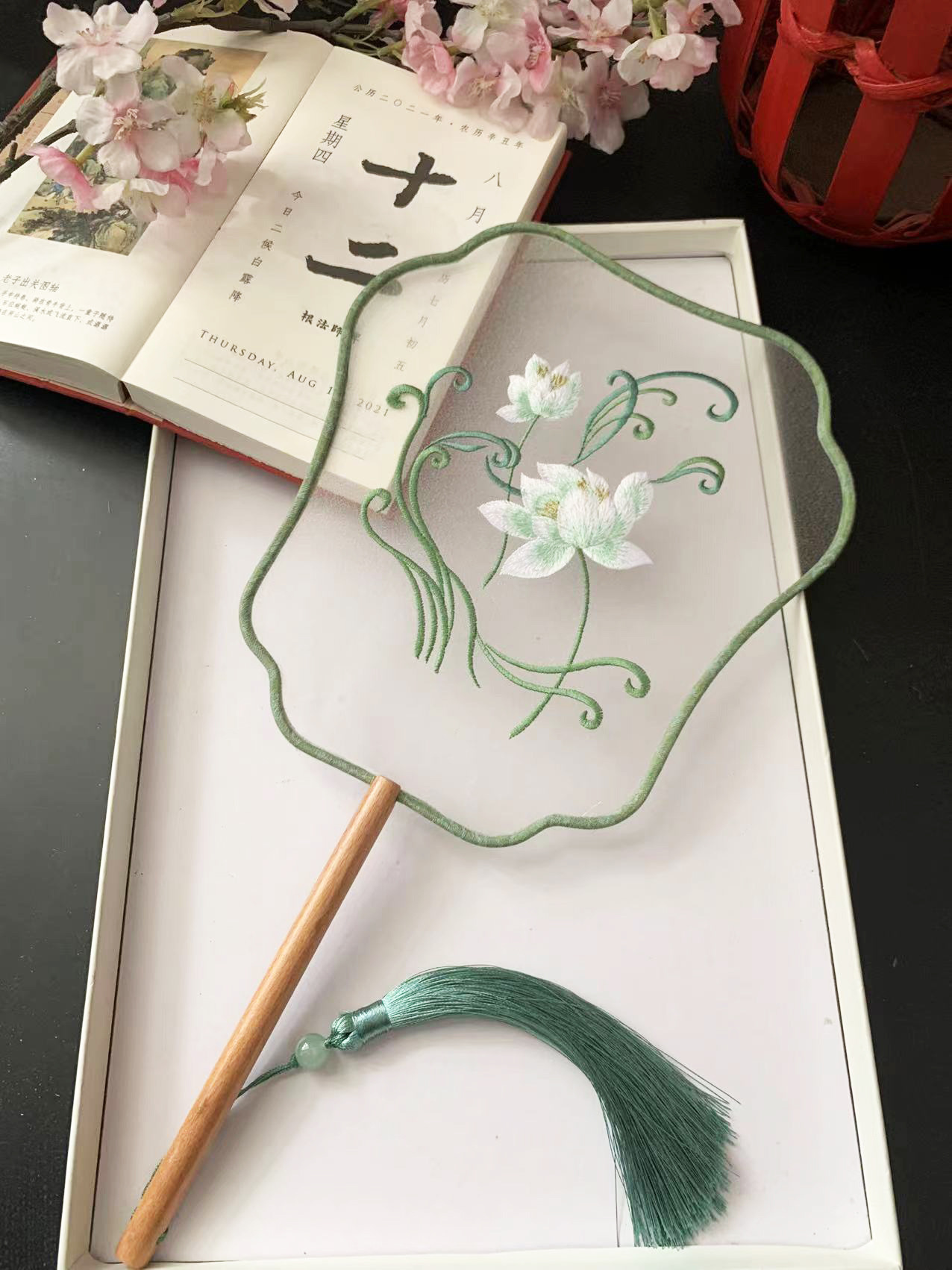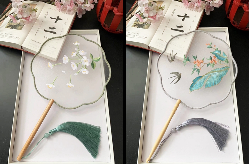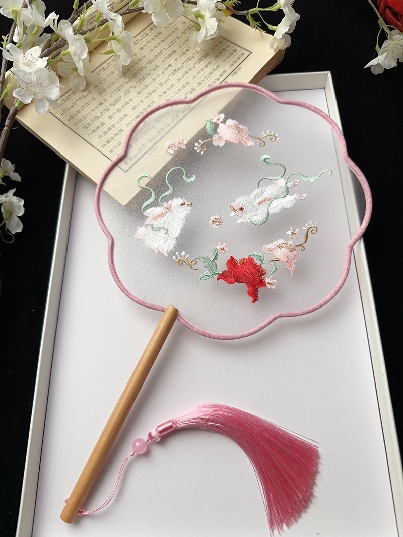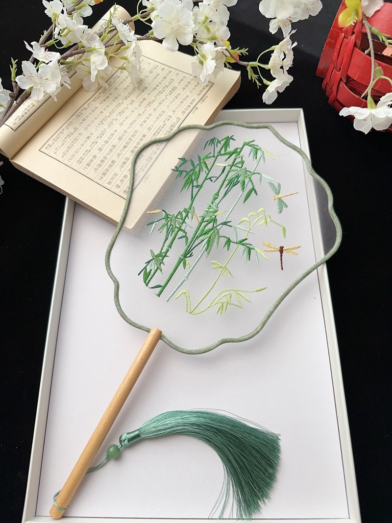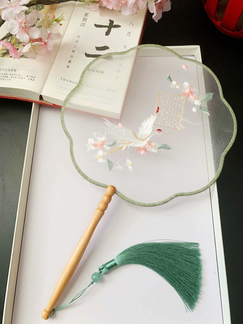고대 스타일 팬 중국 고대 스타일 자수 라운드 팬 여름 복원 고대 한푸 치파오 캣워크 댄스 수 자수 라운드 호닝 비문스토어 가기