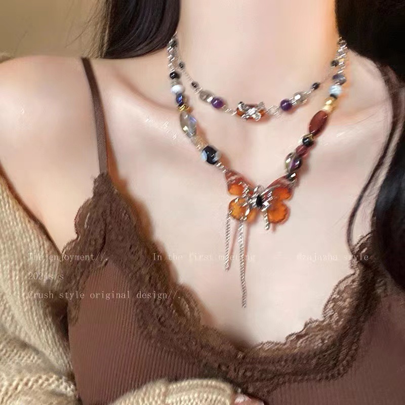 • 메일라드 더블 레이어 나비 목걸이 X3991