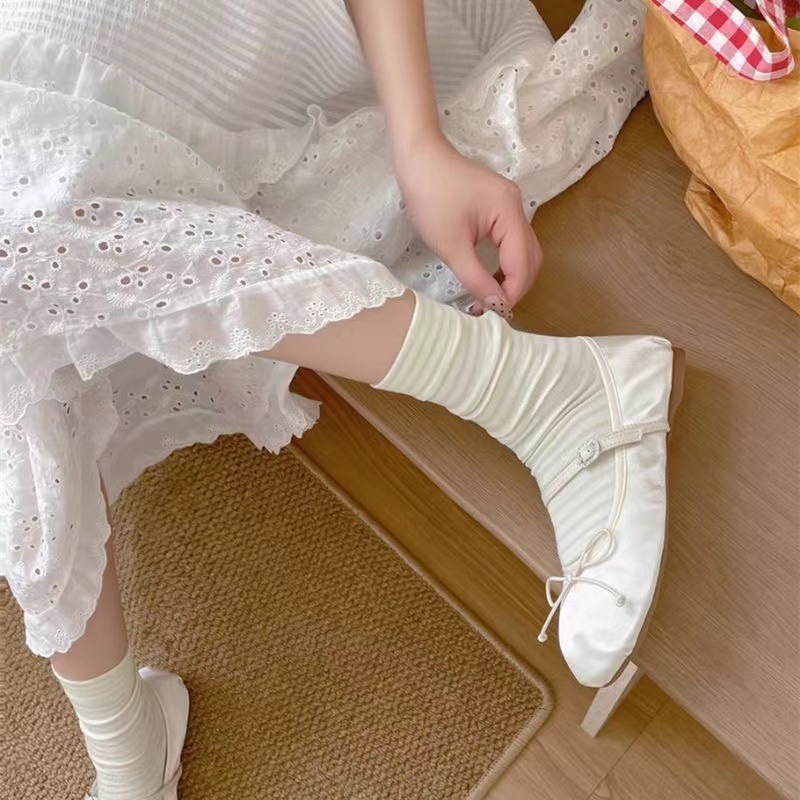 24 개의 새로운 스타일 양말 여성 스트라이프 봄과 여름 여성의 중추절 양말은 트렌디 한 넓은 입 문 양말 학술 스타일 소녀 더미 양말