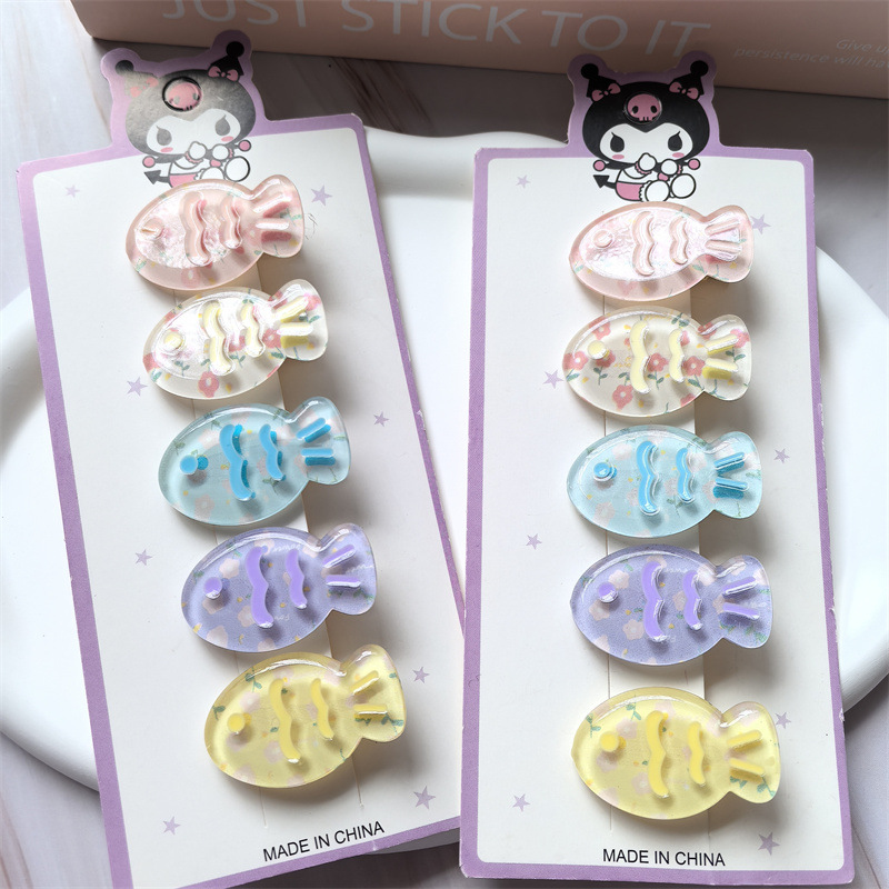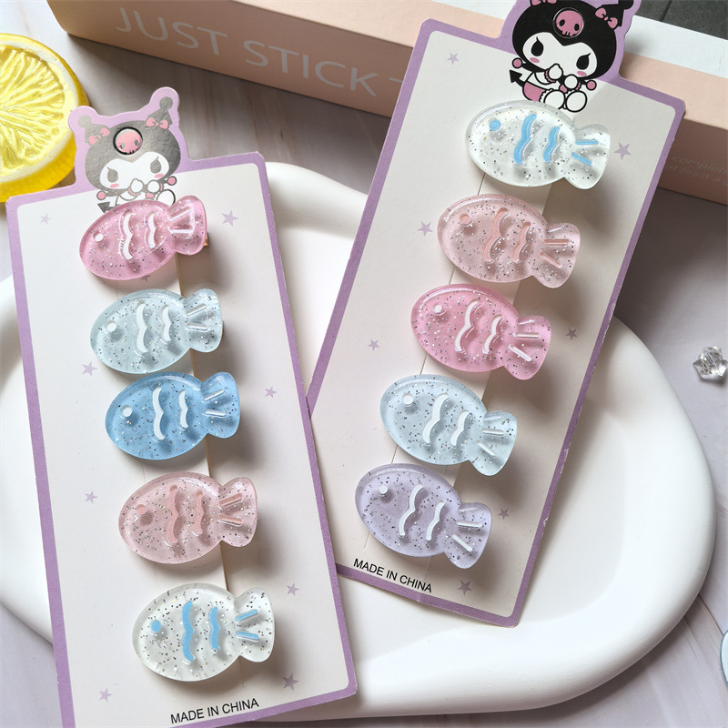 젤리색 반짝이 물고기 머리핀, 달콤한 소녀 감성 앞머리 핀, 귀여운 붕어 학생 머리핀, 헤어 액세서리
