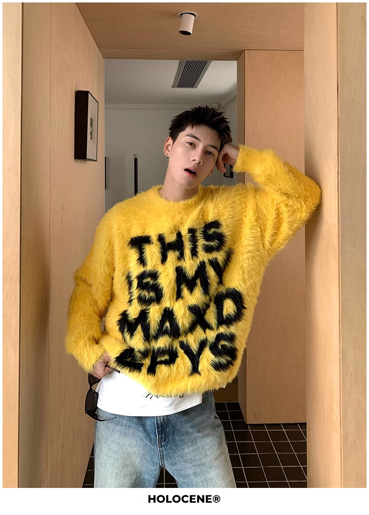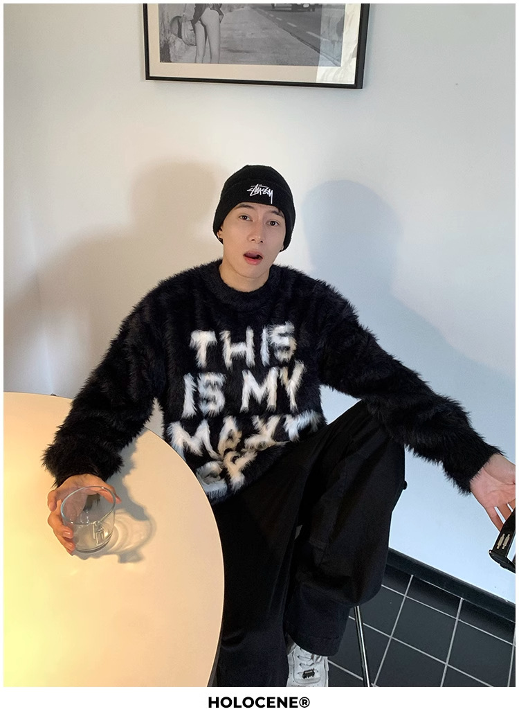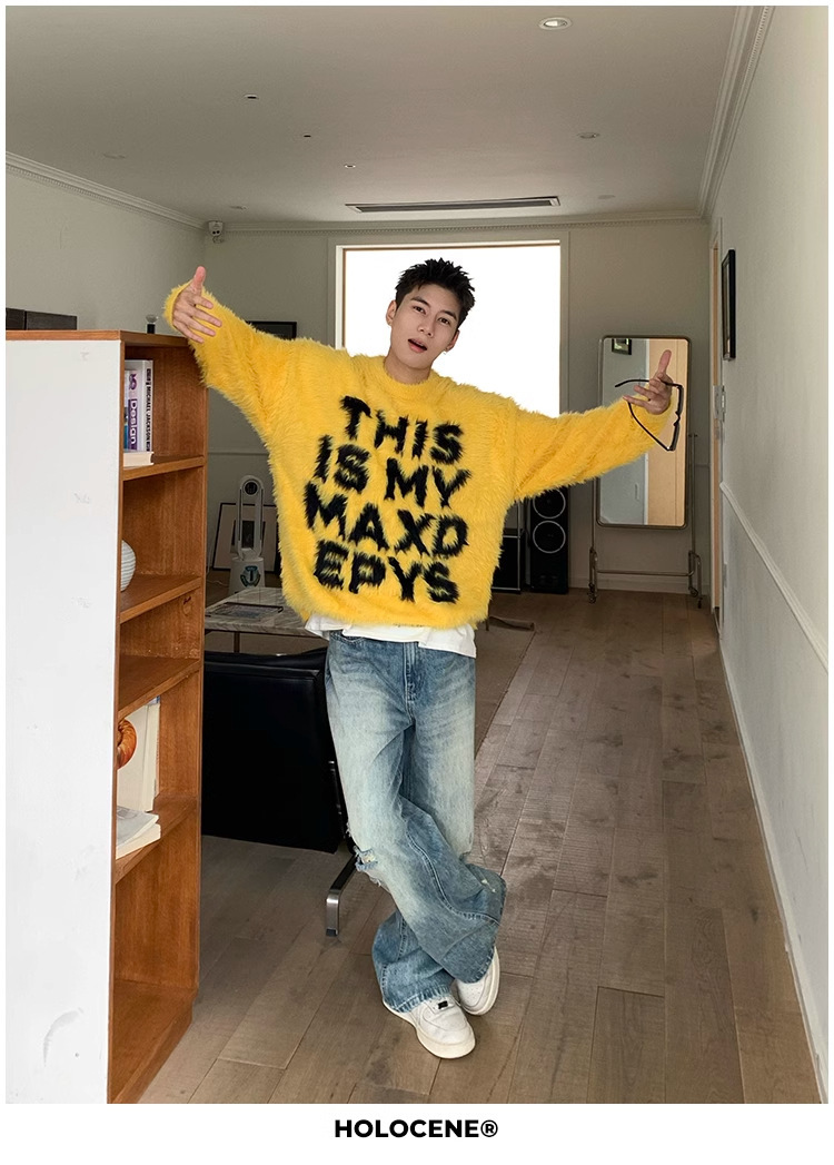전국 패션 레트로 레터 디자인 센스 게으른 스타일 스웨터 남성 봄과 가을 2024 새로운 미국 스타일 패션 브랜드 스웨터 탑
