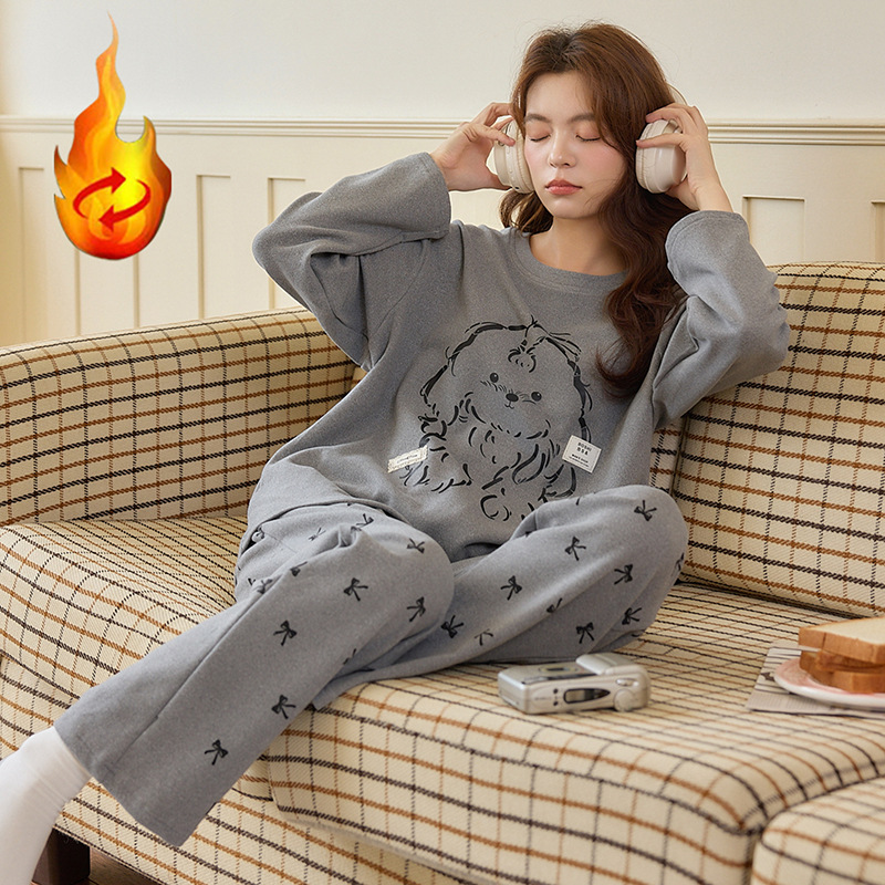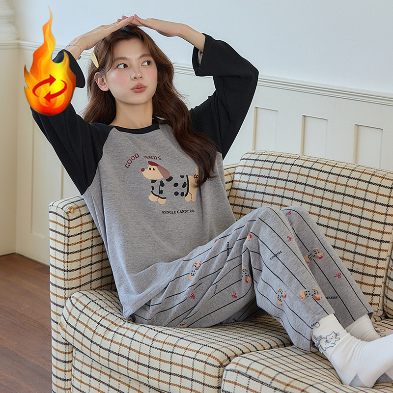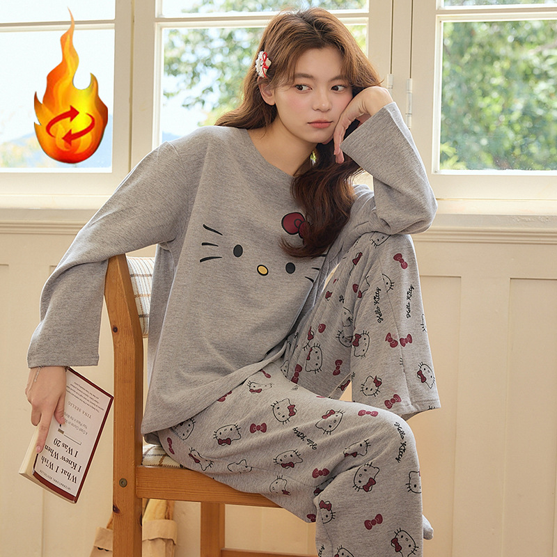 여성용 잠옷 두꺼운 보온성 여성용 긴팔 만화 작은 검은 고양이 얇은 벨벳 홈웨어 여성용 가을 겨울 세트스토어 가기