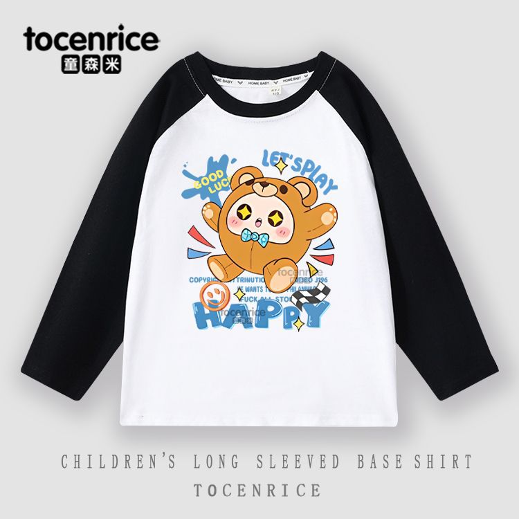 소년과 소녀 Raglan 긴 소매 가을 2024 새로운 서양식 귀여운 파티 만화 인쇄 큰 어린이를위한 올 매치 탑스토어 가기