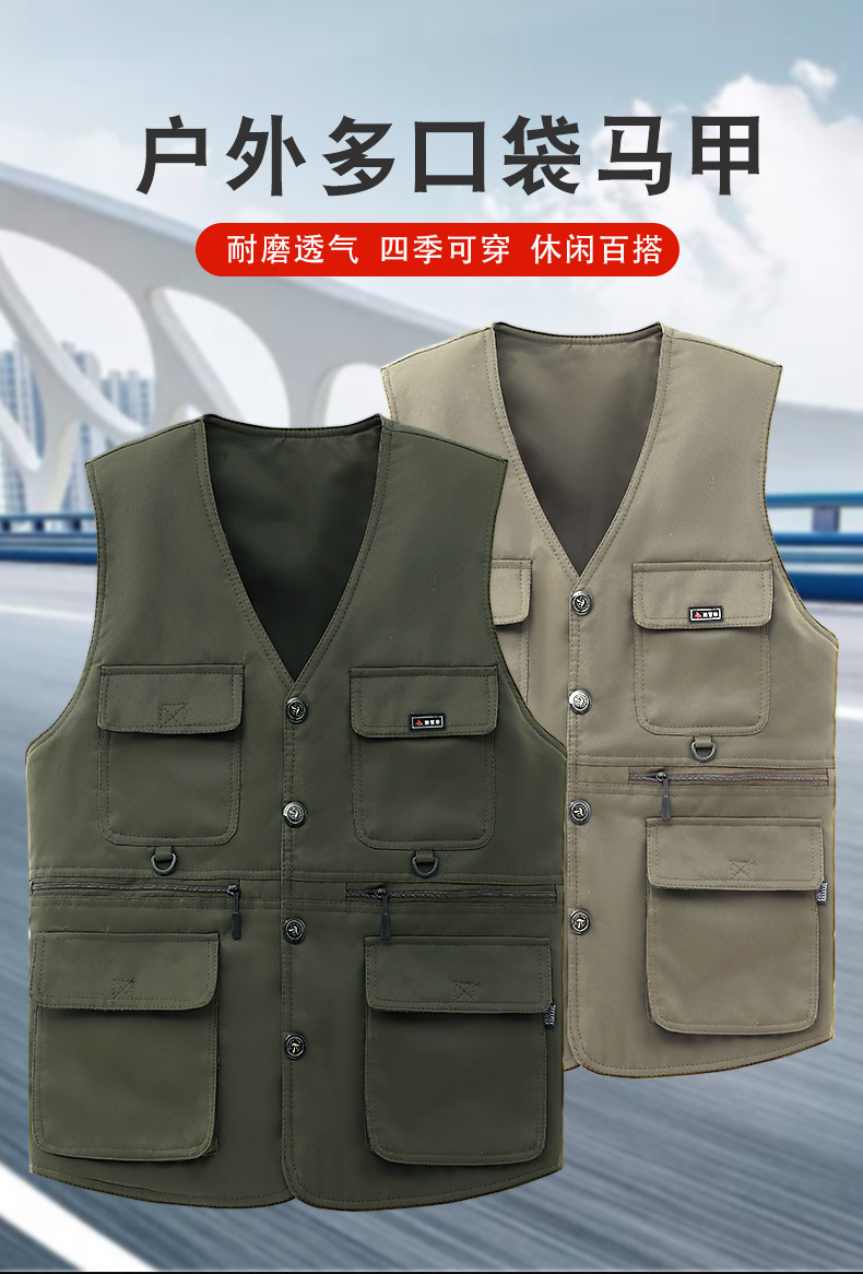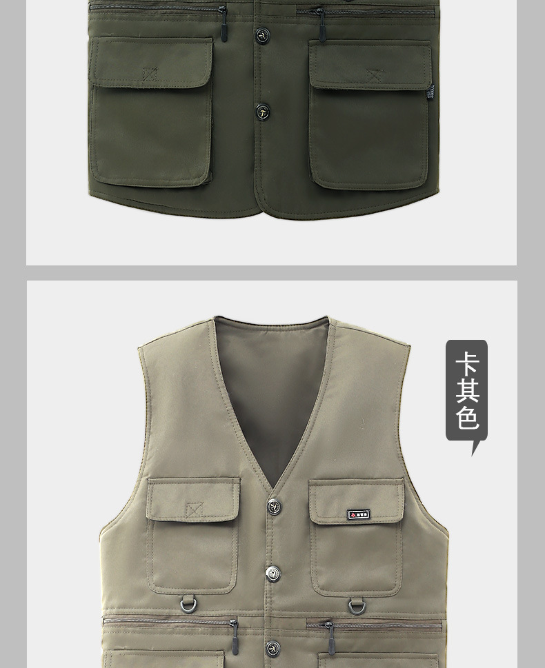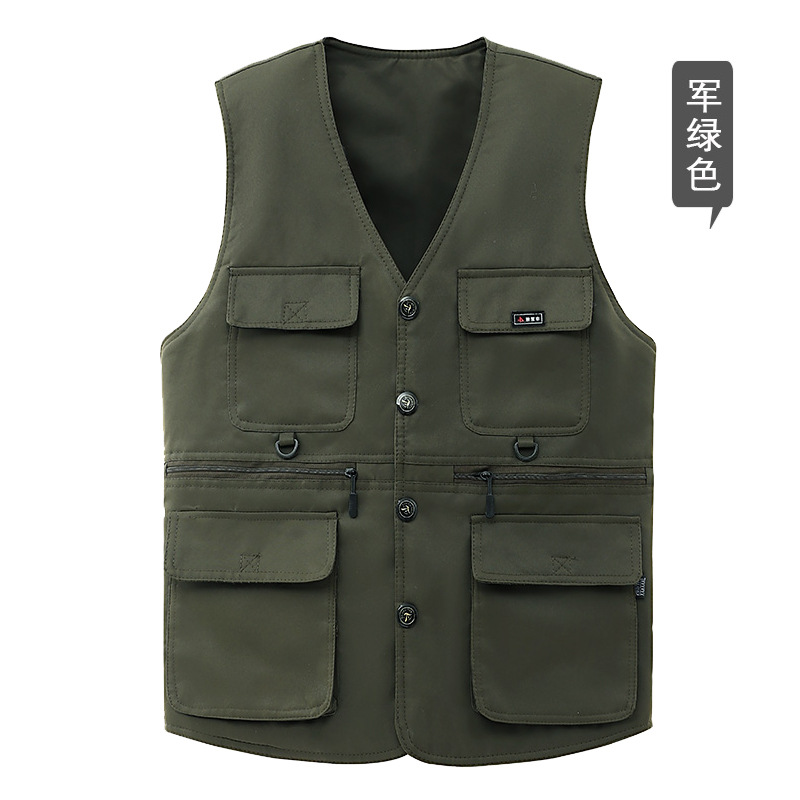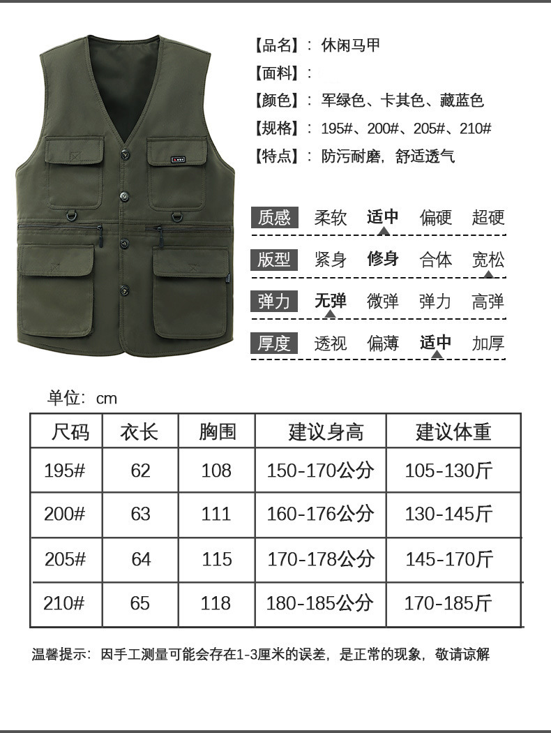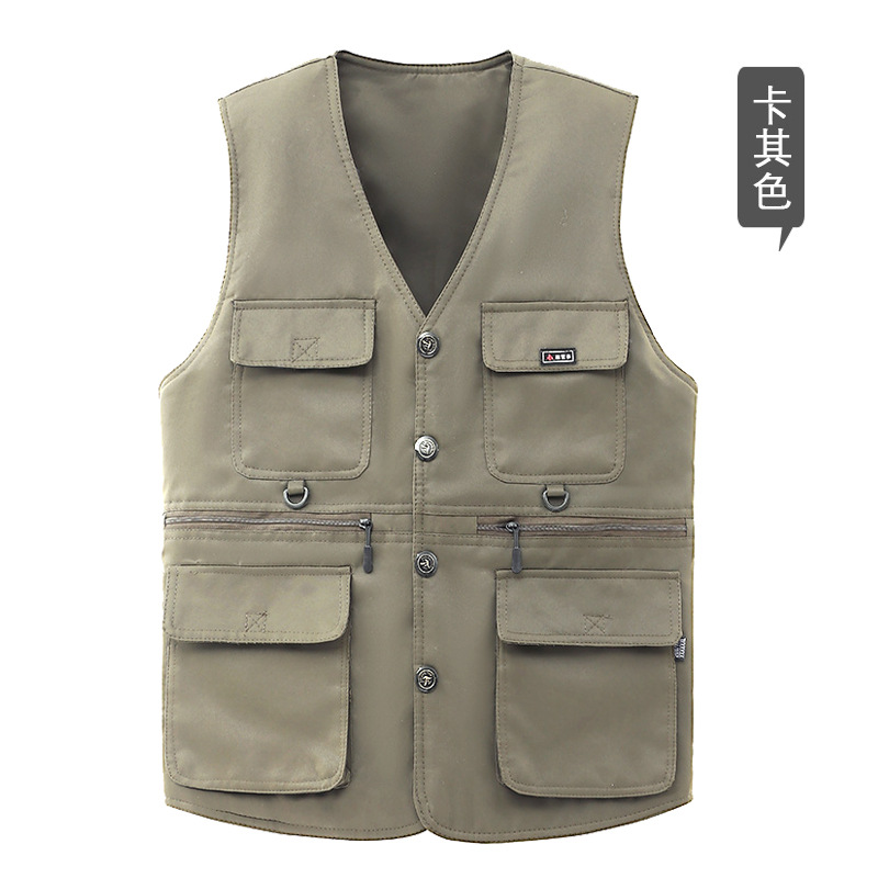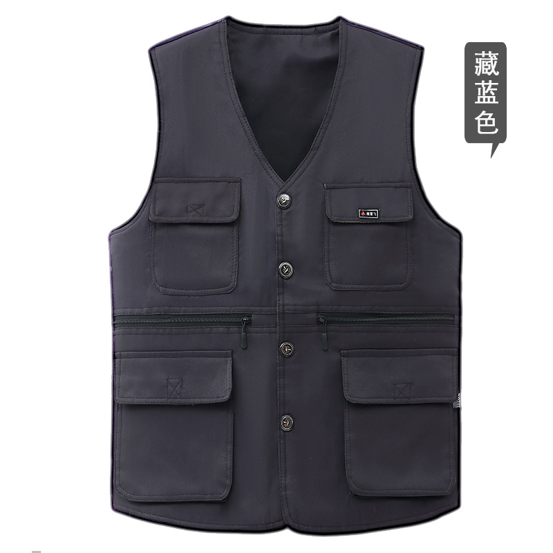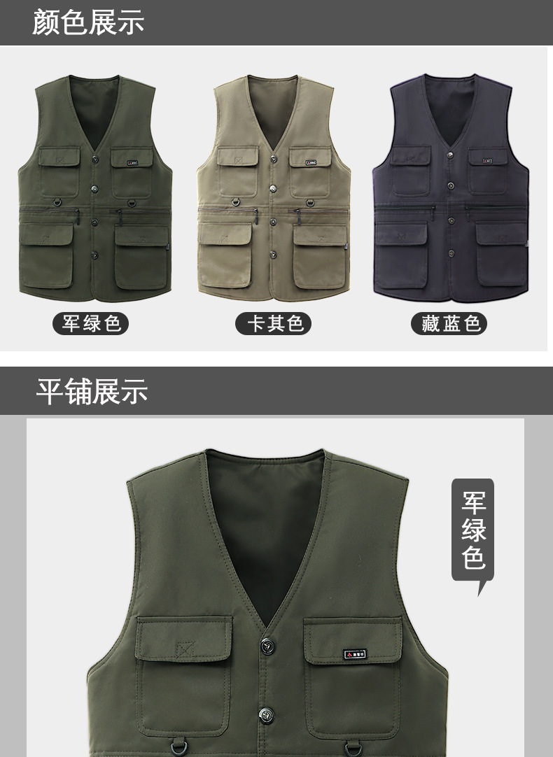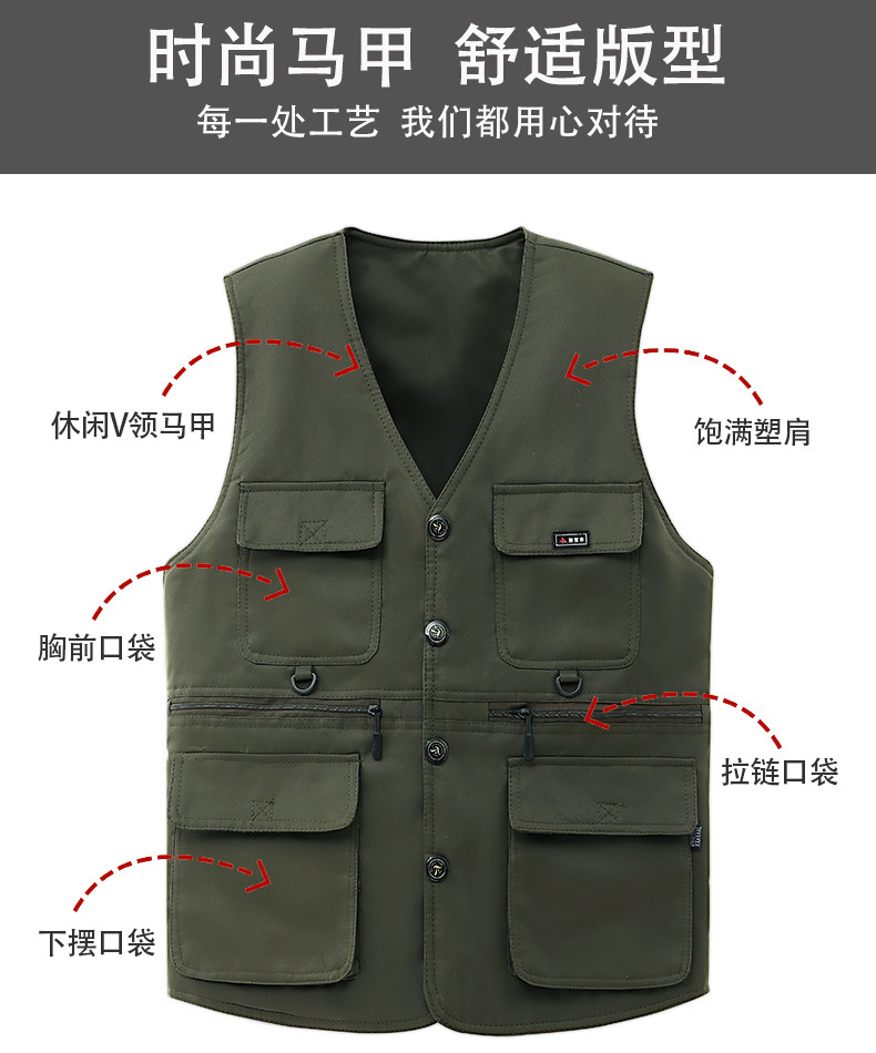 봄과 가을 중년 및 노인 남성 조끼 아빠 플러스 사이즈 멀티 포켓 조끼 V 넥 캐주얼 조끼 사진 낚시 조끼