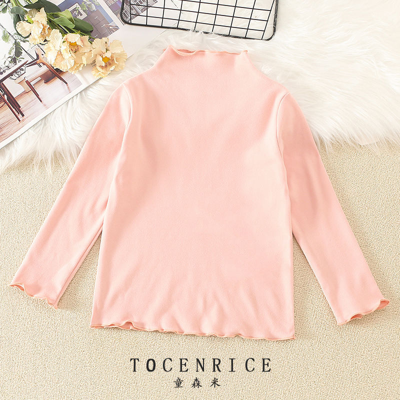 통 센미 걸스 봄과 가을 새로운 도착 귀 가장자리 반 하이 칼라 베이스 셔츠 아기 유치원 가을 패션 최고 유행스토어 가기