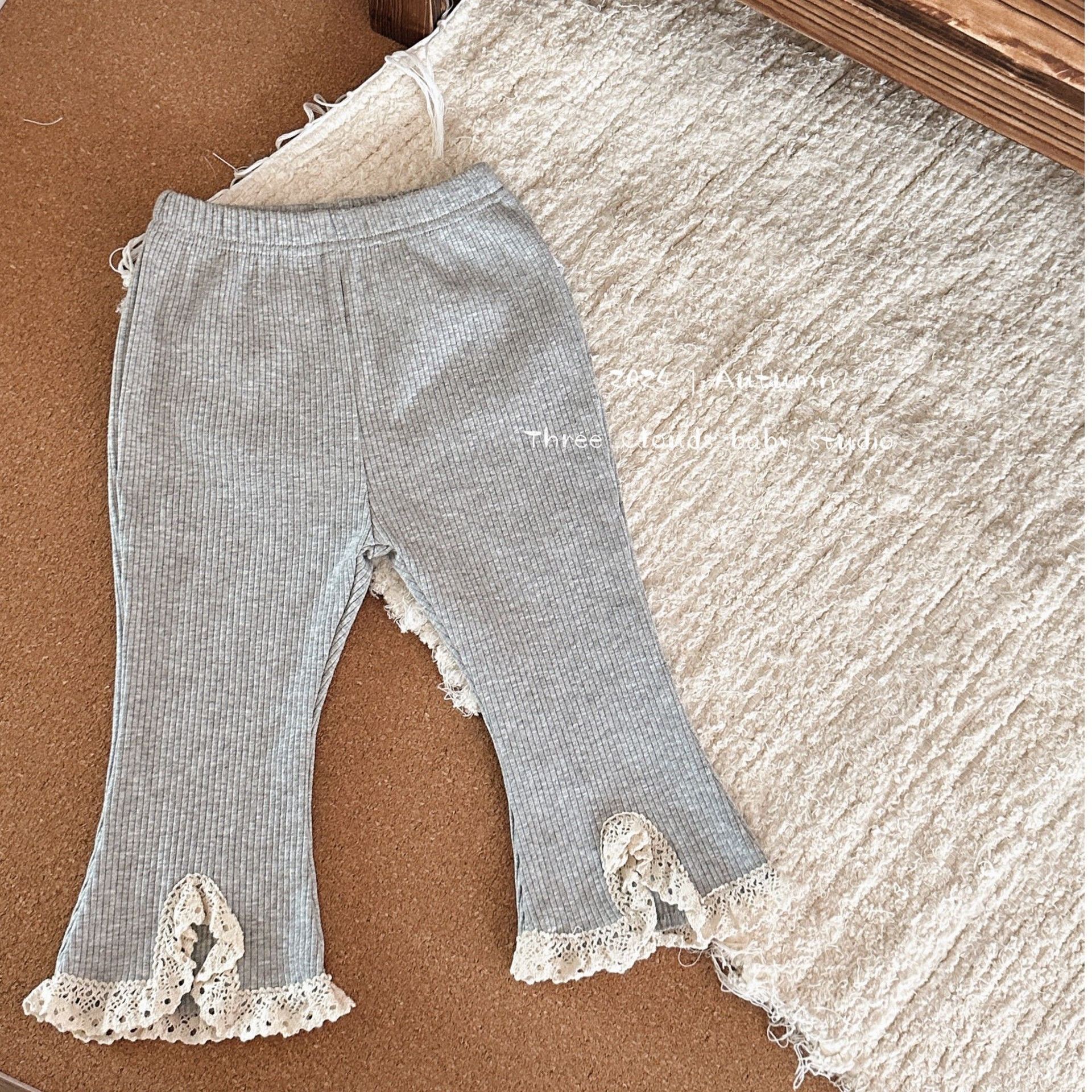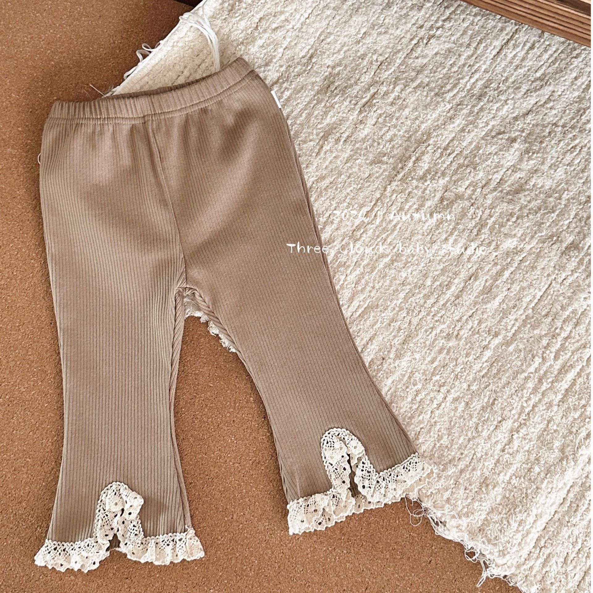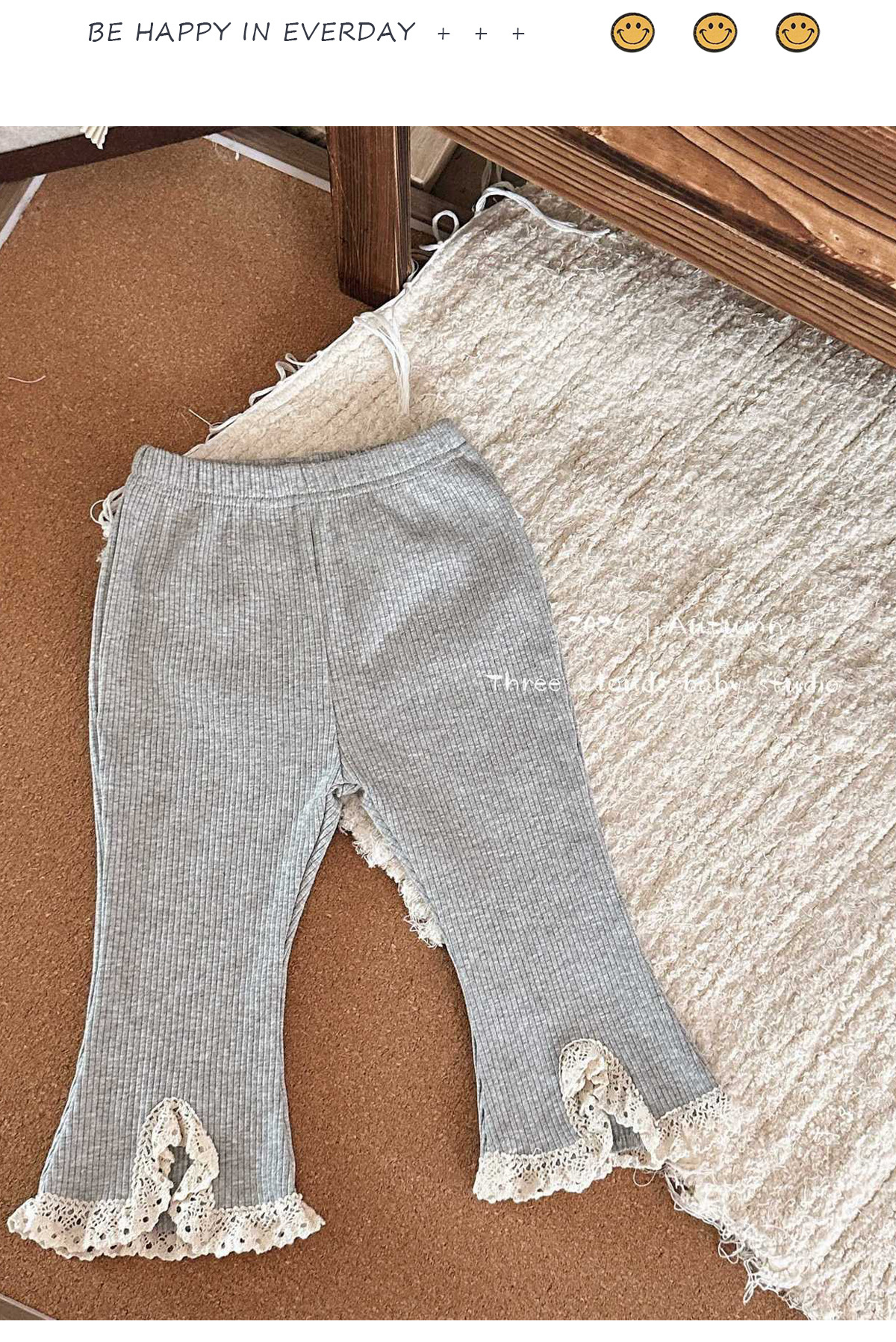 유아 이른 가을과 겨울 아기 여성 한국식 마이크로 레이스 바지 뻗기 구덩이 올매치 솔리드 컬러 플레어 바지