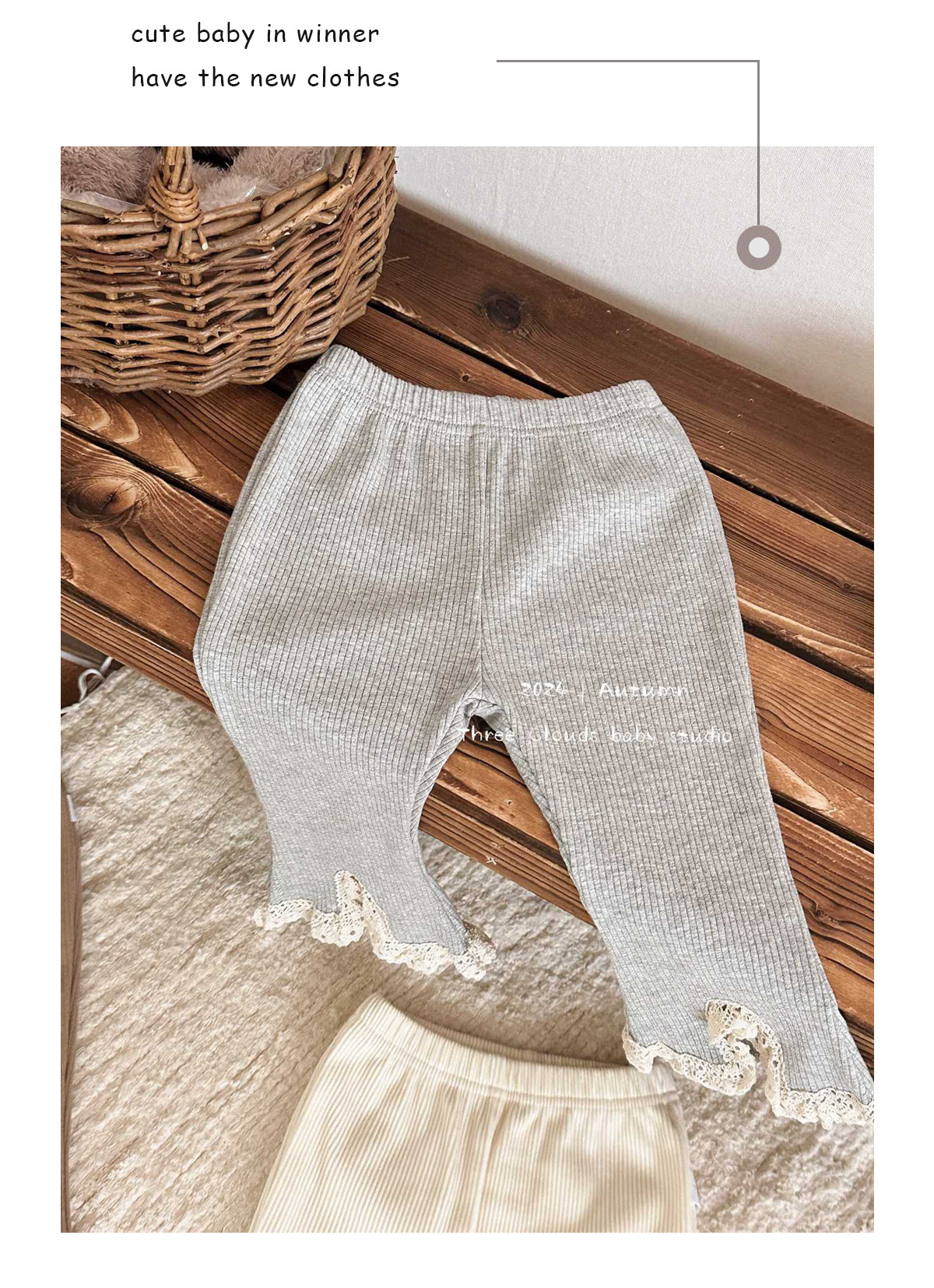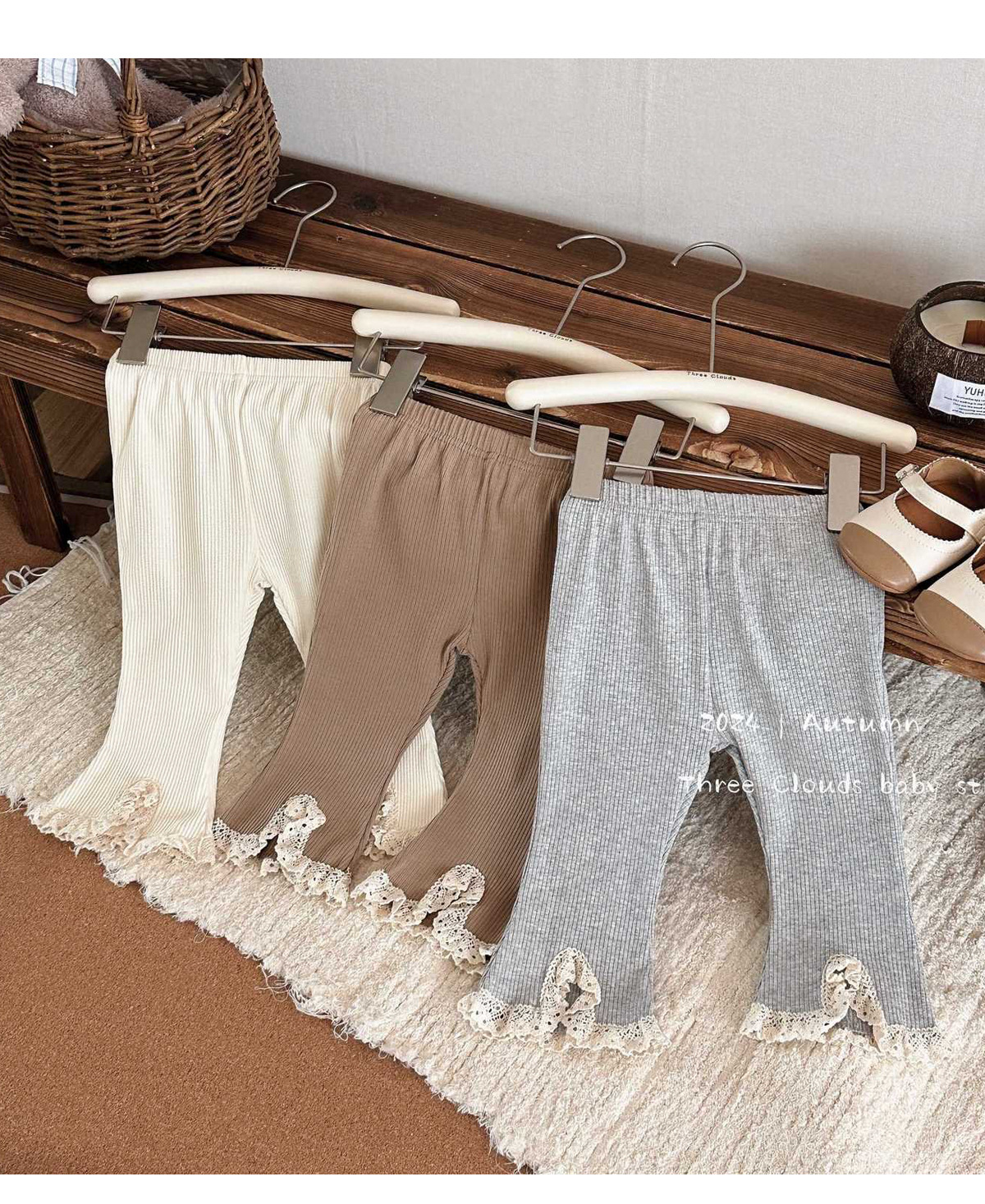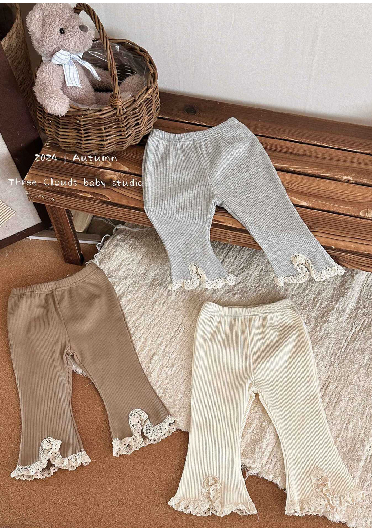 유아 이른 가을과 겨울 아기 여성 한국식 마이크로 레이스 바지 뻗기 구덩이 올매치 솔리드 컬러 플레어 바지