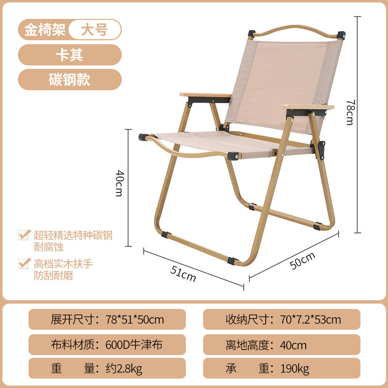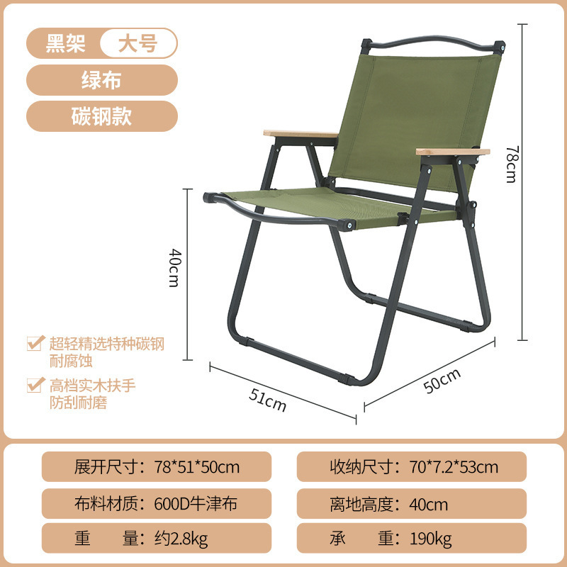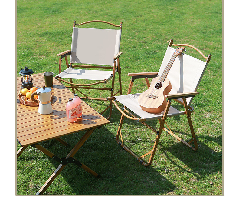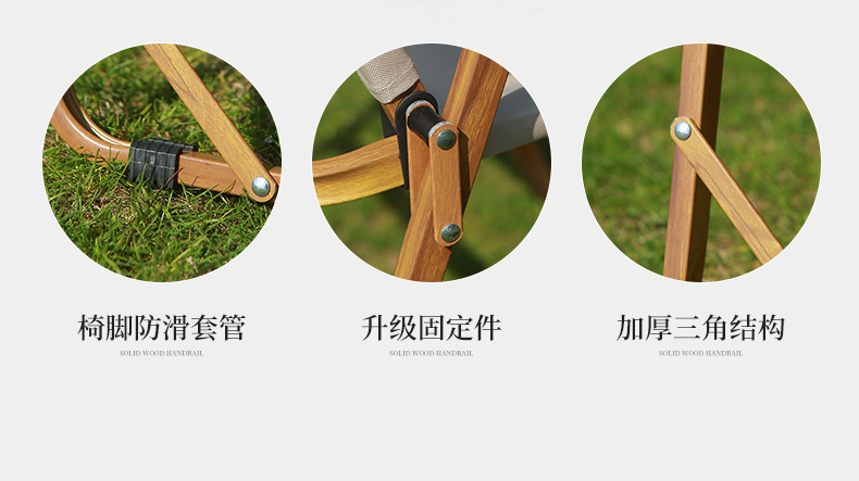 • 풀더블 네일 대형 [알루미늄] 나뭇결 프레임 + 카키 + 너도밤나무 팔걸이