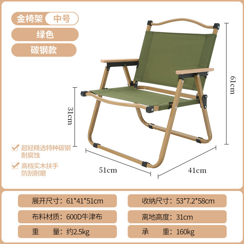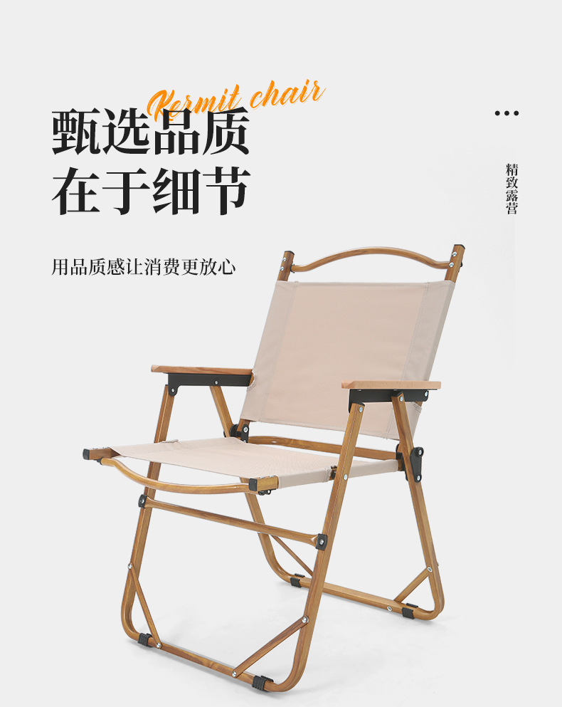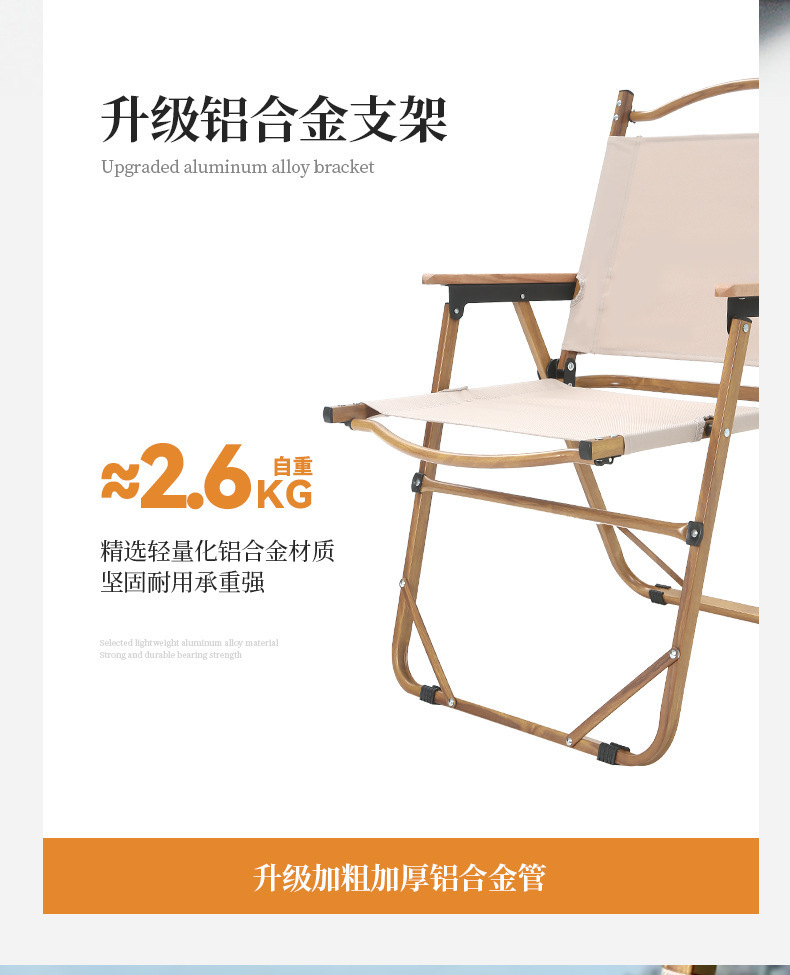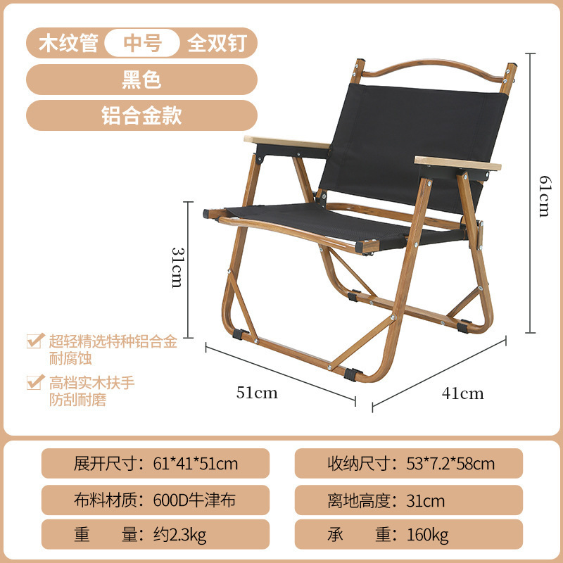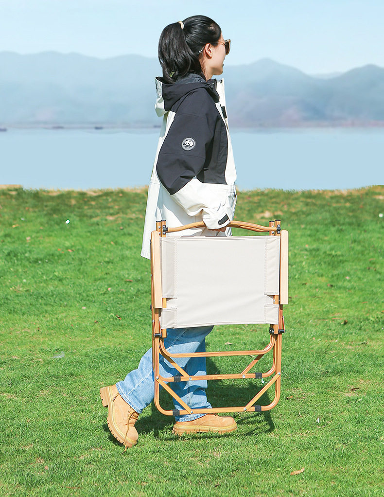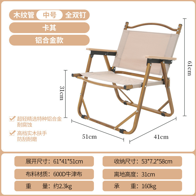 • 풀더블 네일 미디엄 [알루미늄] 나뭇결 프레임 + 카키 + 너도밤나무 팔걸이