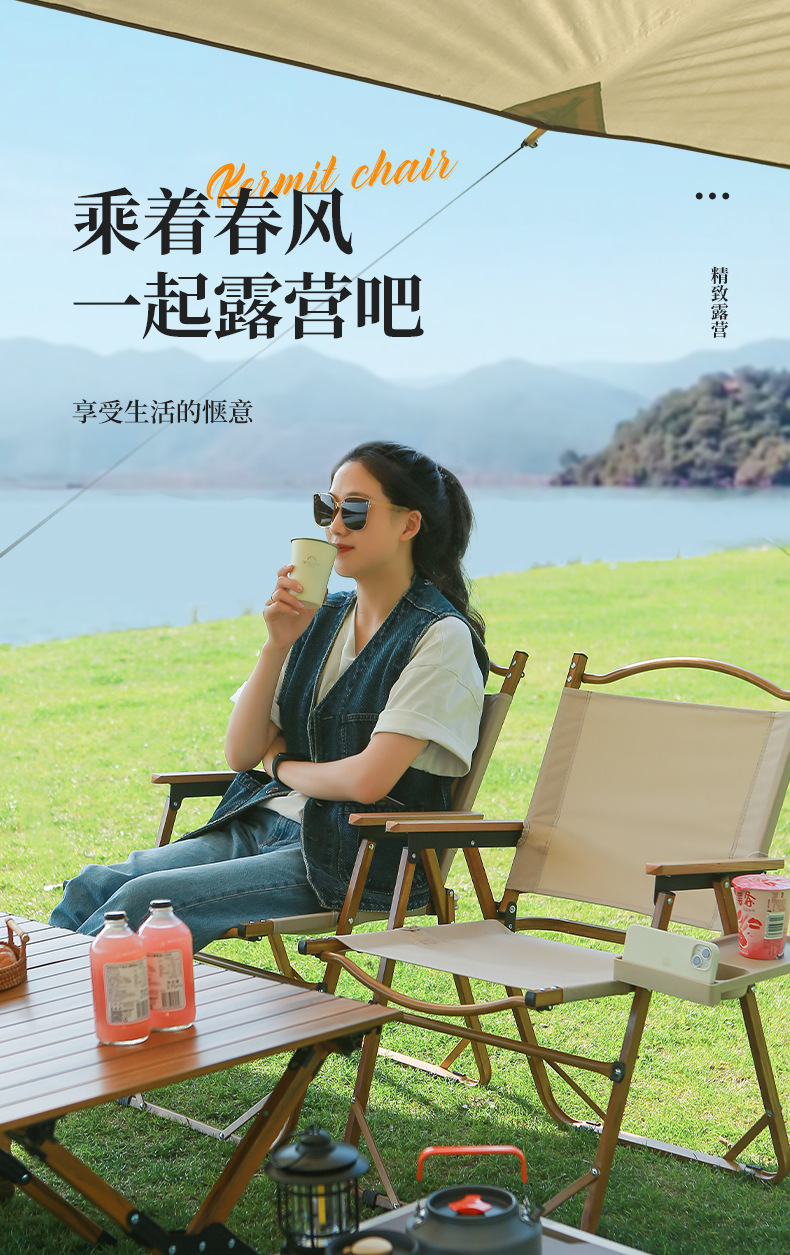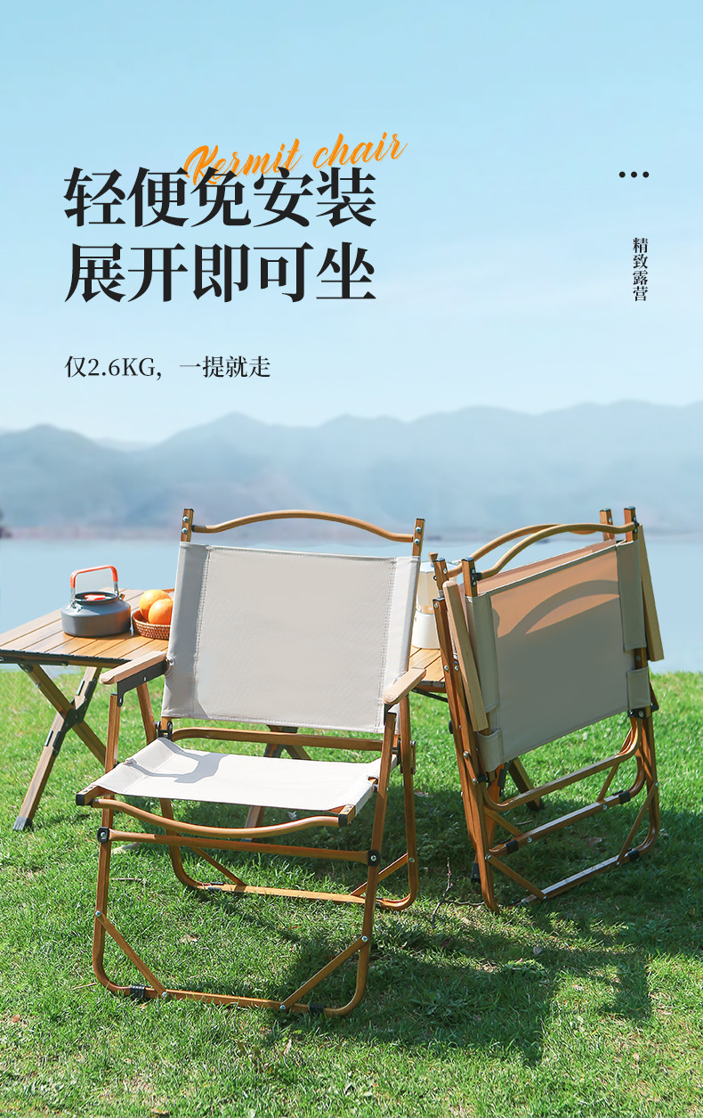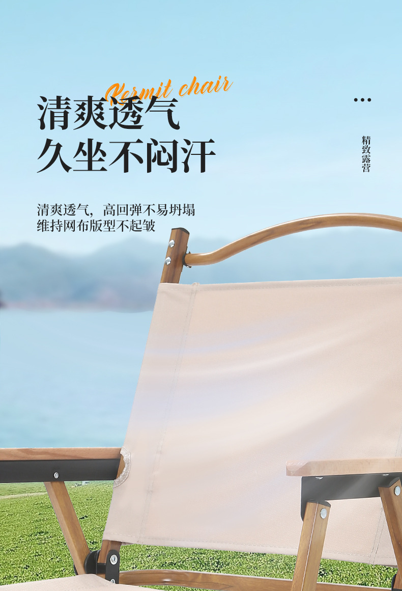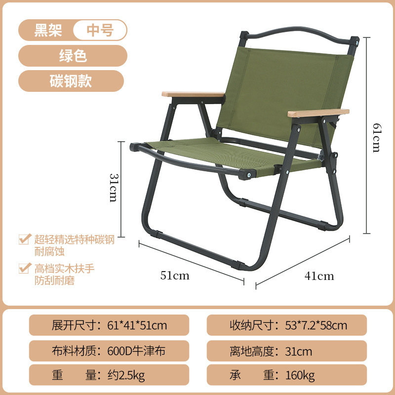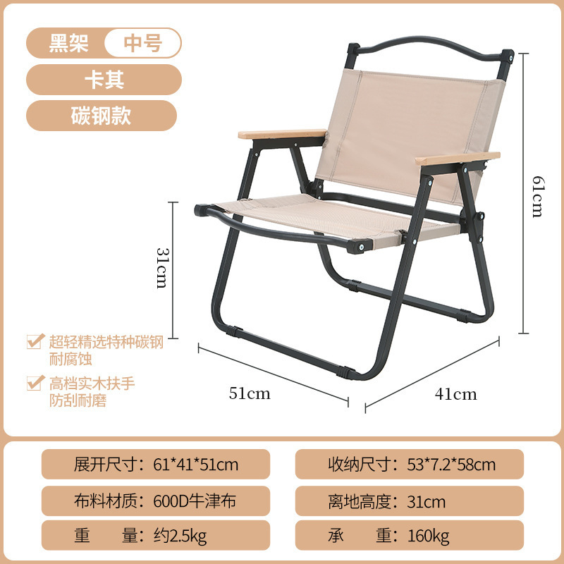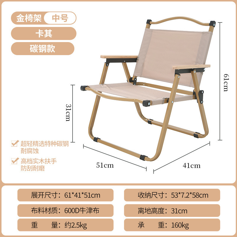 • 풀더블 네일 미디엄 [알루미늄] 나뭇결 프레임 + 카키 + 너도밤나무 팔걸이