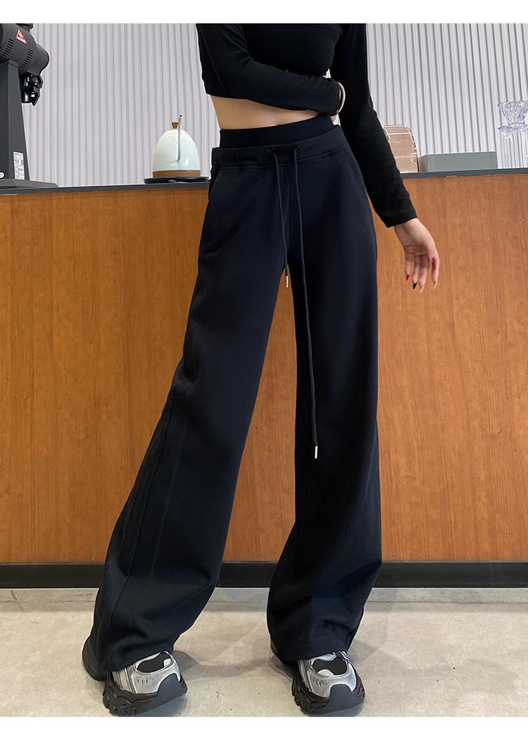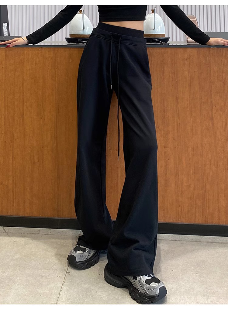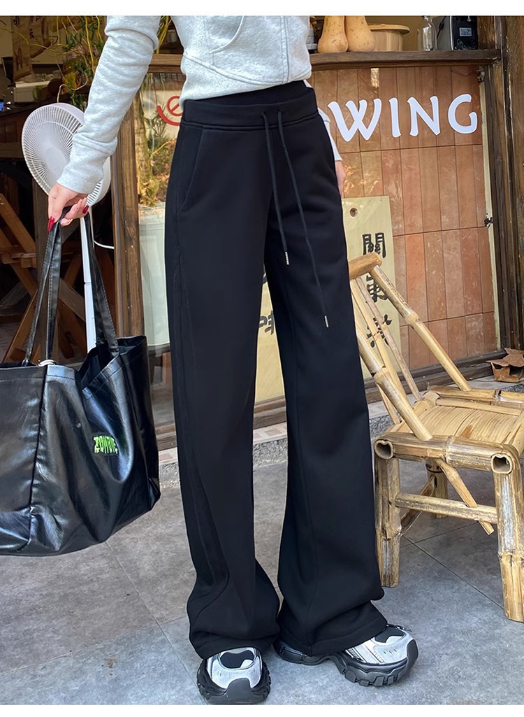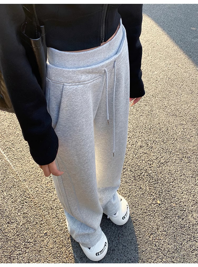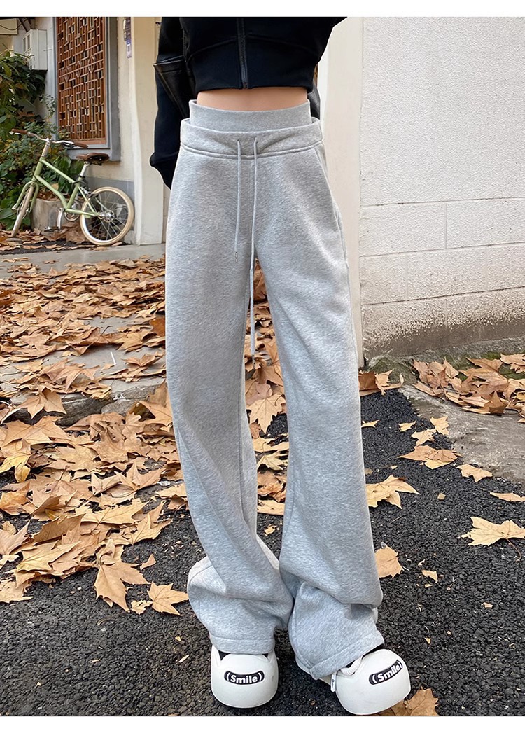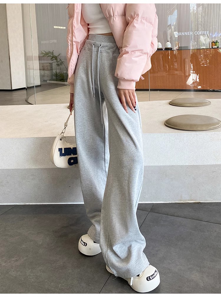 더블 허리 스포츠 바지 여자 2024 가을 겨울 새로운 한국 스타일 드로스트링 슬리밍 스트레이트 레그 캐주얼 트렌디 트레일 링 팬츠