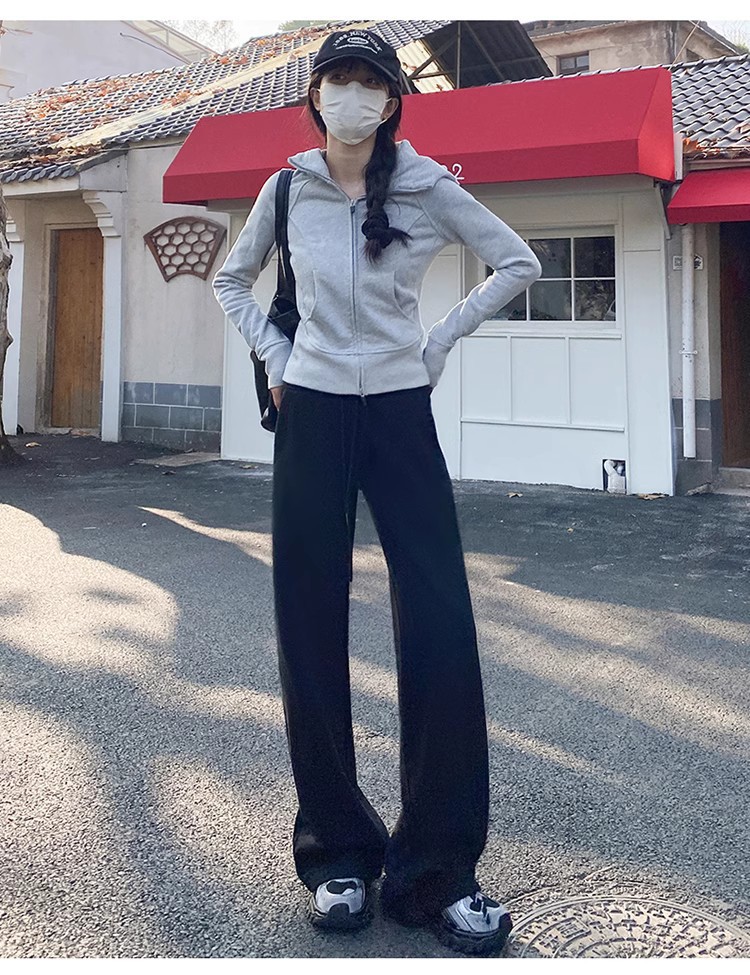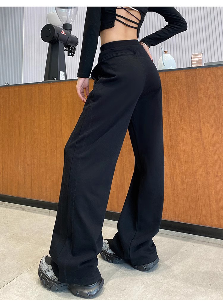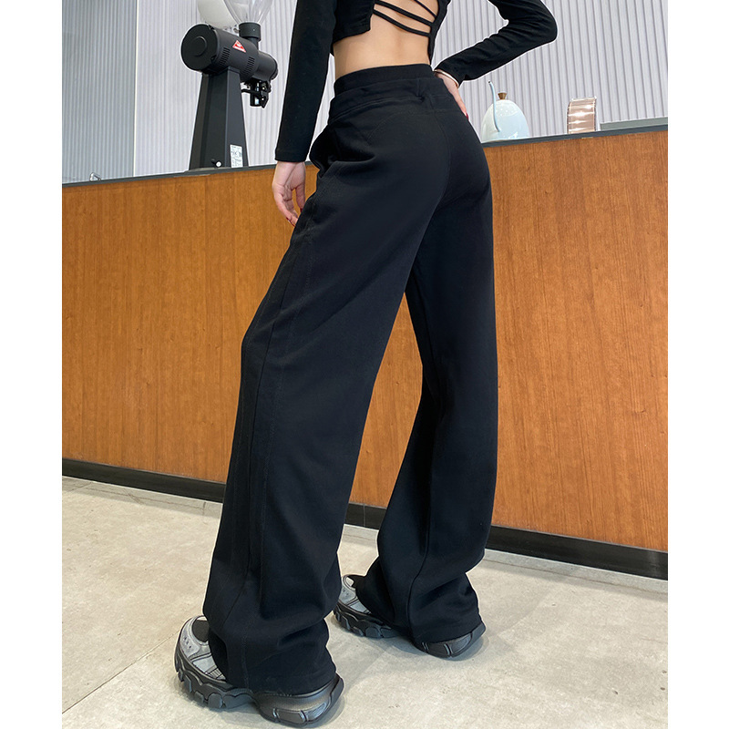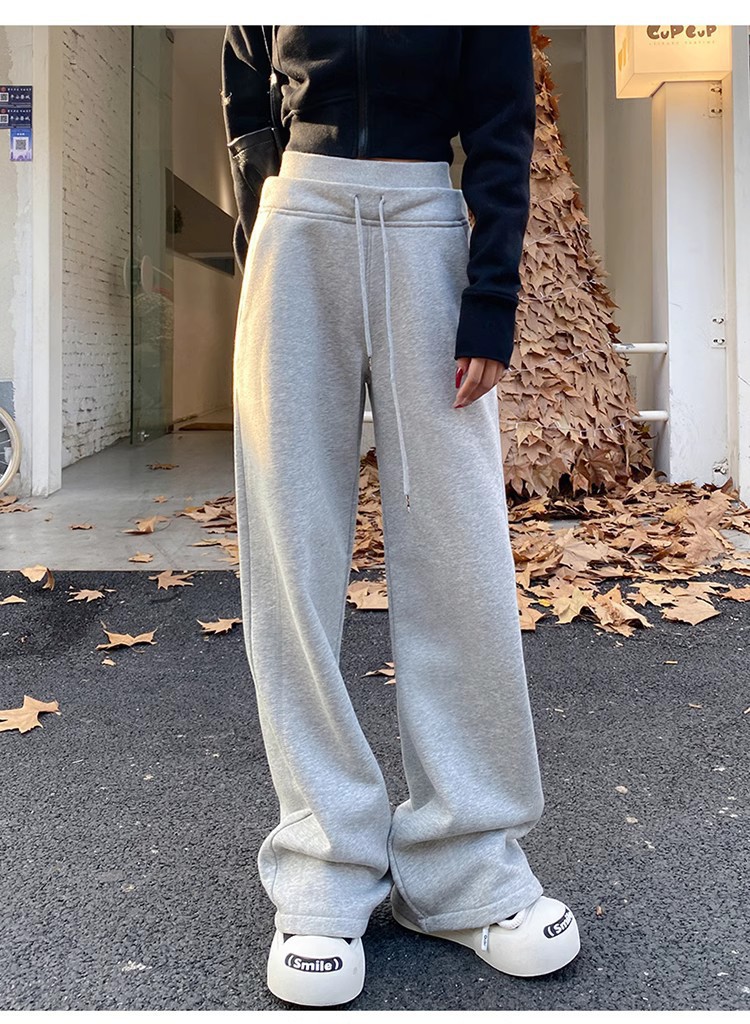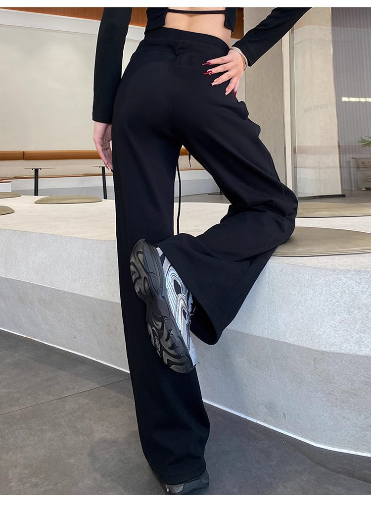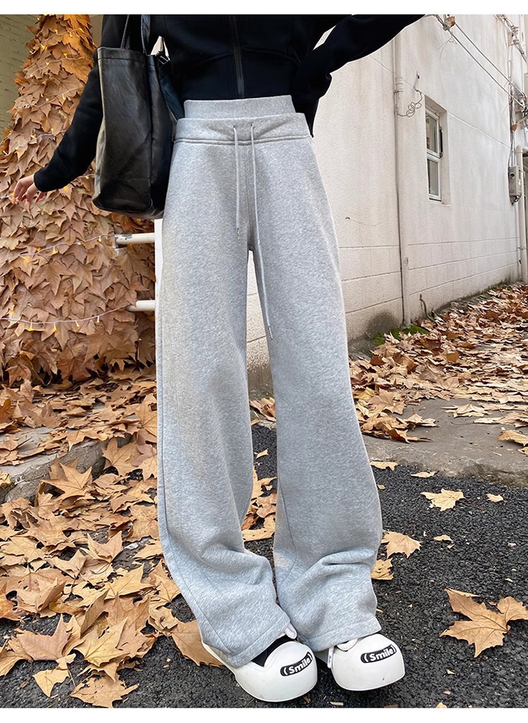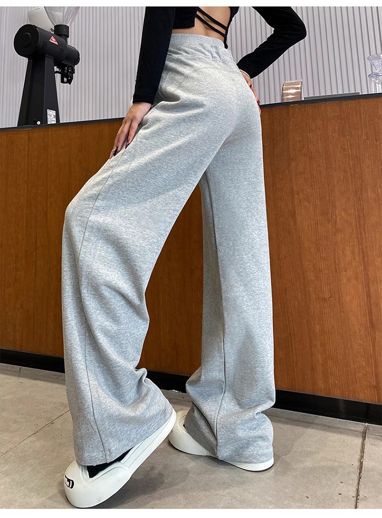 더블 허리 스포츠 바지 여자 2024 가을 겨울 새로운 한국 스타일 드로스트링 슬리밍 스트레이트 레그 캐주얼 트렌디 트레일 링 팬츠