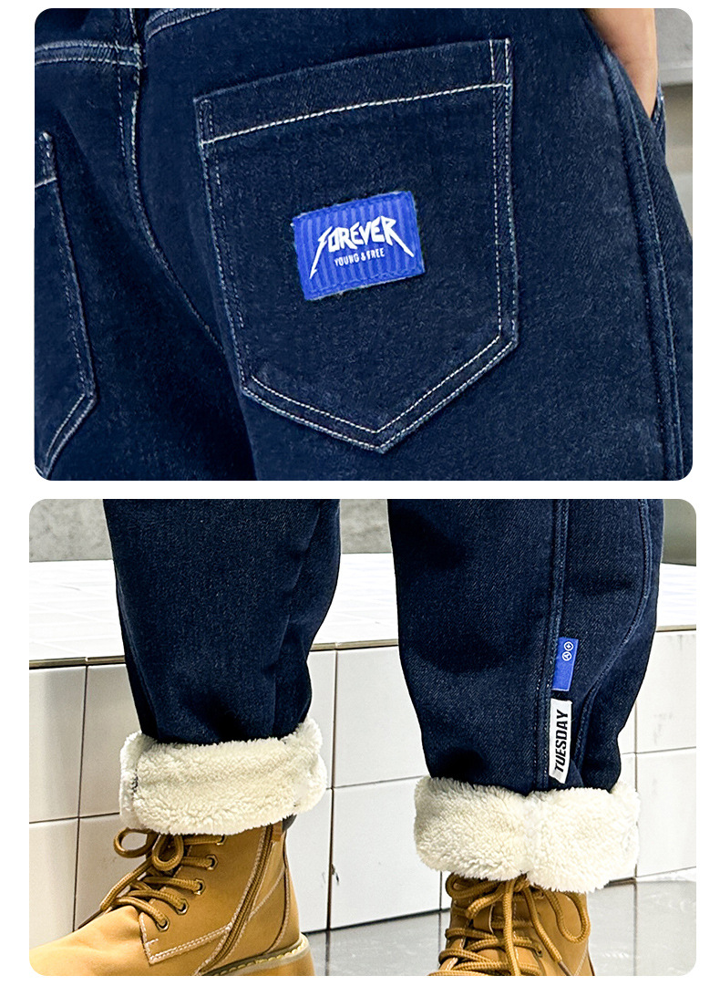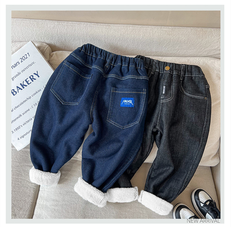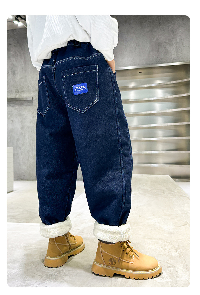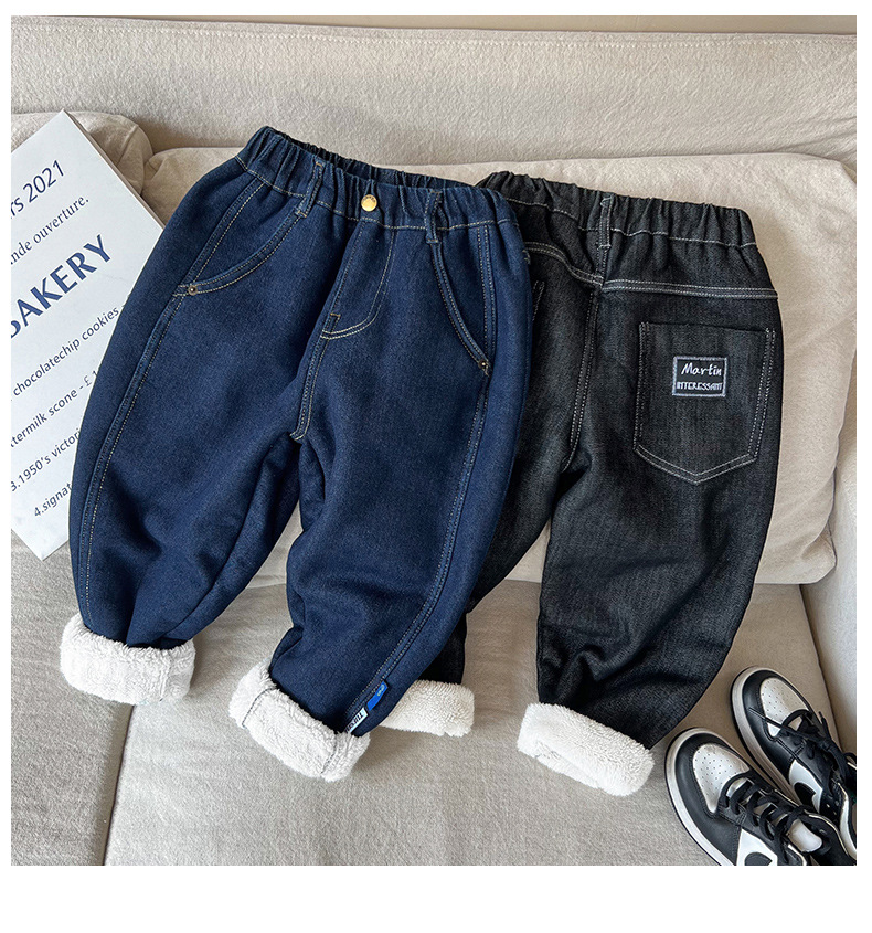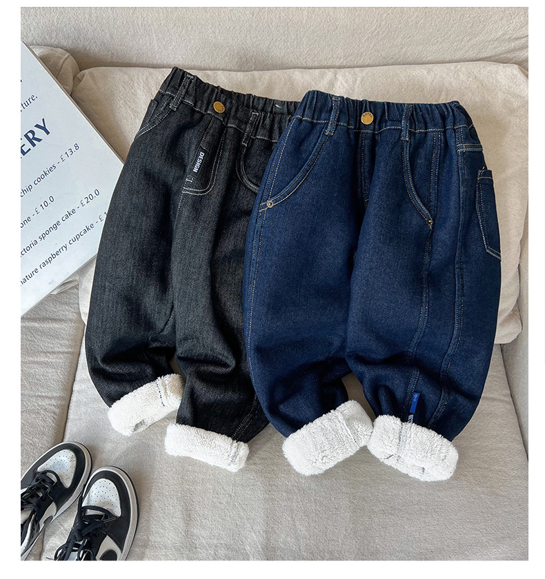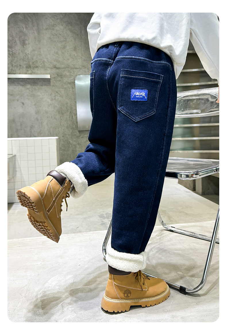 남아용 플리스 데님 팬츠 양털 겨울 바지 2025 신상 아동용 일체형 플리스 바지 두꺼운 면바지 트렌디스토어 가기