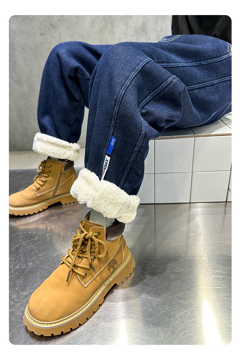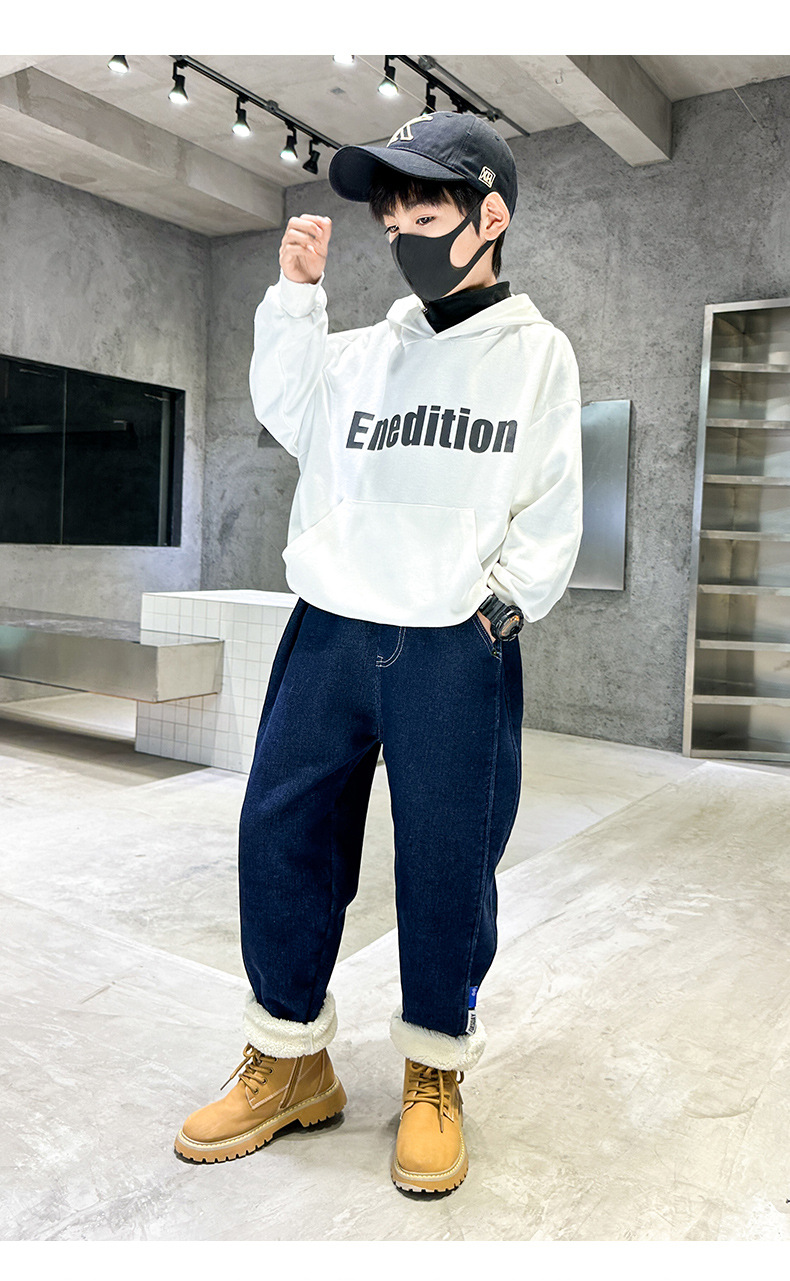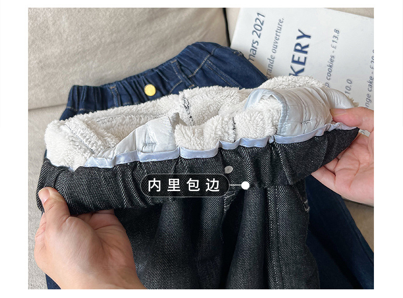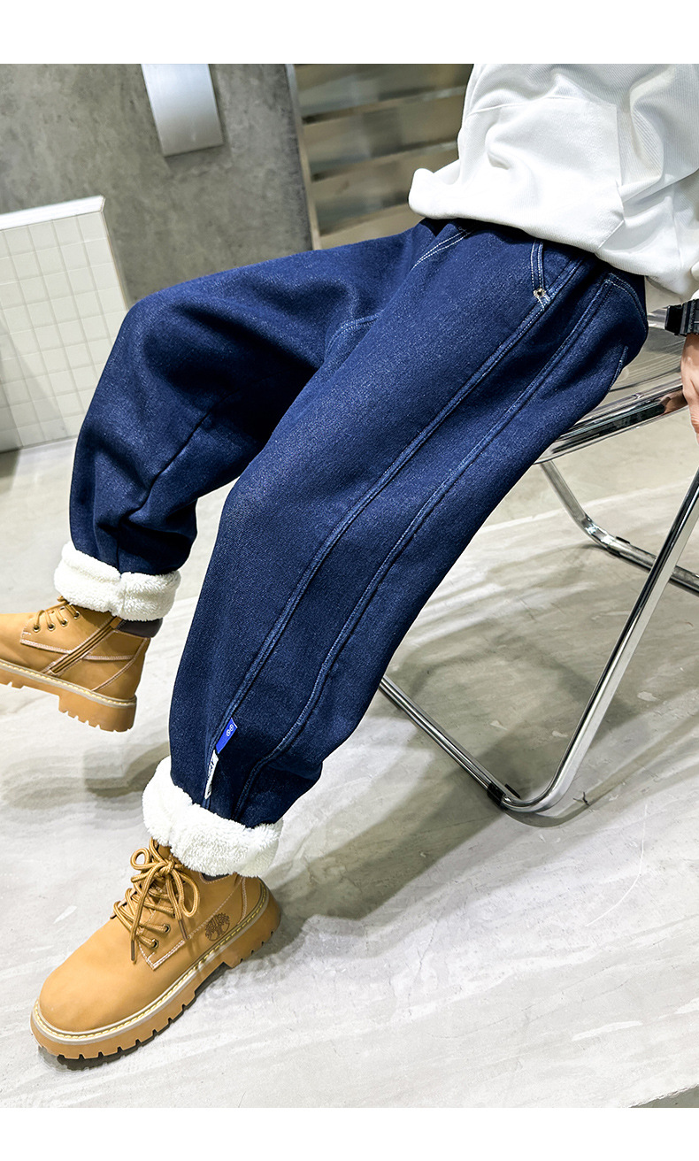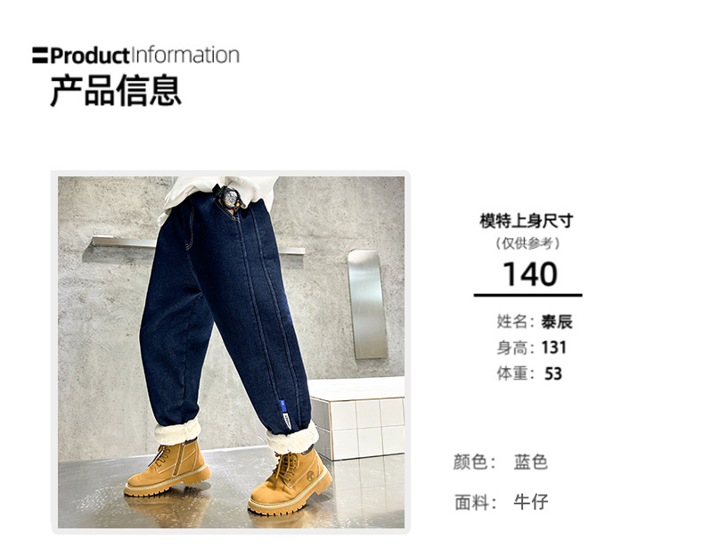 남아용 플리스 데님 팬츠 양털 겨울 바지 2025 신상 아동용 일체형 플리스 바지 두꺼운 면바지 트렌디스토어 가기