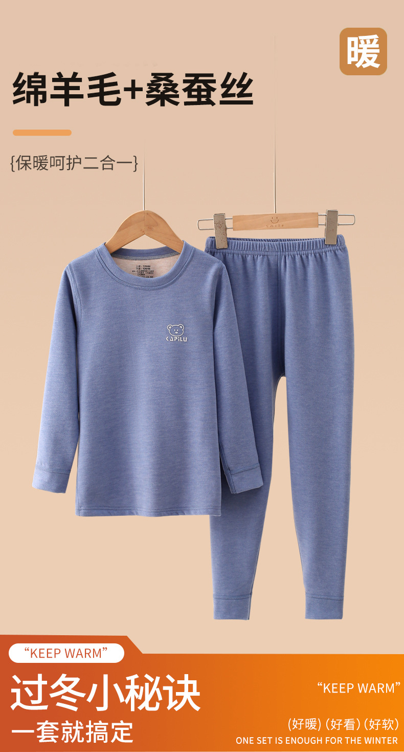 어린이 가을과 겨울 따뜻한 베이스 속옷 캐시미어 실크 가을 옷과 바지 세트 단색 홈 웨어스토어 가기