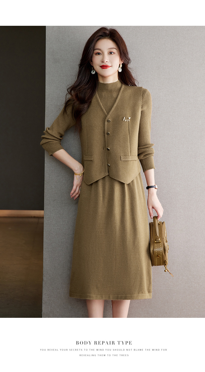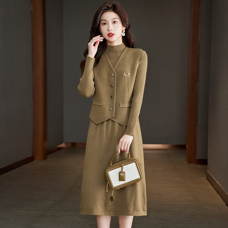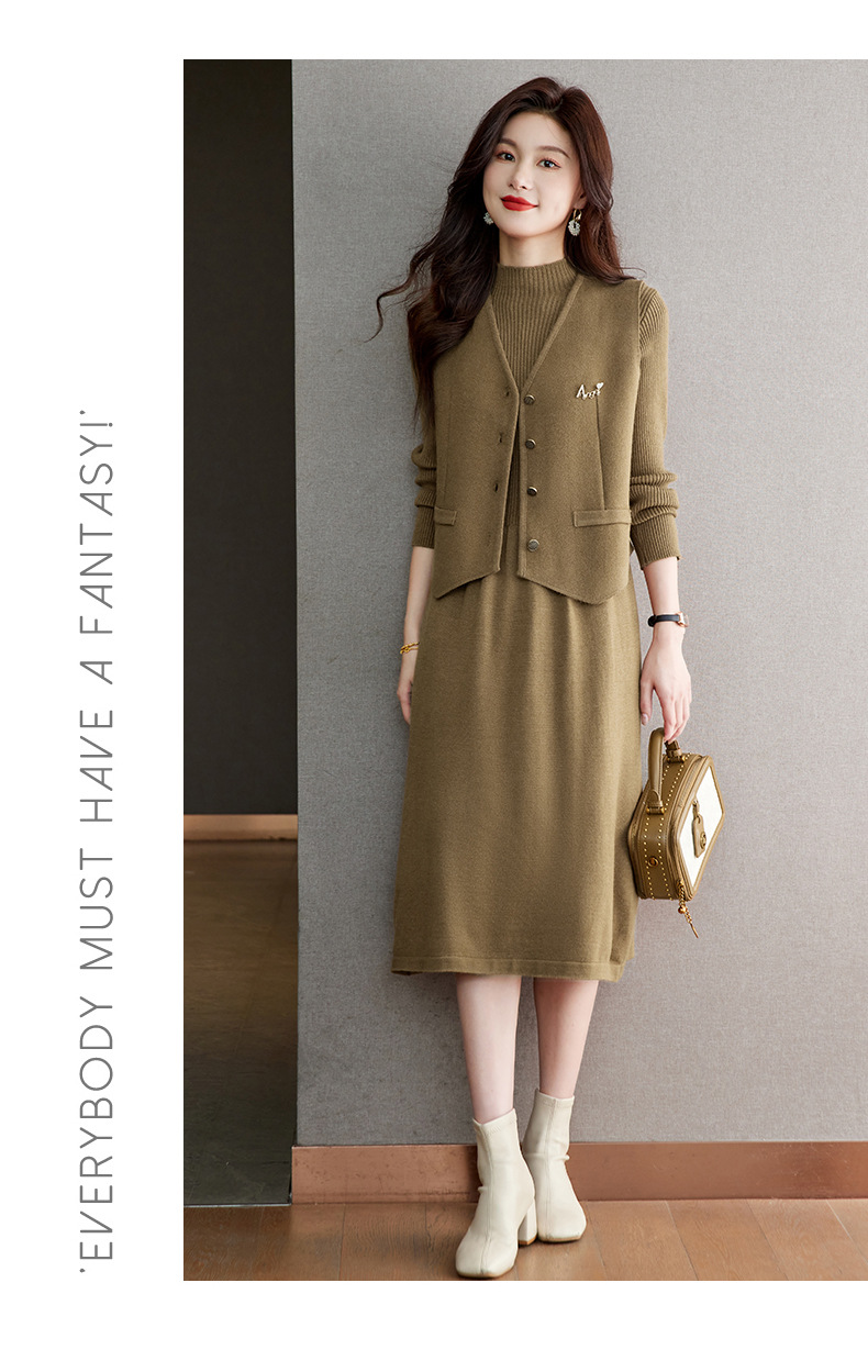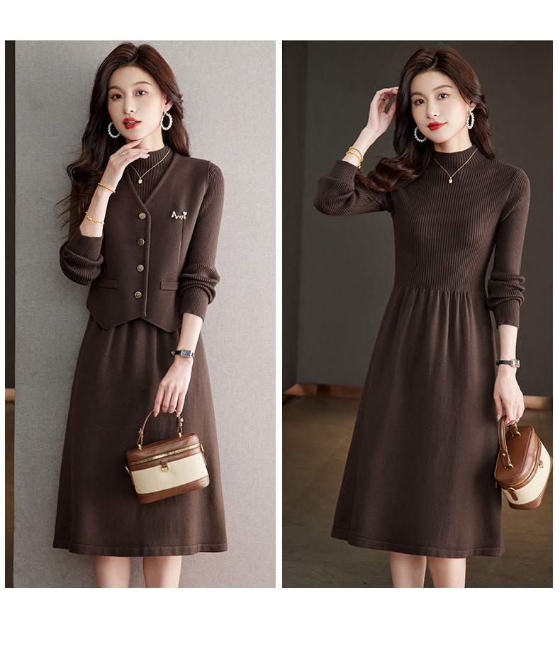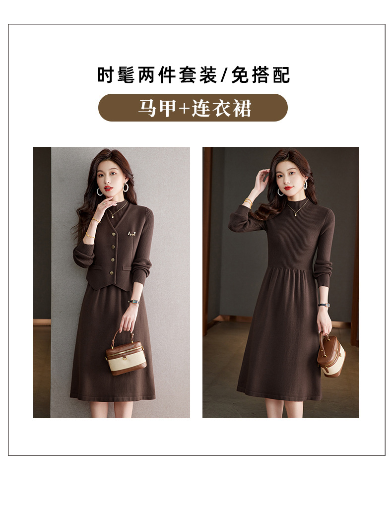 고급 니트 조끼 원피스 투피스 세트 여성용 가을 겨울 2025 신상 중간 길이 예쁜 스웨터 원피스스토어 가기