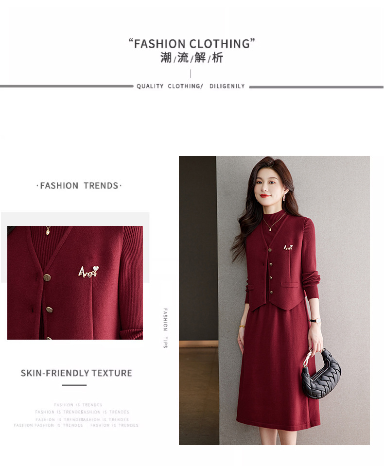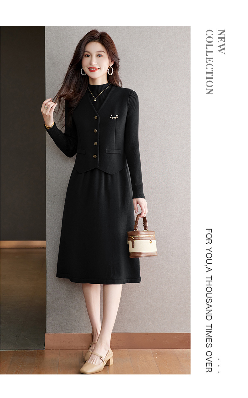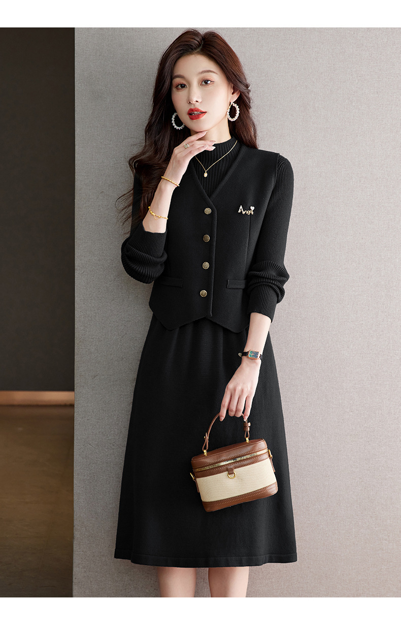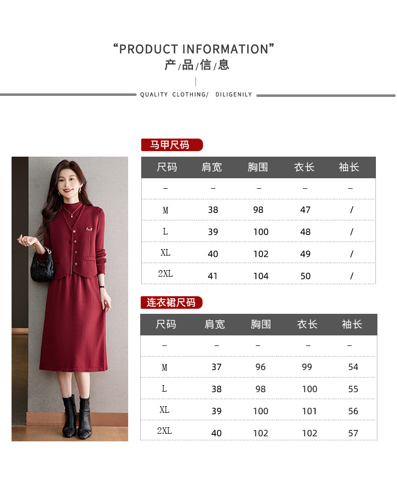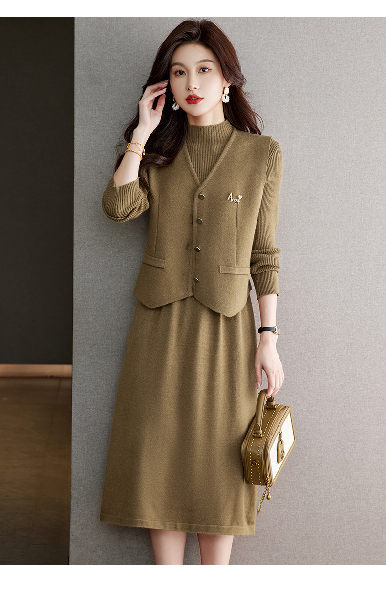 고급 니트 조끼 원피스 투피스 세트 여성용 가을 겨울 2025 신상 중간 길이 예쁜 스웨터 원피스스토어 가기