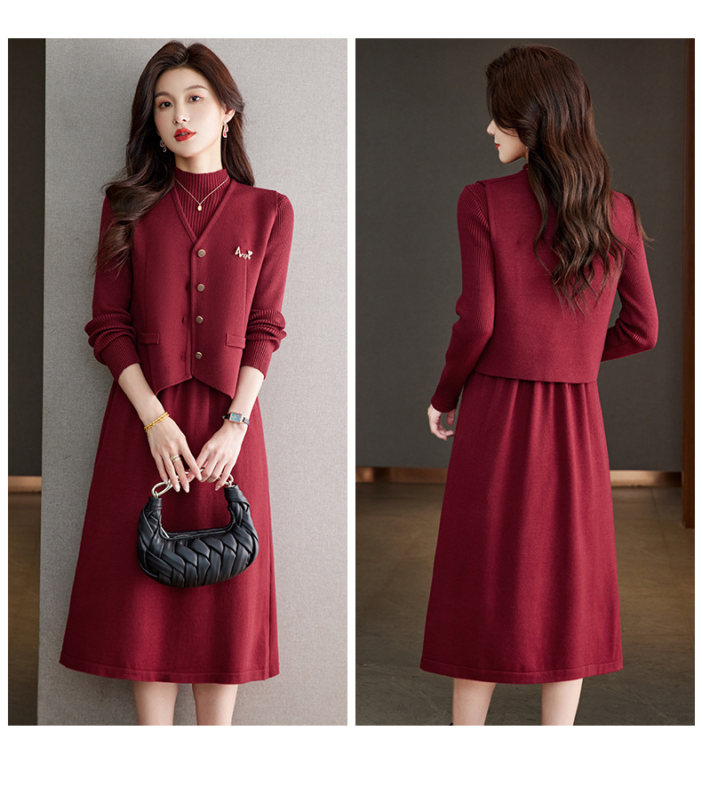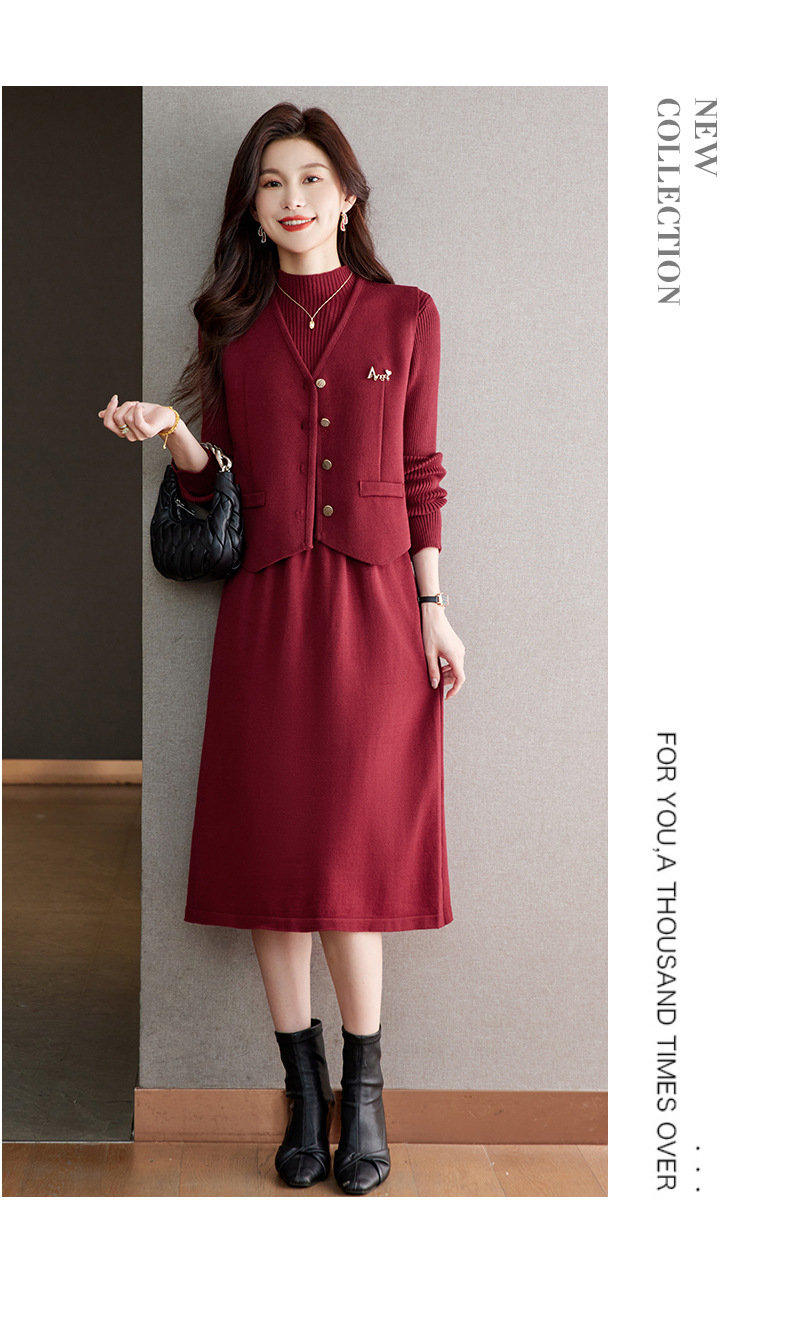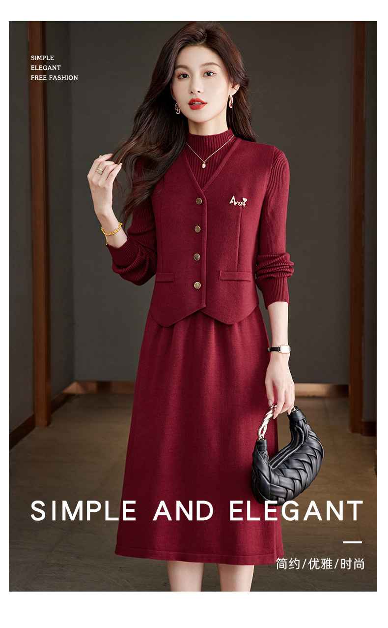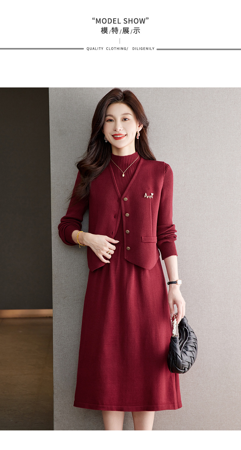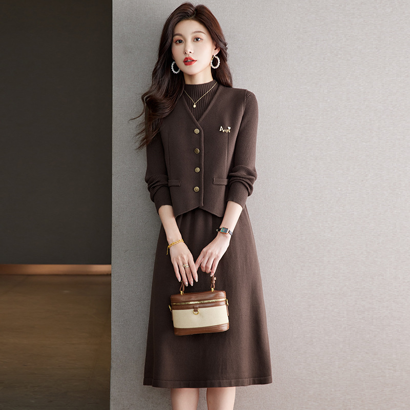 고급 니트 조끼 원피스 투피스 세트 여성용 가을 겨울 2025 신상 중간 길이 예쁜 스웨터 원피스스토어 가기
