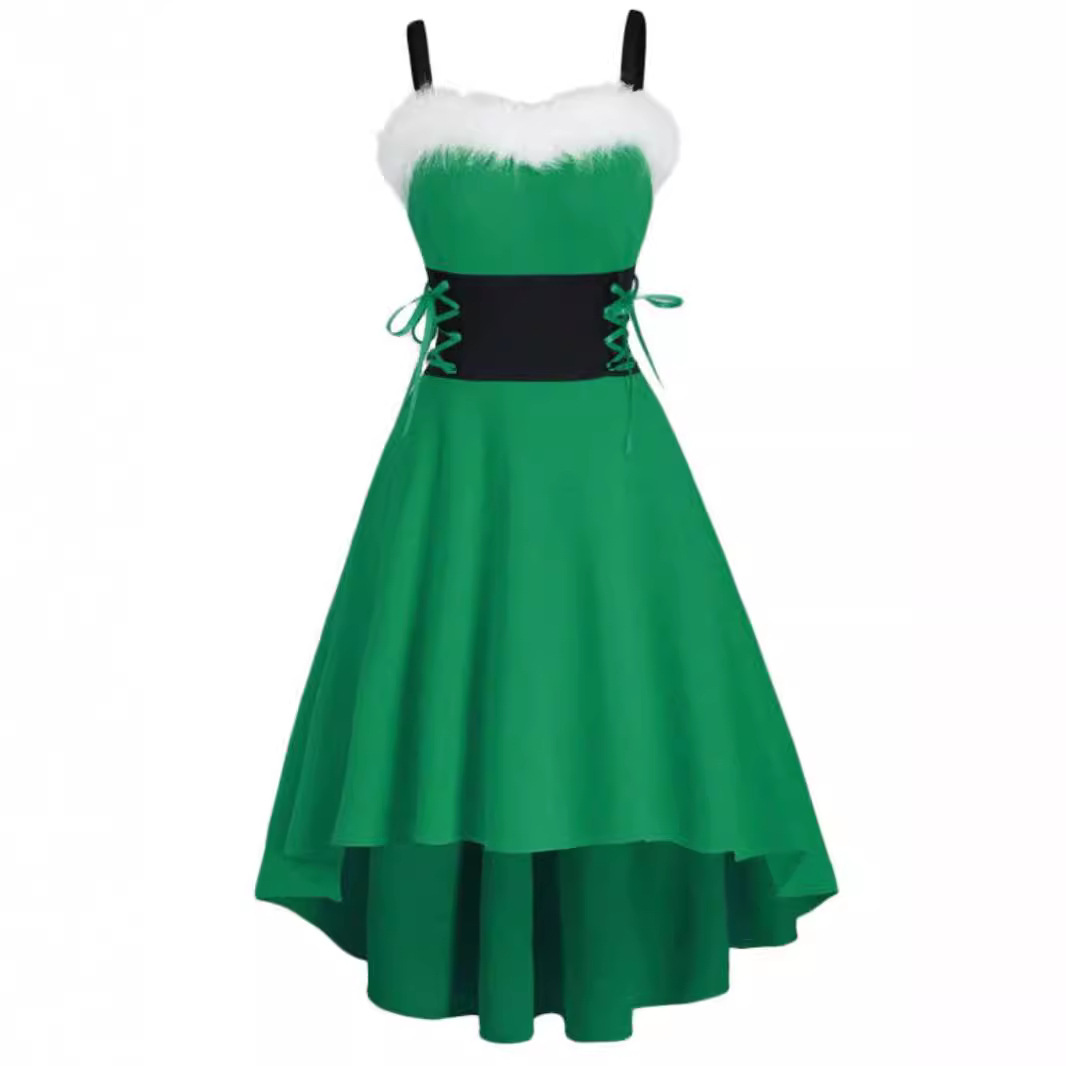 국경 간 대외 무역 2024 새로운 크리스마스 파티 토끼 모피 칼라 어깨 활 끈 원피스