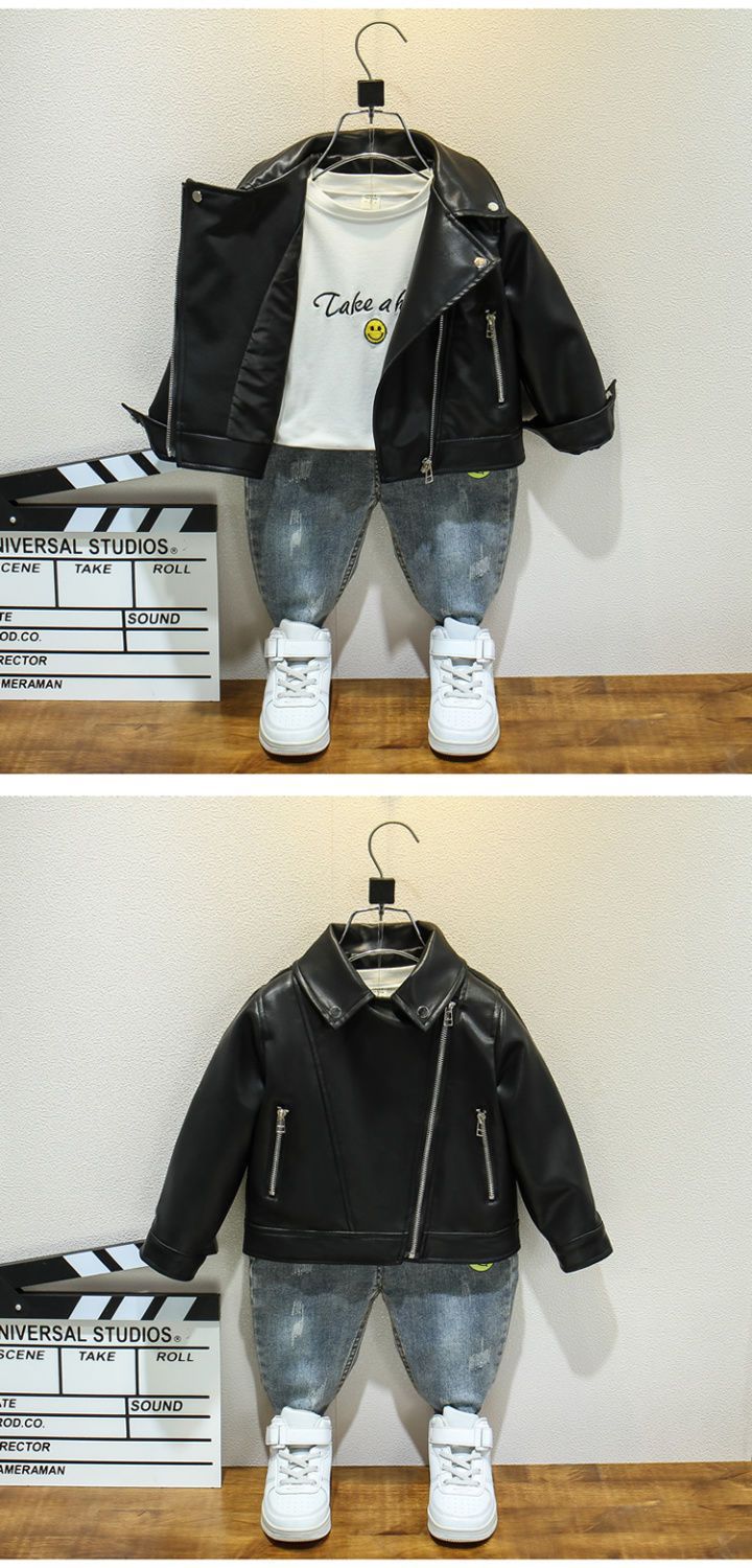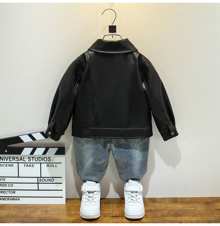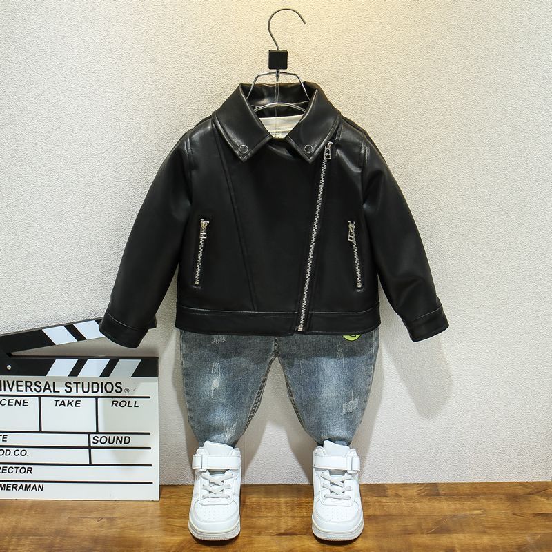 소년 소녀 봄과 가을 패션 가죽 옷 어린이 퍼지 가죽 유행 남성 아기 잘 생긴 작은 재킷 외부 외국 스타일 트렌디 착용스토어 가기