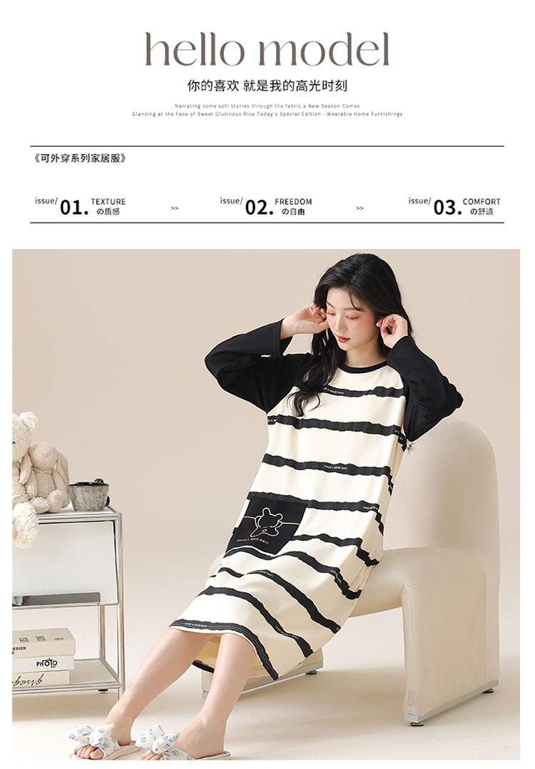 여성 잠옷 봄과 가을 긴팔 잠옷 순면 초가을 시대 감소 여성 5XL 플러스 사이즈 캐주얼 편안한 홈 옷스토어 가기
