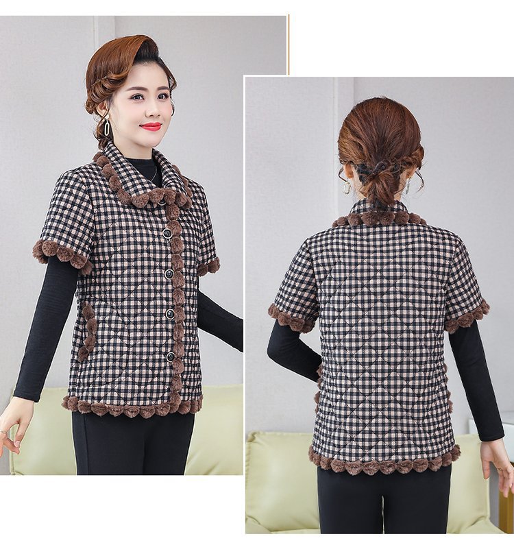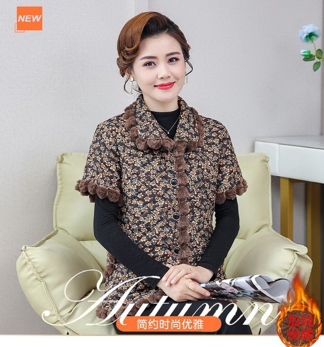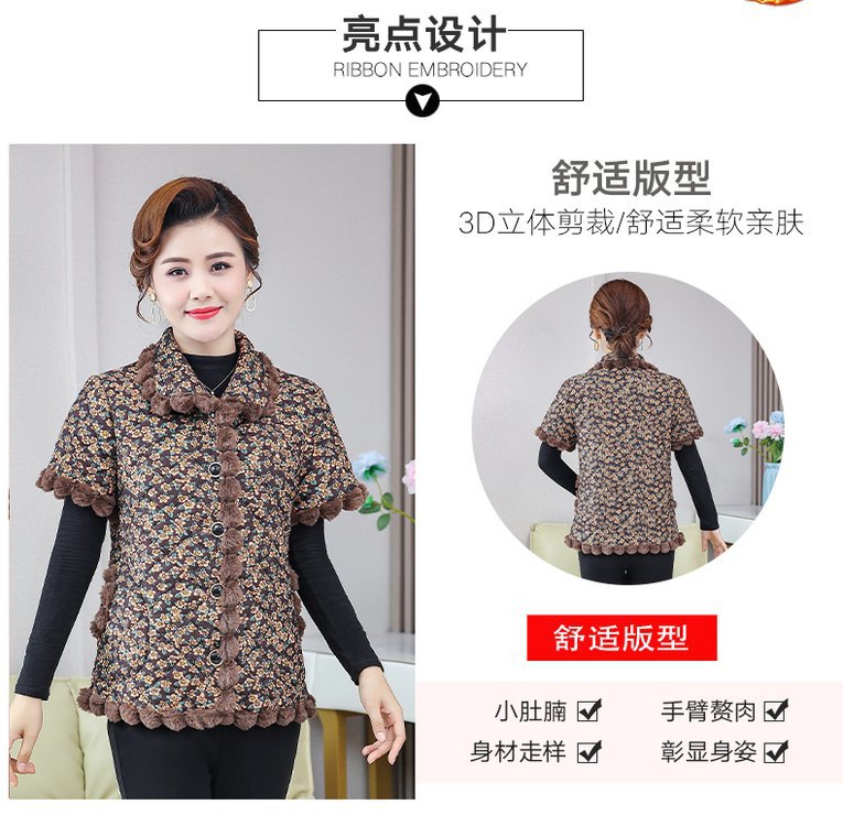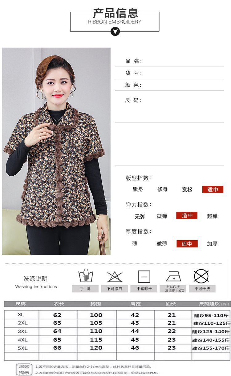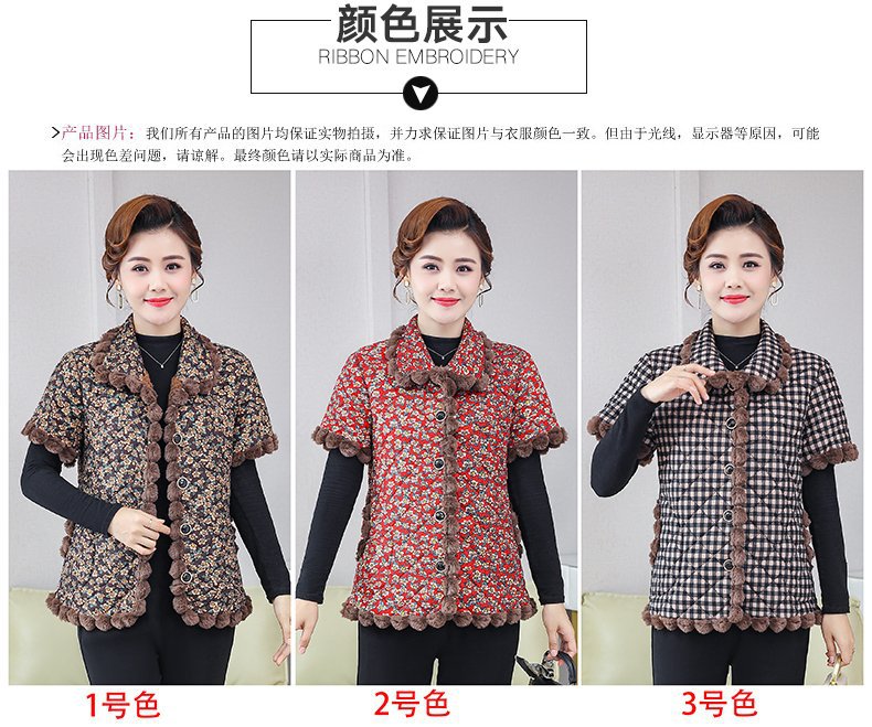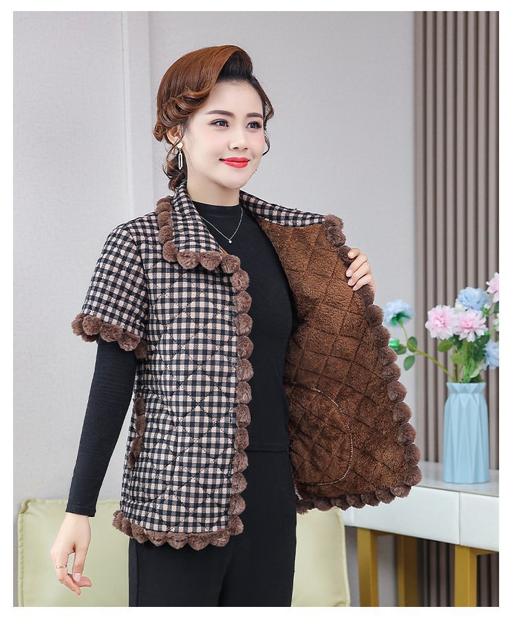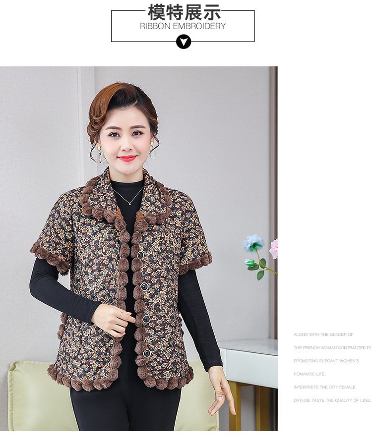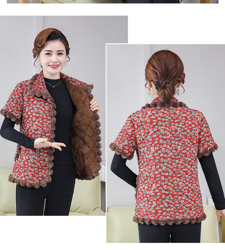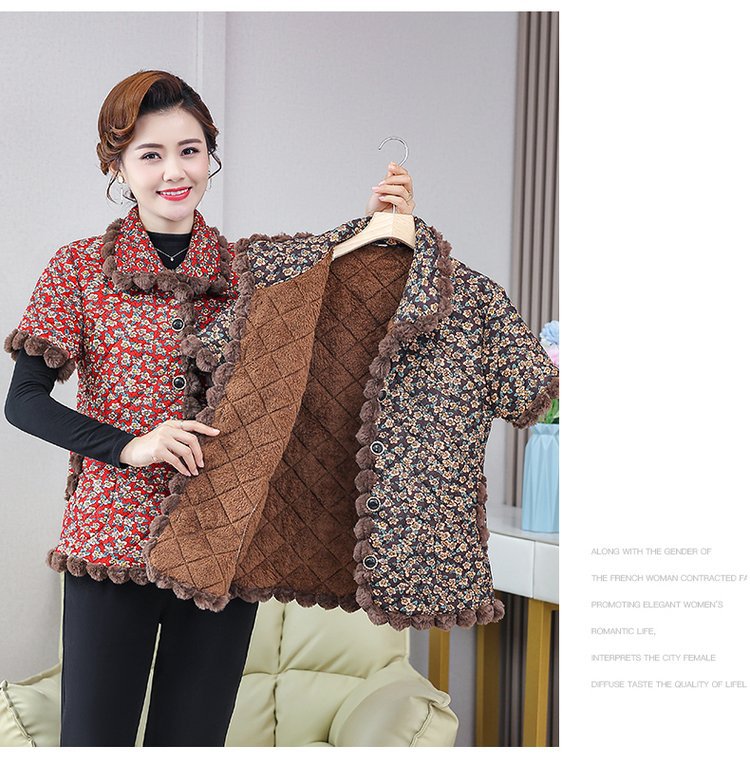 중년 및 노인 여성 조끼 기모 조끼 어머니 반팔 말 시즌 가을과 겨울 할머니 플러스 사이즈 따뜻한 양복 조끼