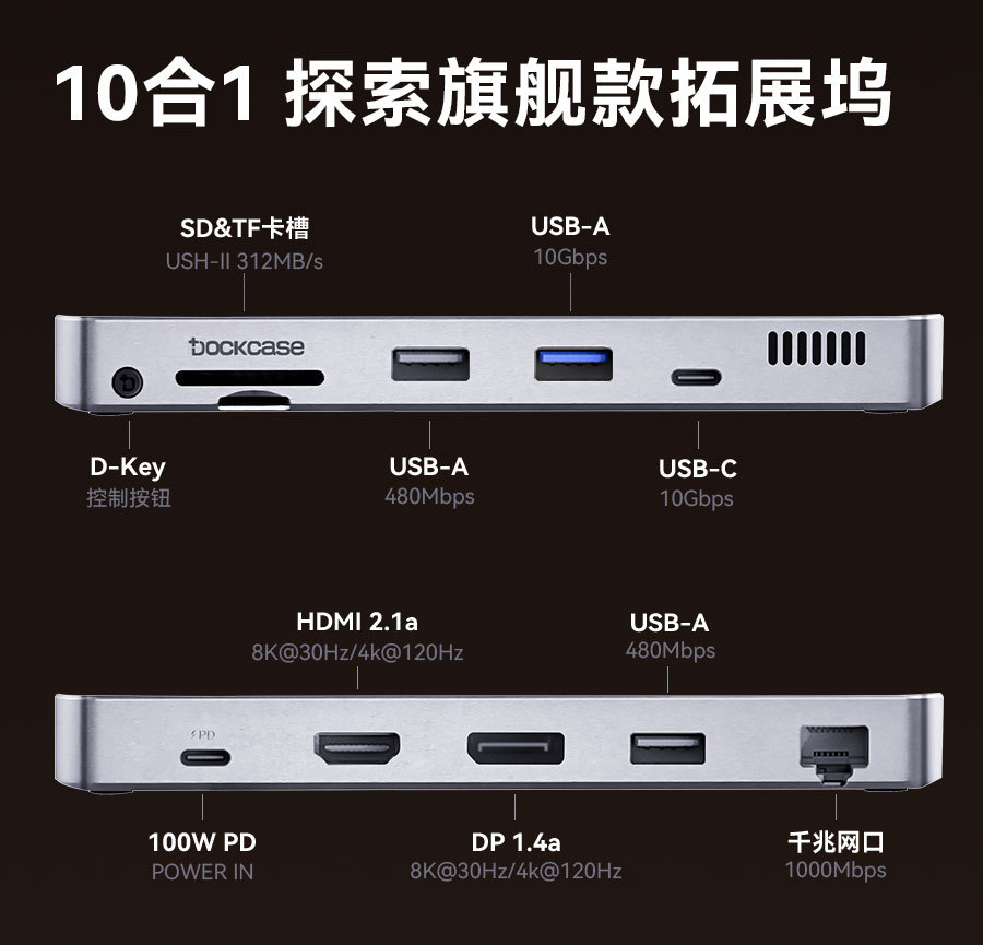 • [딥 스페이스 블랙] 10-in-1 도킹 스테이션(DP+HDMI)