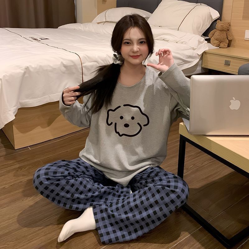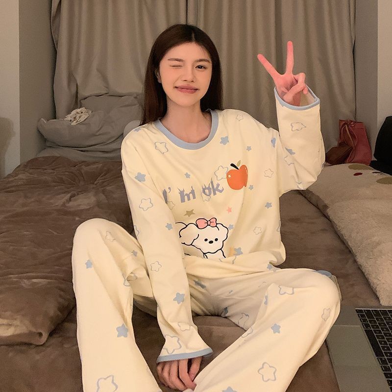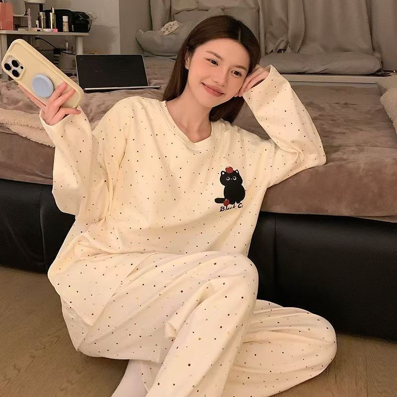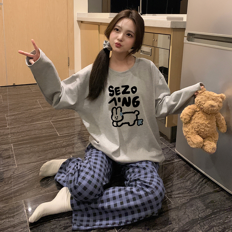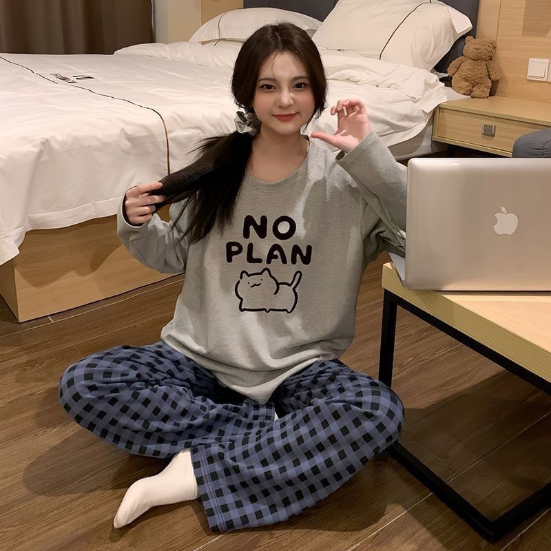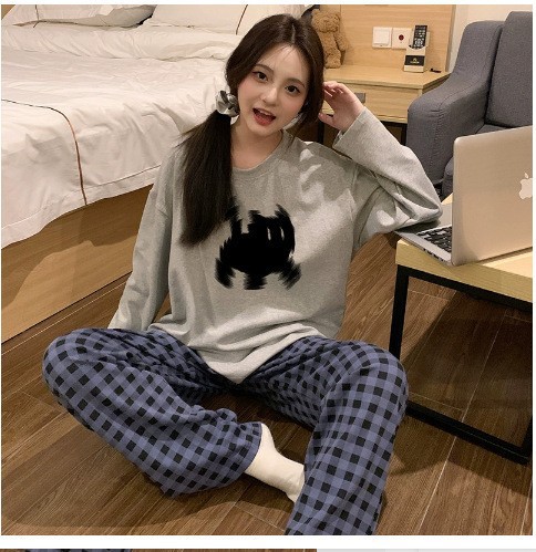 새로운 잠옷 여성의 봄과 가을 긴팔 가을 인터넷-유명한 외부가 가을과 겨울 집 옷을 입고 세트 머리를위한 2 피스 세트