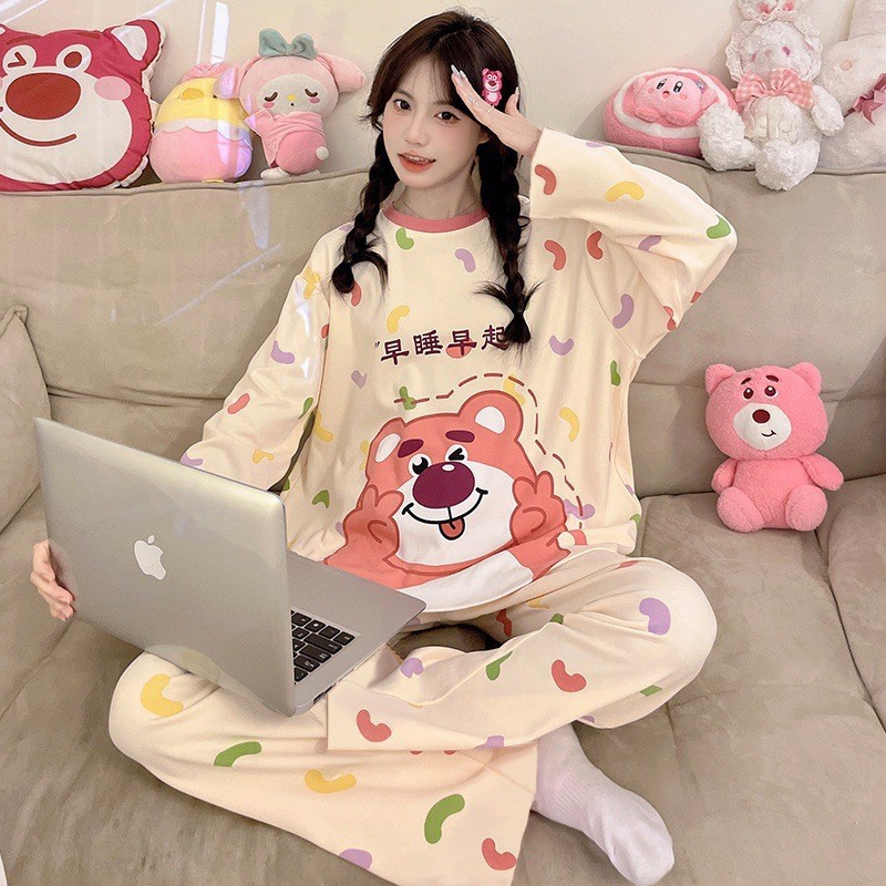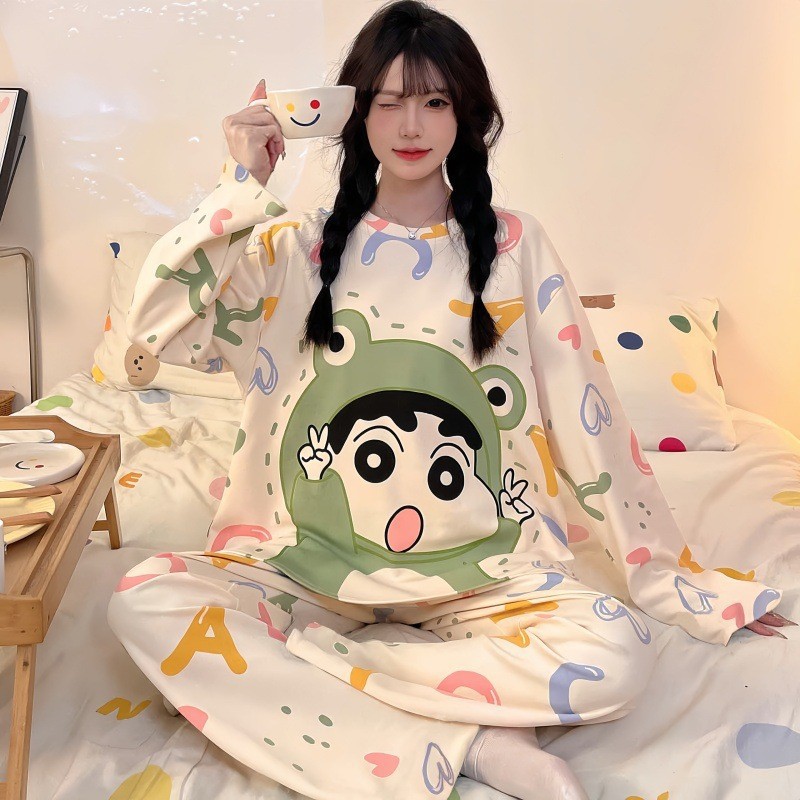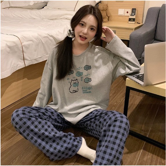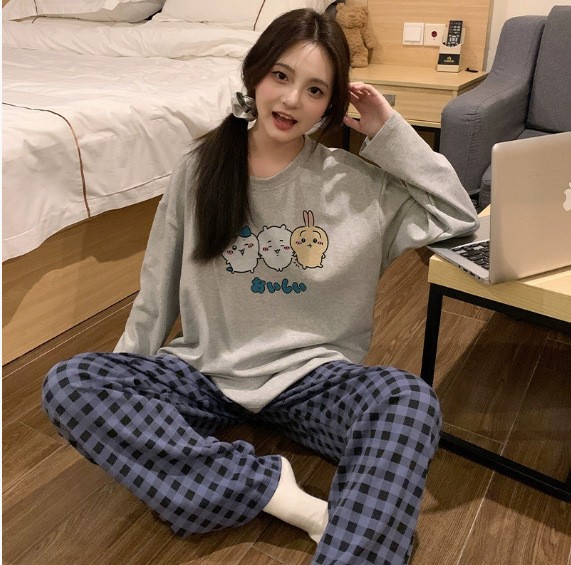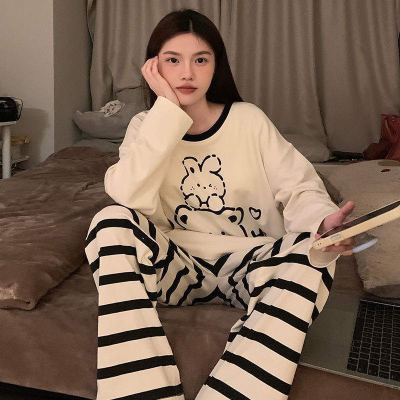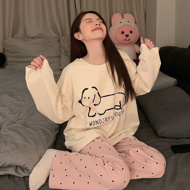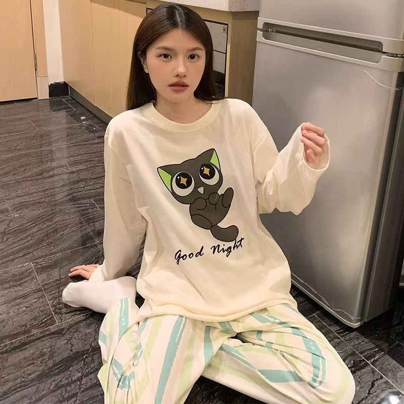 새로운 잠옷 여성의 봄과 가을 긴팔 가을 인터넷-유명한 외부가 가을과 겨울 집 옷을 입고 세트 머리를위한 2 피스 세트