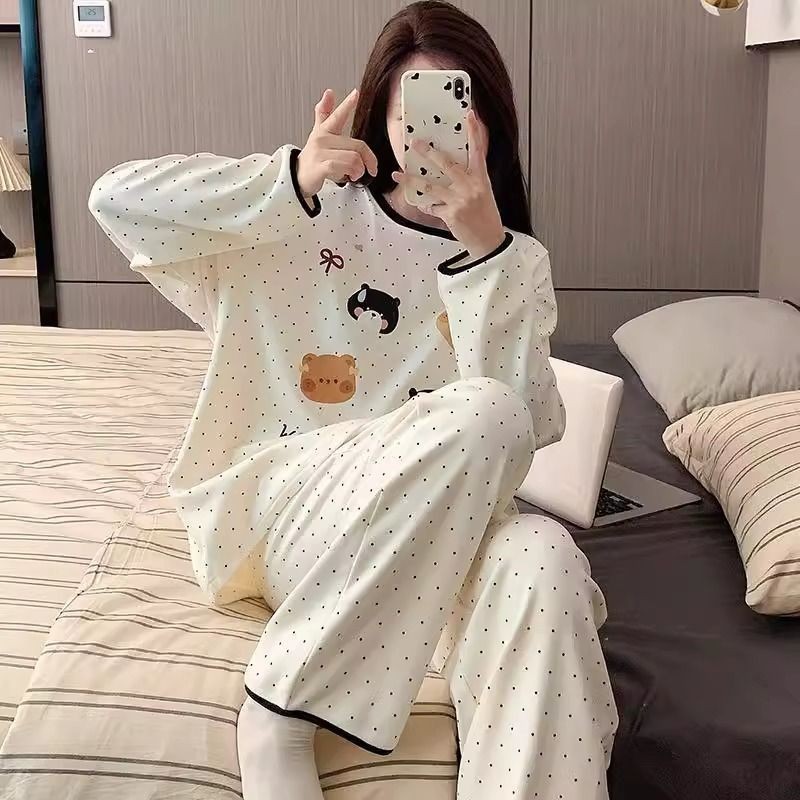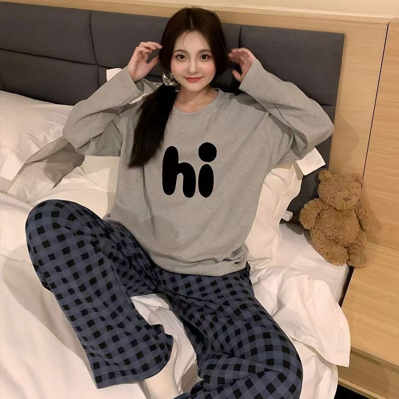 새로운 잠옷 여성의 봄과 가을 긴팔 가을 인터넷-유명한 외부가 가을과 겨울 집 옷을 입고 세트 머리를위한 2 피스 세트스토어 가기
