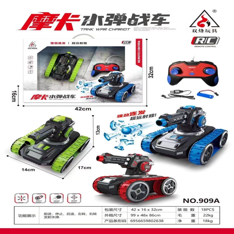 Shuangfeng 원격 제어 자동차 909A 모차 물 폭탄 전차 크롤러가 강한 파열 어린이 장난감 생일 선물을 운전
