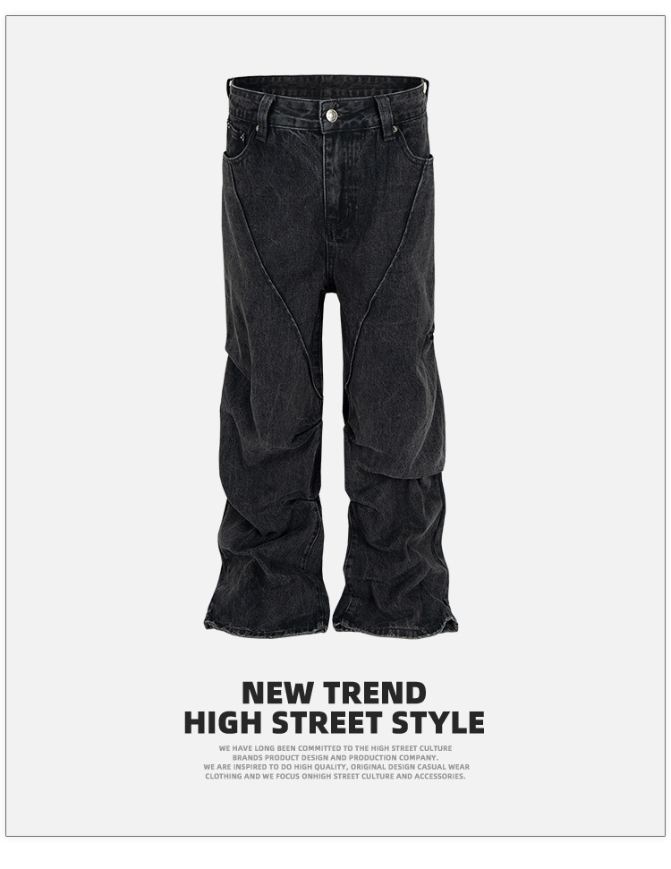 MIJKO 남성복 여성용 하이 스트리트 해체 주름 꼬인 디자인 청바지 남성과 여성의 와이드 레그 멀티 사이즈 트렌디 팬츠