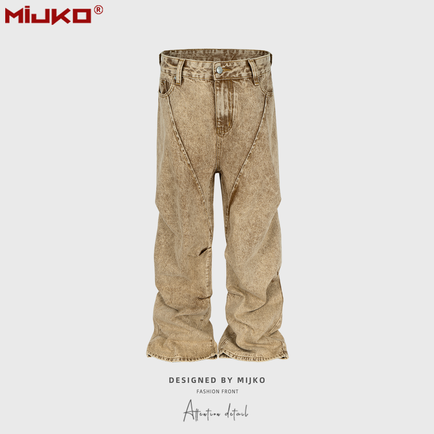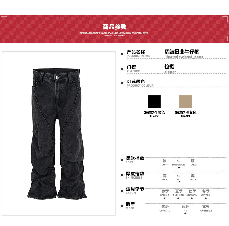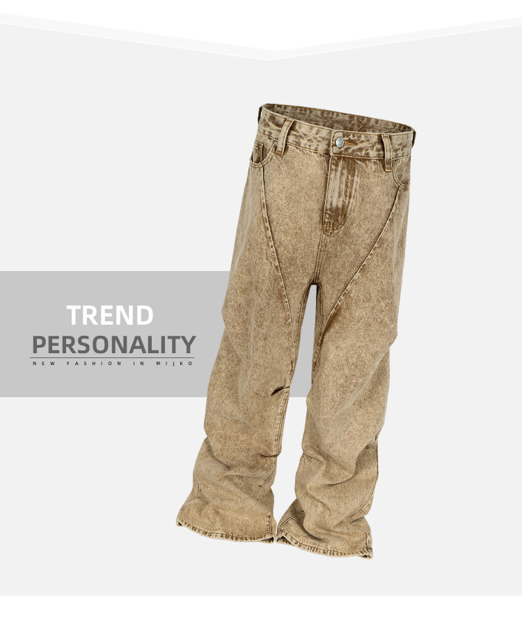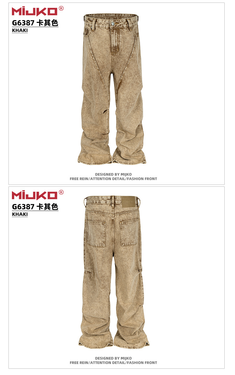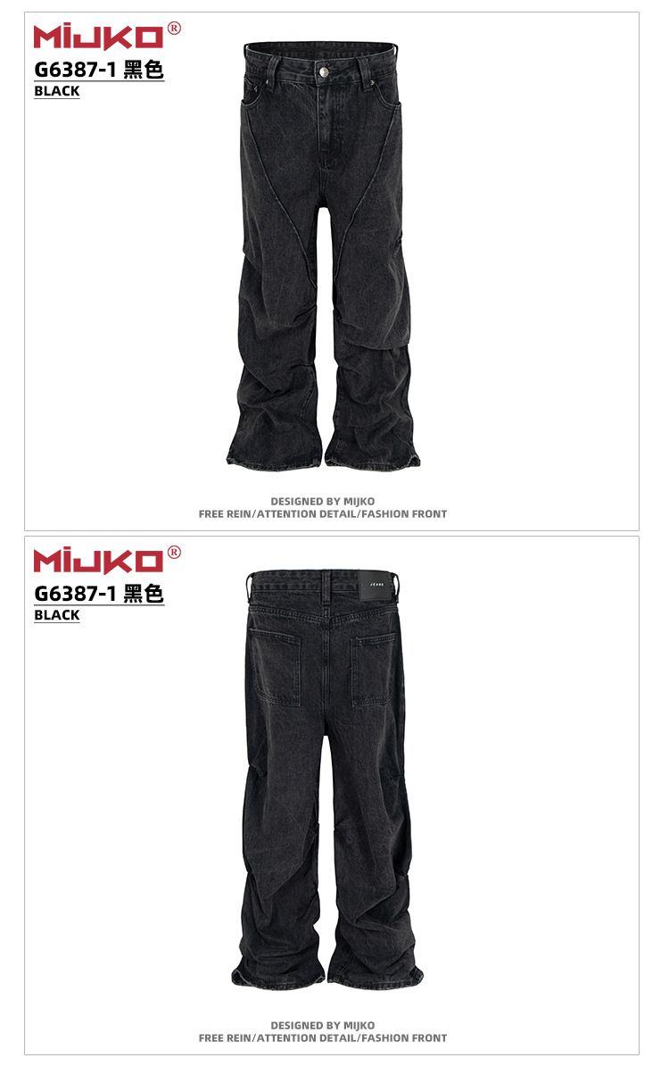 MIJKO 남성복 여성용 하이 스트리트 해체 주름 꼬인 디자인 청바지 남성과 여성의 와이드 레그 멀티 사이즈 트렌디 팬츠스토어 가기