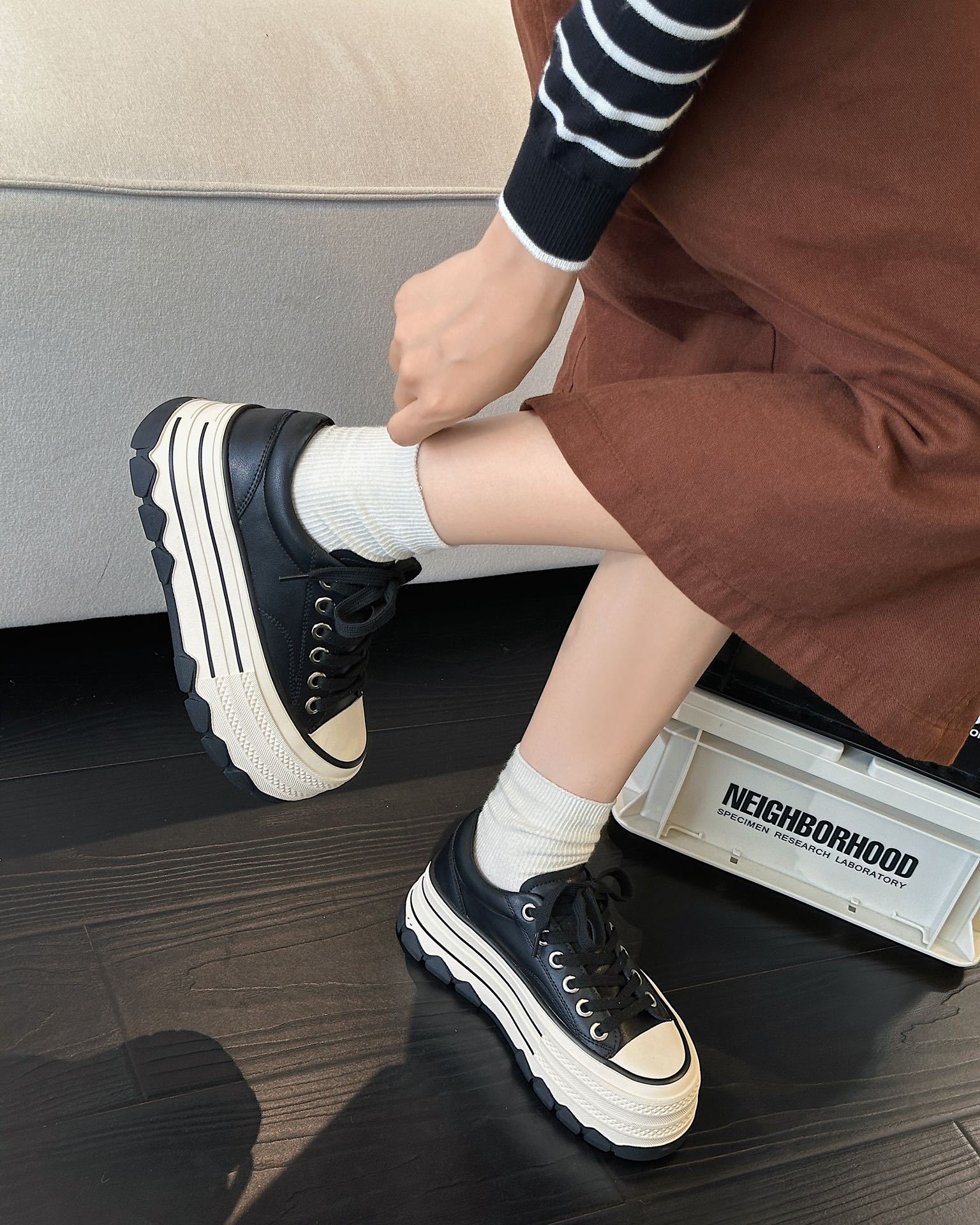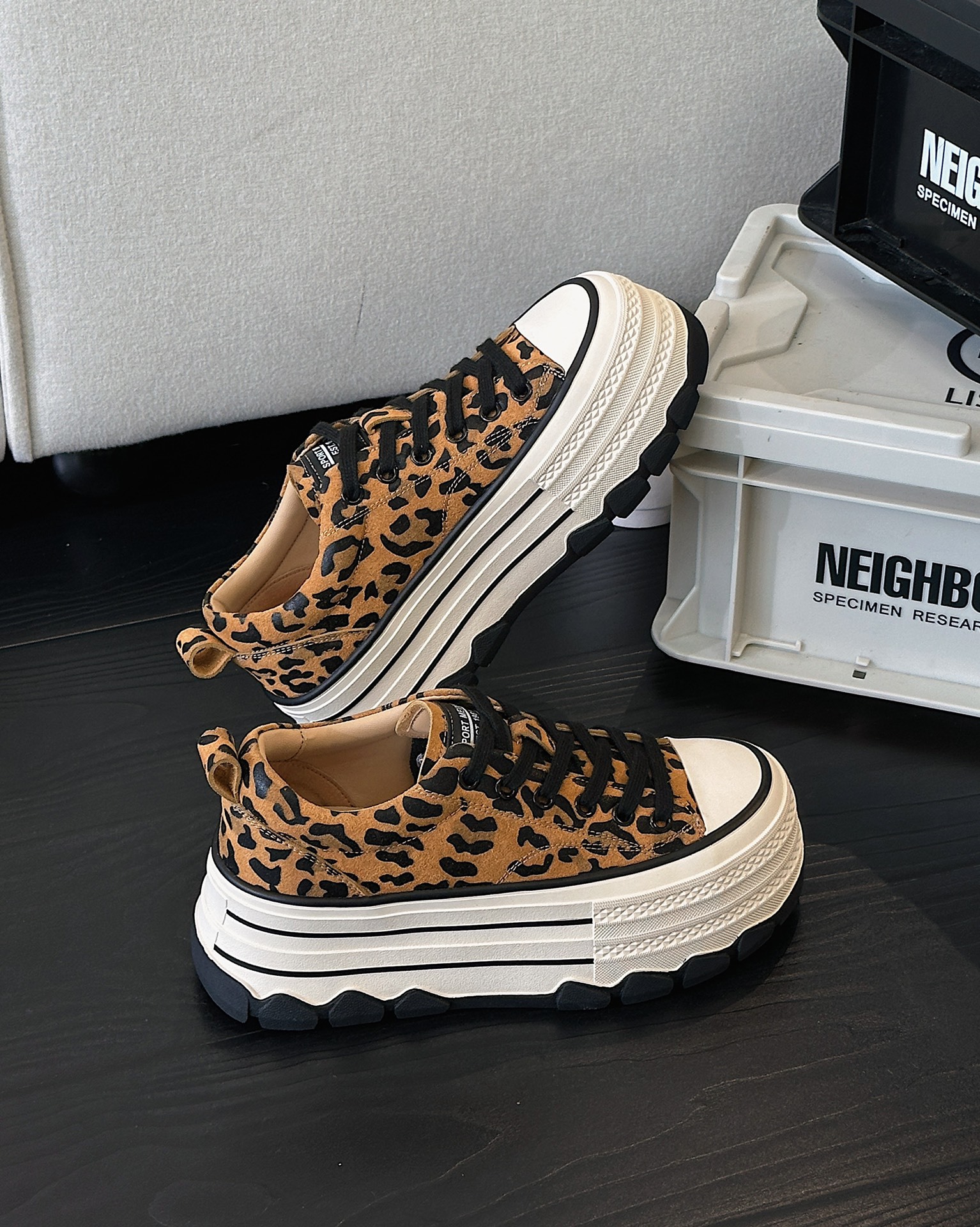플랫폼 하단 레오파드 무늬 캐주얼 스니커즈 여성의 2024 가을 두꺼운 밑창 대학 스타일 프로스트 정품 가죽 높이 증가 작은 흰색 신발스토어 가기