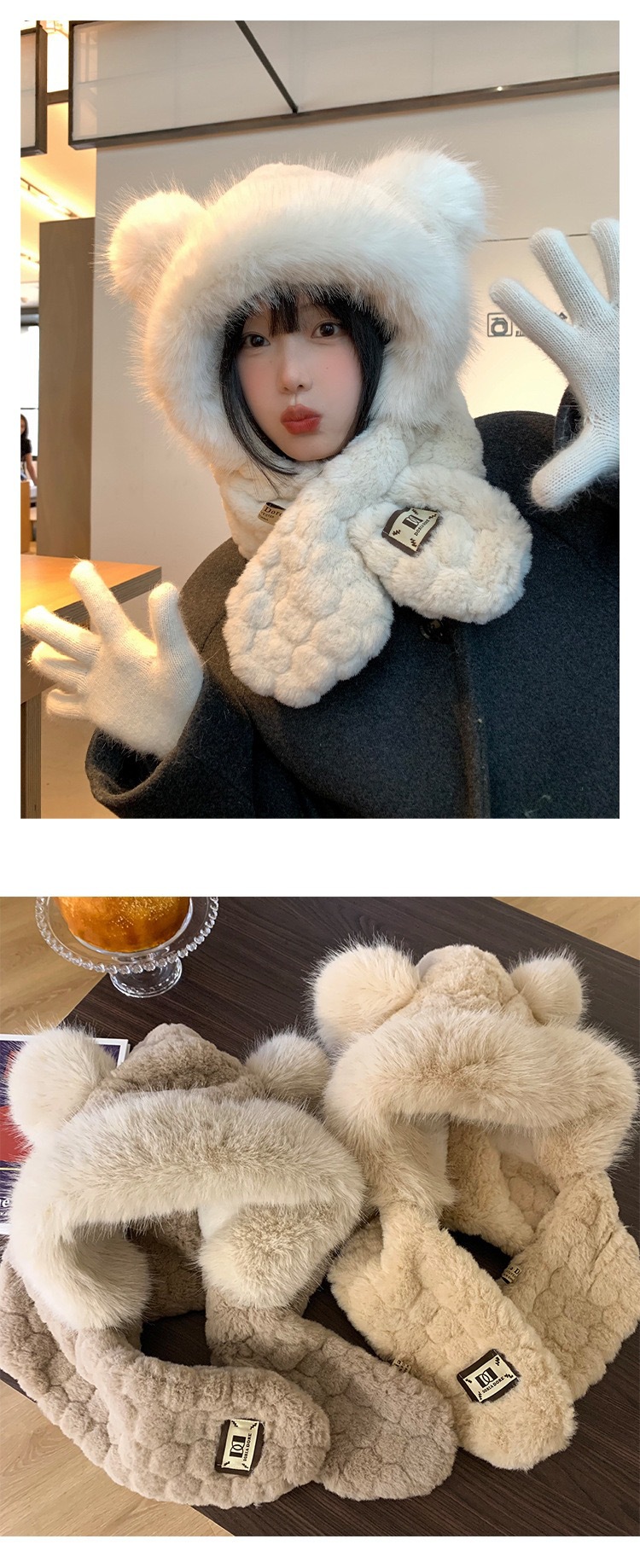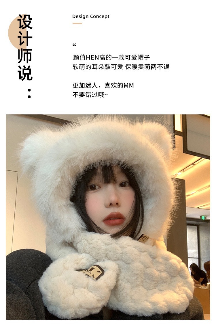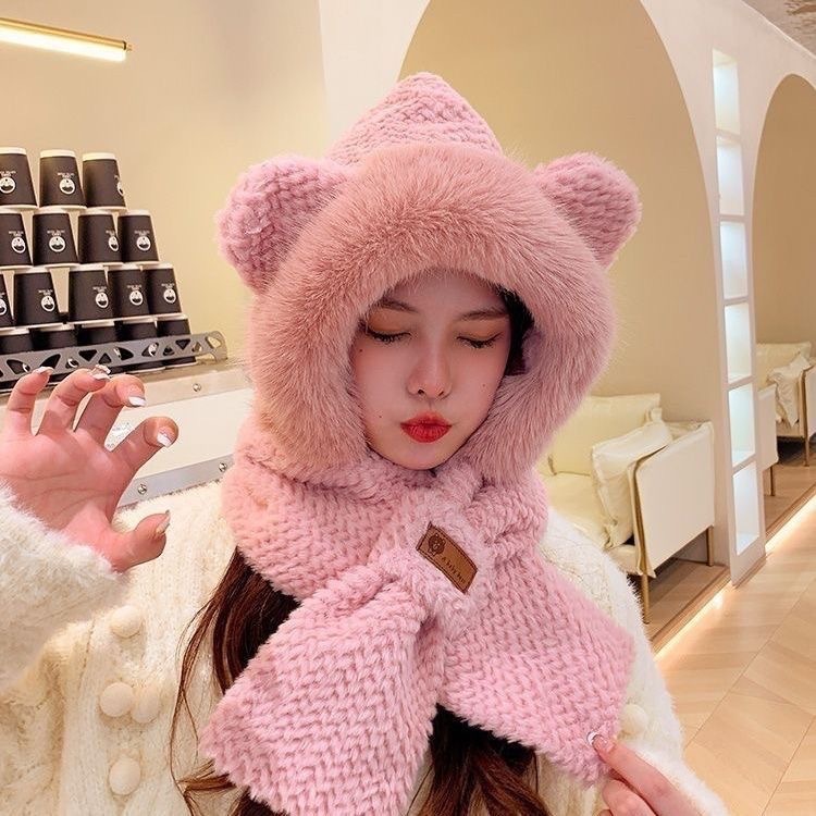 곰 봉제 모자 스카프 올인원 여성 가을과 겨울 한국 스타일 얼굴 작은 방한 따뜻한 귀 보호 레이 펑 모자