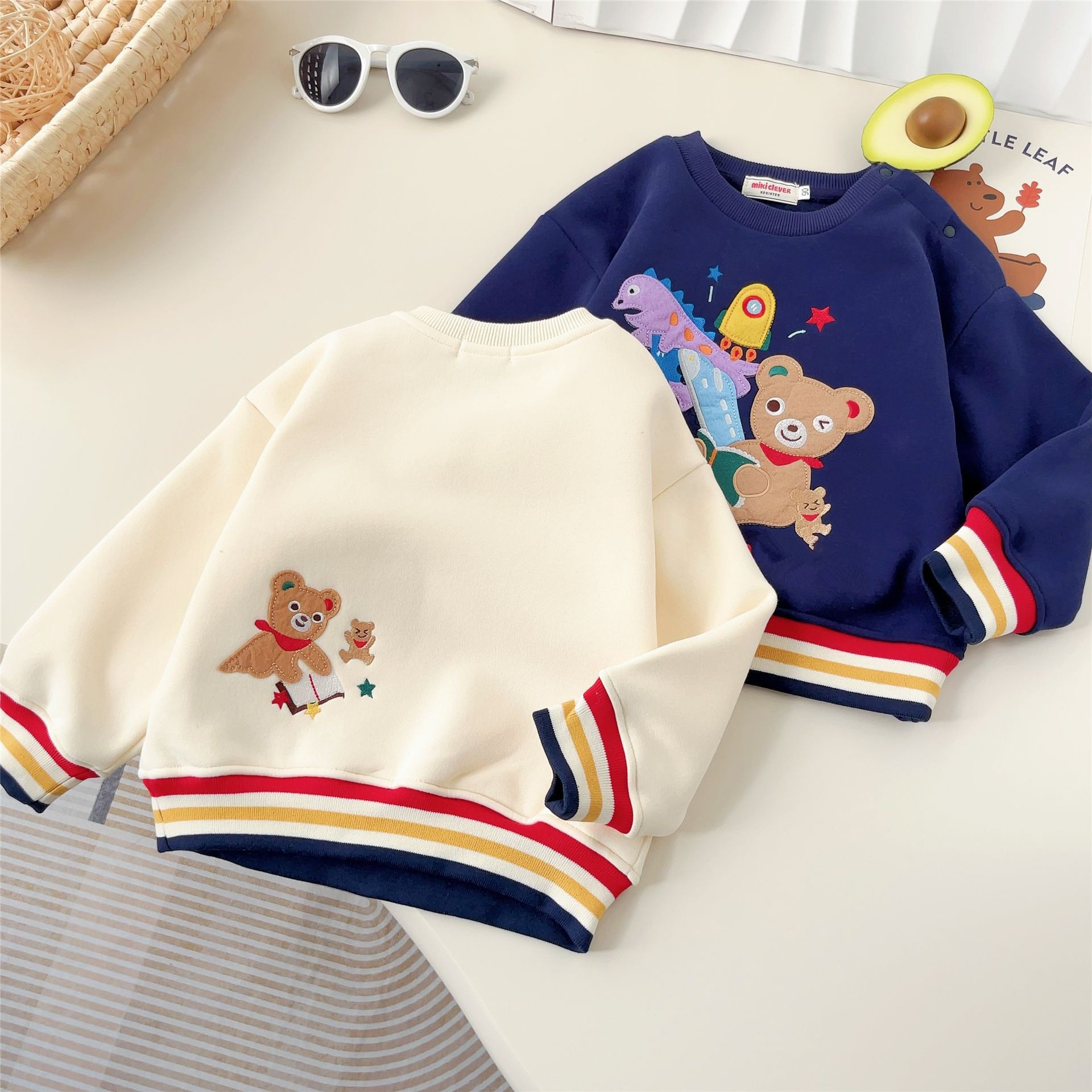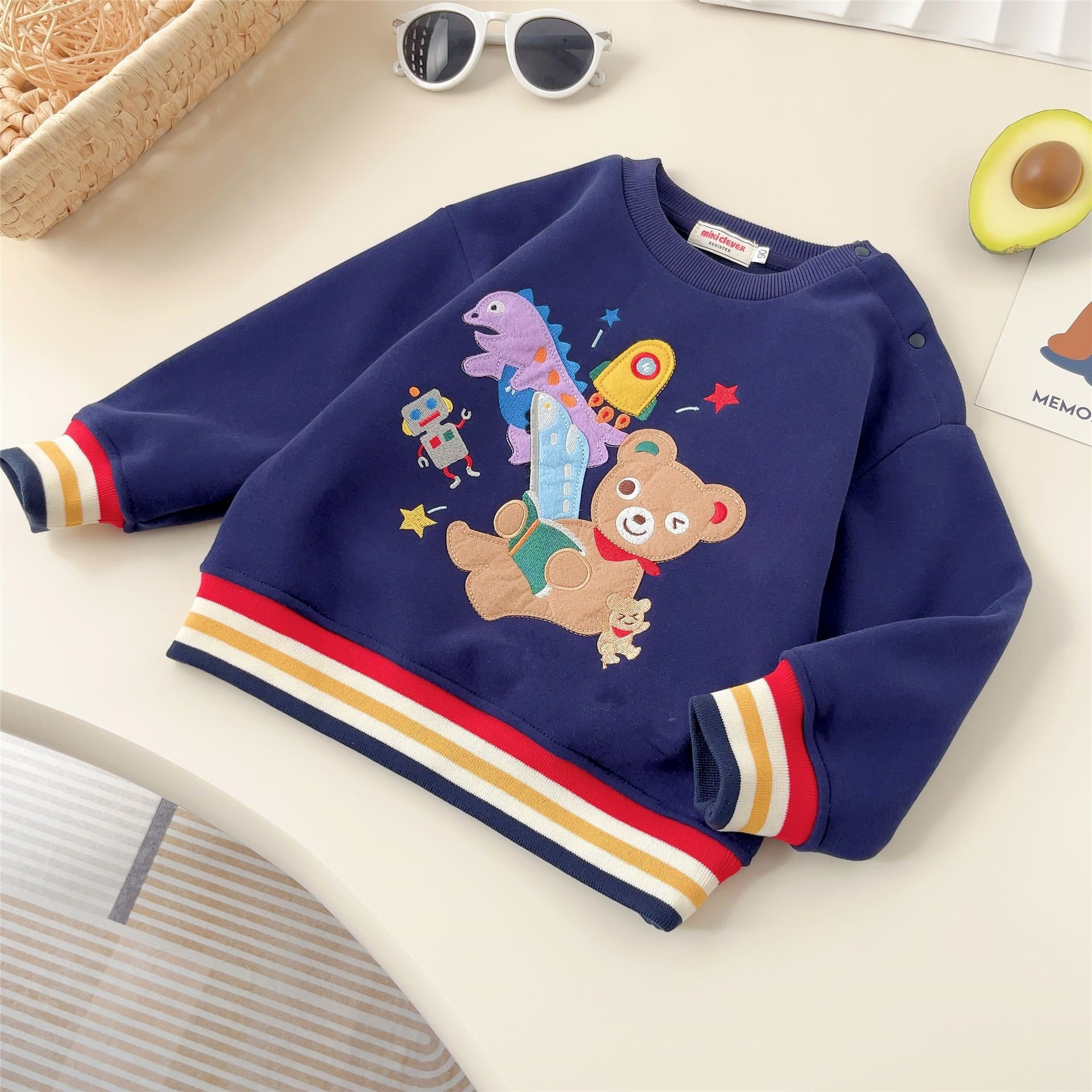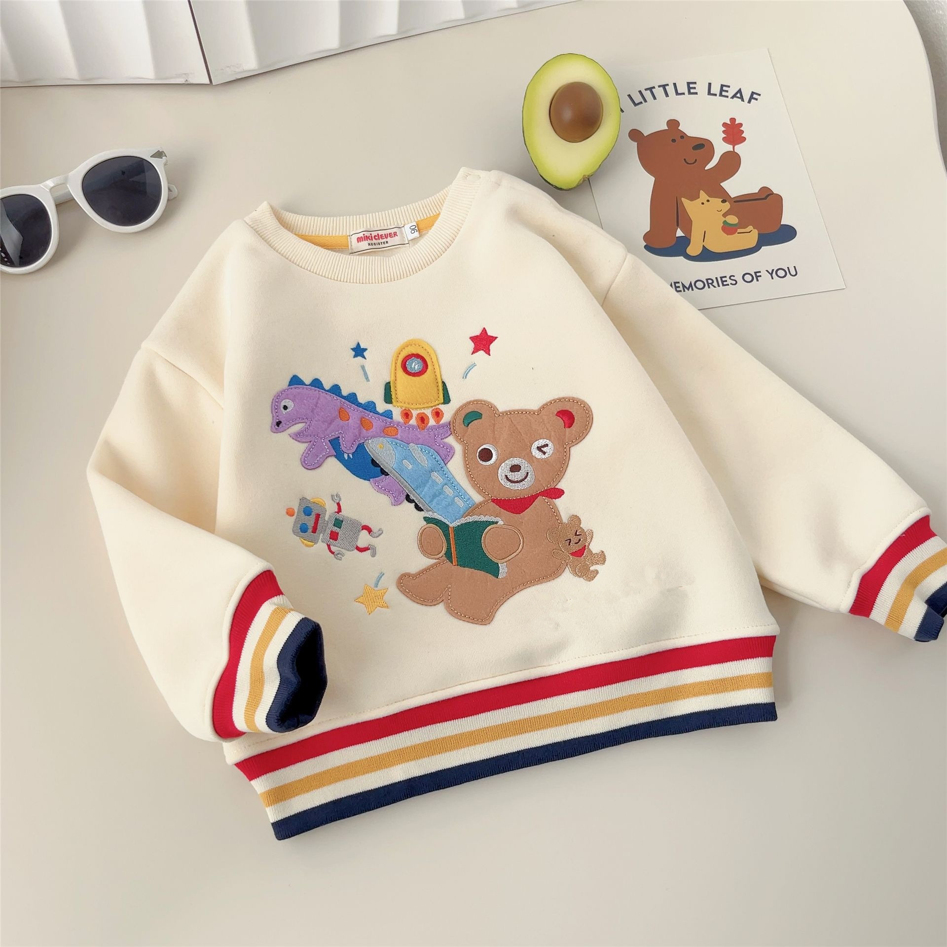 일본 아동복 24 가을 겨울 신상 남녀 아동용 긴팔 공룡 곰 루즈핏 캐주얼 플리스 스웨트셔츠 트렌디 6006스토어 가기