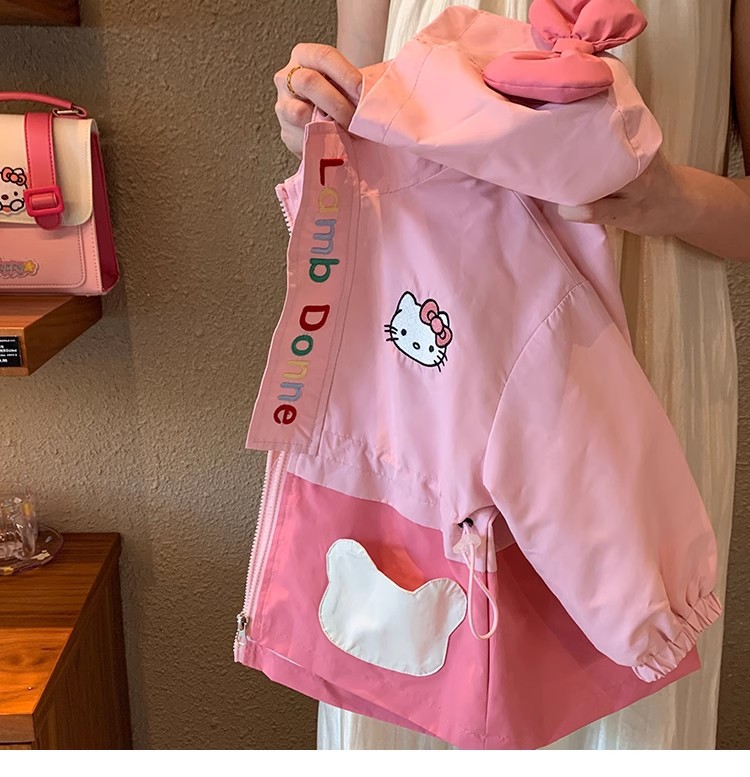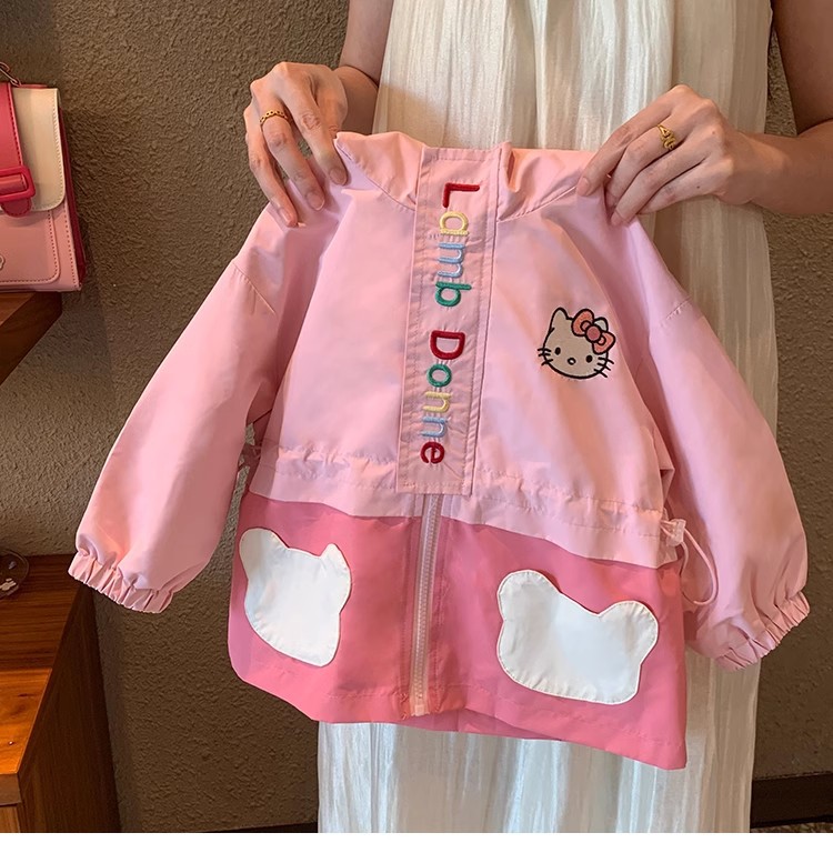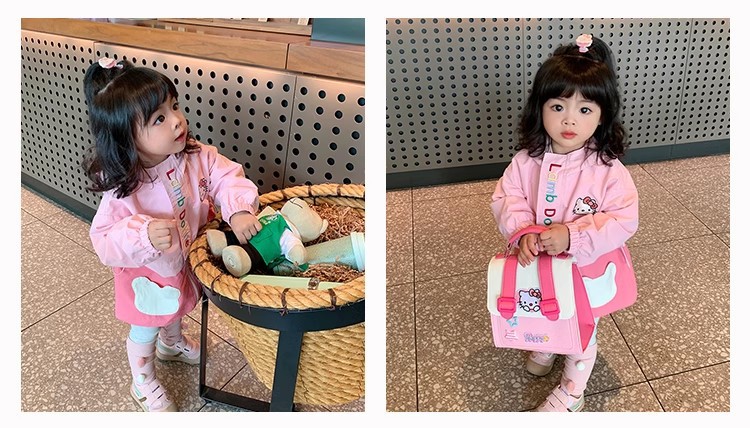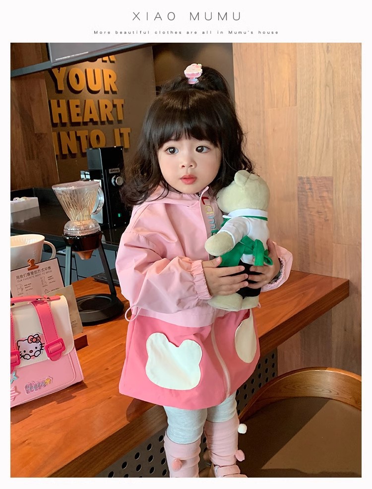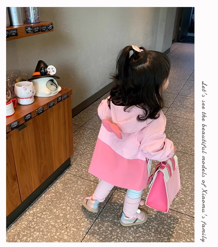 2024 년 소녀의 귀여운 고양이 명암 컬러 충전 옷 가을 새로운 어린이 서양식 한국 후드 아기 소녀 코트