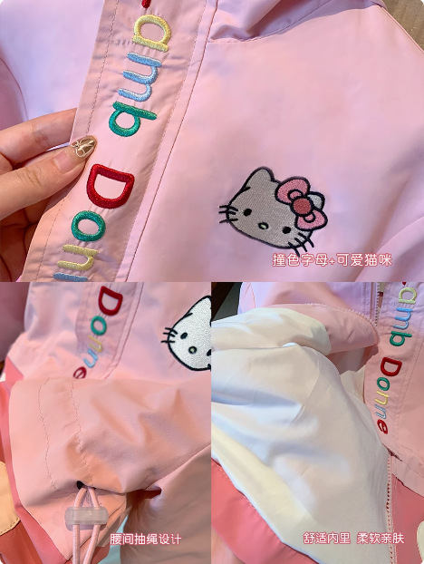 2024 년 소녀의 귀여운 고양이 명암 컬러 충전 옷 가을 새로운 어린이 서양식 한국 후드 아기 소녀 코트스토어 가기