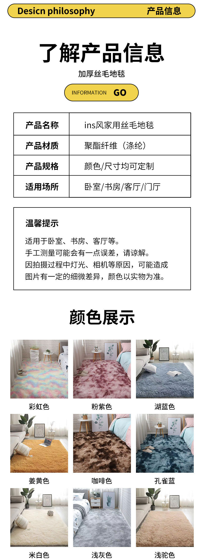 카펫 거실 먼지 저항하기 쉬운 도매 타이 다이 실크 울 카펫 홈 점진적 컬러 카펫 풀 샵 톈진 카펫스토어 가기