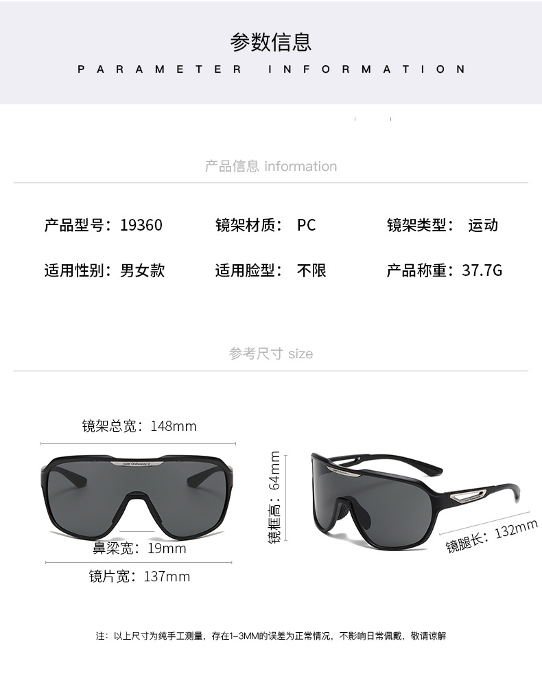 새로운 유럽과 미국의 패션 야외 스포츠 선글라스 남성 원바디 대형 프레임 안티 자외선 선글라스 안경 여성
