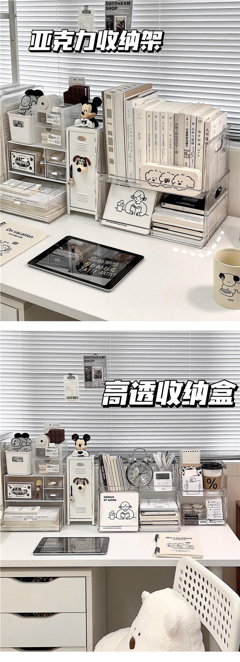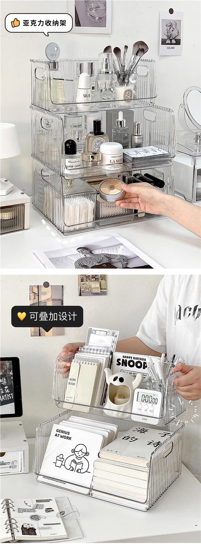 아크릴 데스크탑 저장 상자 투명한 책상 문구 배열 상자 기숙사 화장품 선반 사무실 책상 랙