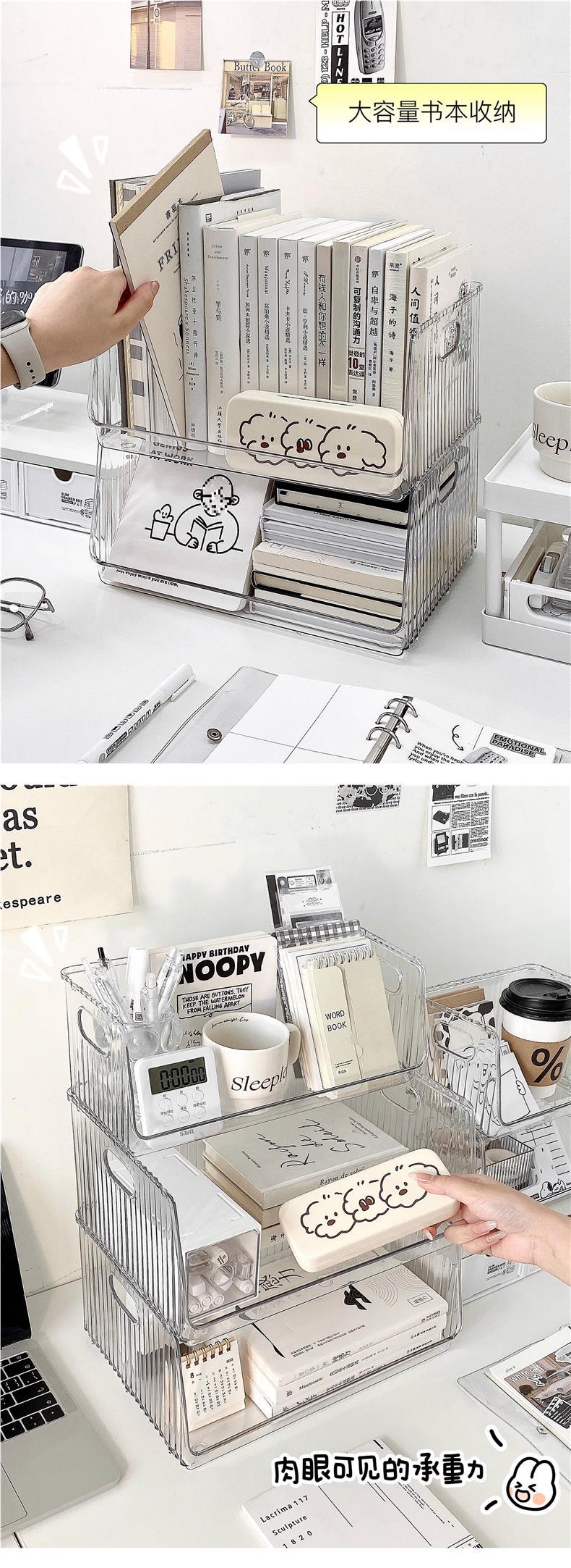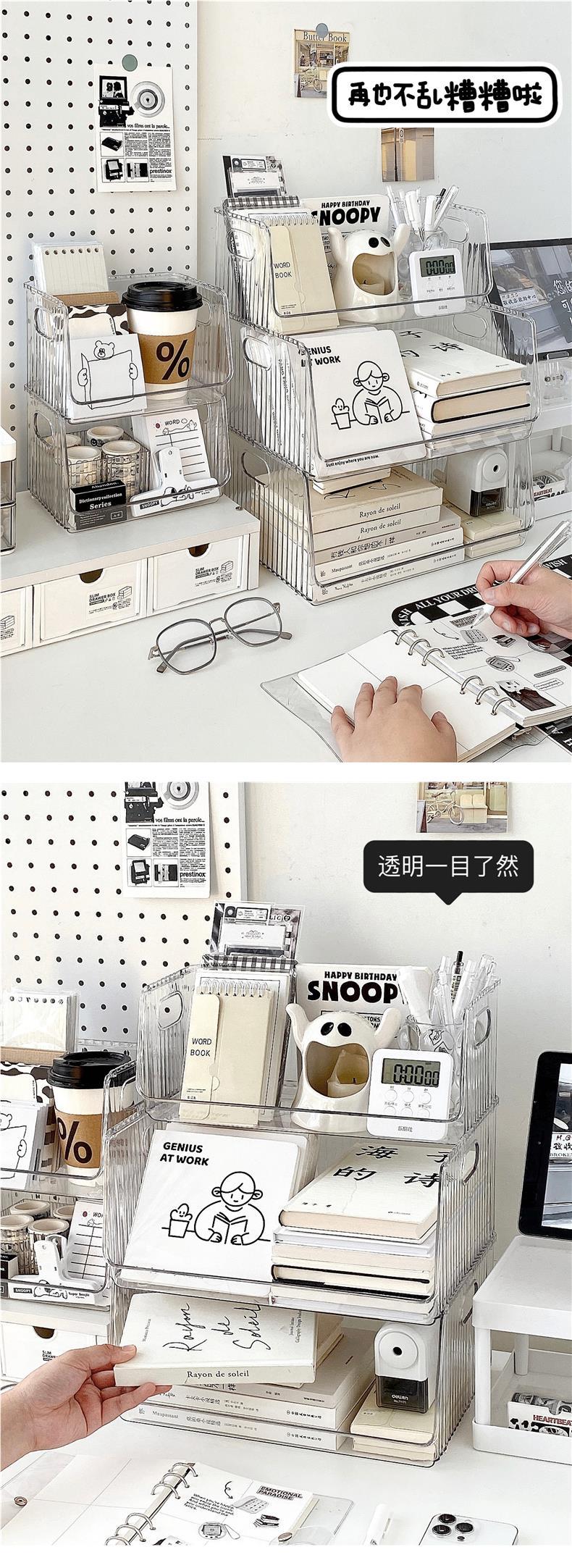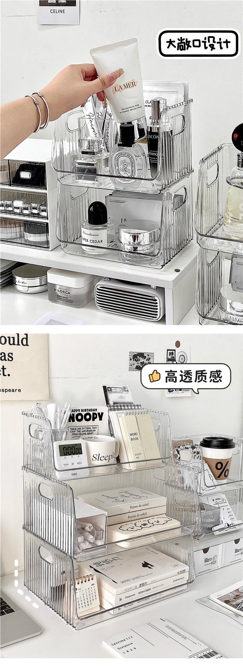 아크릴 데스크탑 저장 상자 투명한 책상 문구 배열 상자 기숙사 화장품 선반 사무실 책상 랙스토어 가기
