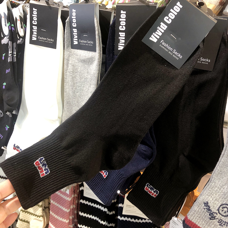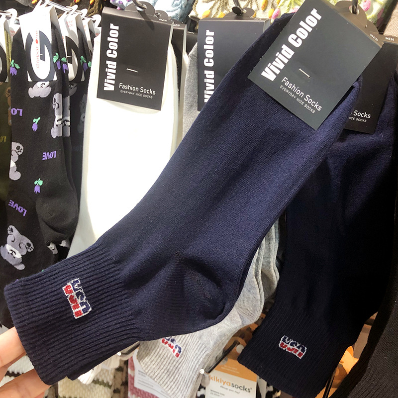한국 수입 남성 양말 VIVID 라이트 럭셔리 영국 스타일 트렌디 남성 미드 튜브 양말 Ins Letter USA 미드 튜브 코튼 양말스토어 가기
